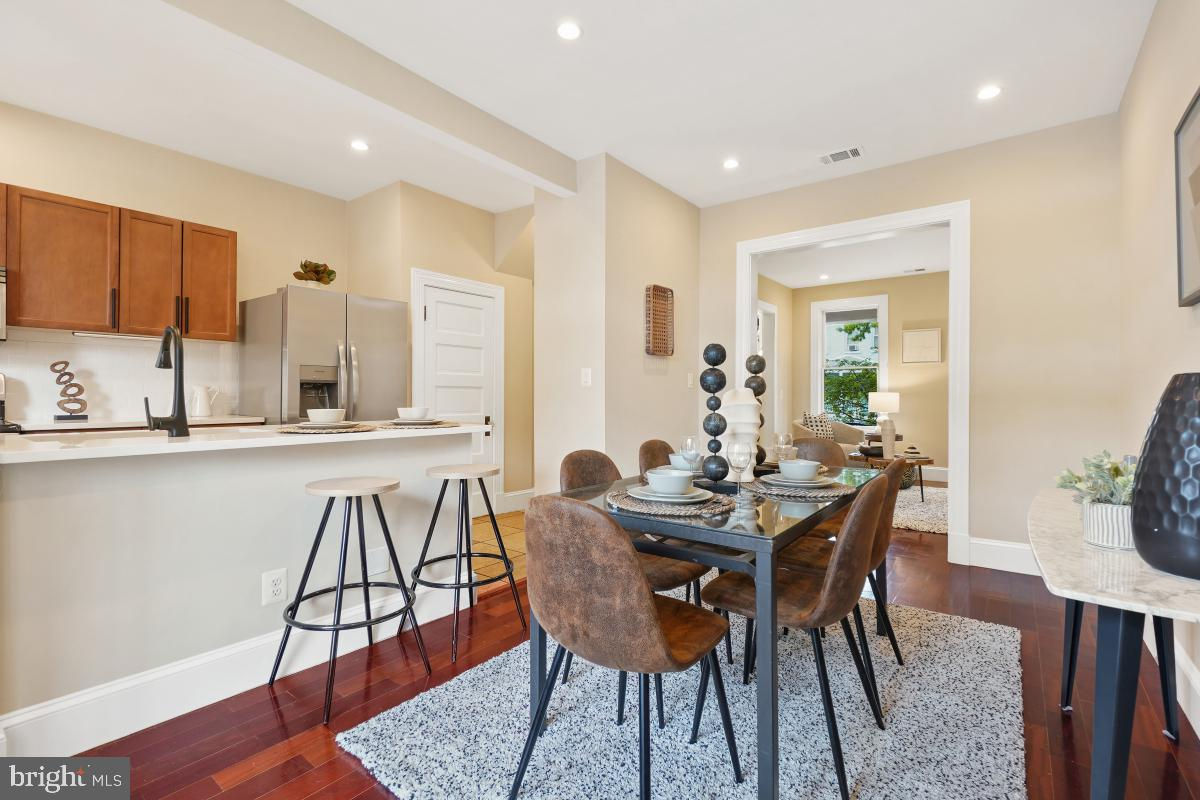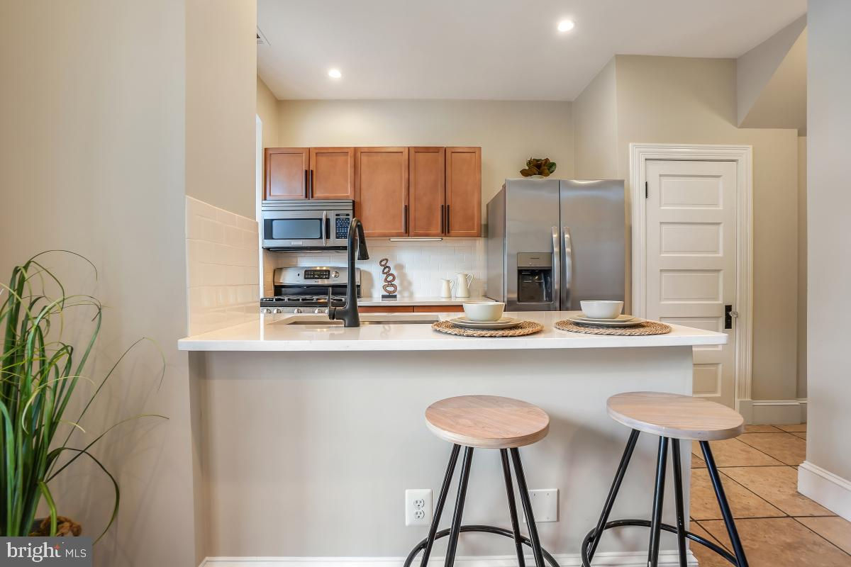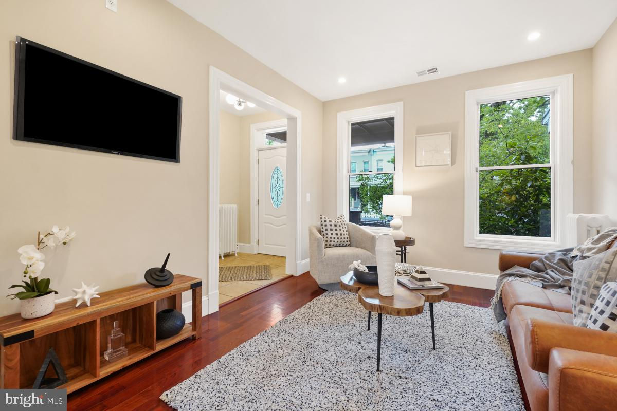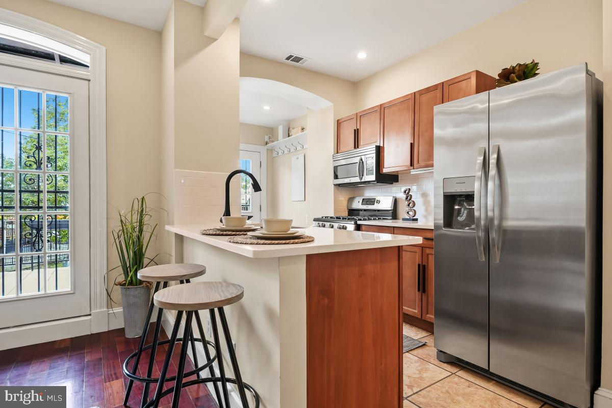 Inspired renovation in this 1915 porch-front in Park View. Urban and tasteful -- thoughtful design. Cook's kitchen with new large white quartz breakfast bar, white subway tile, stainless appliances, sweeps of counter space, open and fresh. Dining room with French doors overlooking large south-facing terrace - great for dining, sunning, reading and enjoying your flowers and herbs! Spacious living room - high ceilings, bright! Three bedrooms, two full baths up. WONDERFULLY INVITING lower level family room with good ceiling height, gas fireplace, and full bath. So many outdoor spaces - a delightful terrace, two balconies off two of the bedrooms, and a front porch! GARAGE. Short walk to top rated wine bar, St Vincent, Doubles coffee shop, and just down the block from Aurora Market, a corner market featuring a coffee bar and sandwich shop! LOADS OF UPDATES: New A/C - 2022 New refrigerator - 2023 Dishwasher - 2021 Basement vinyl planking floors - 2019 Relined furnace and water heater chimney flue - 2019 Roof - 2014 Upstairs windows - 2012 Thermostat upgrade - 2021 Garbage disposal - 2020