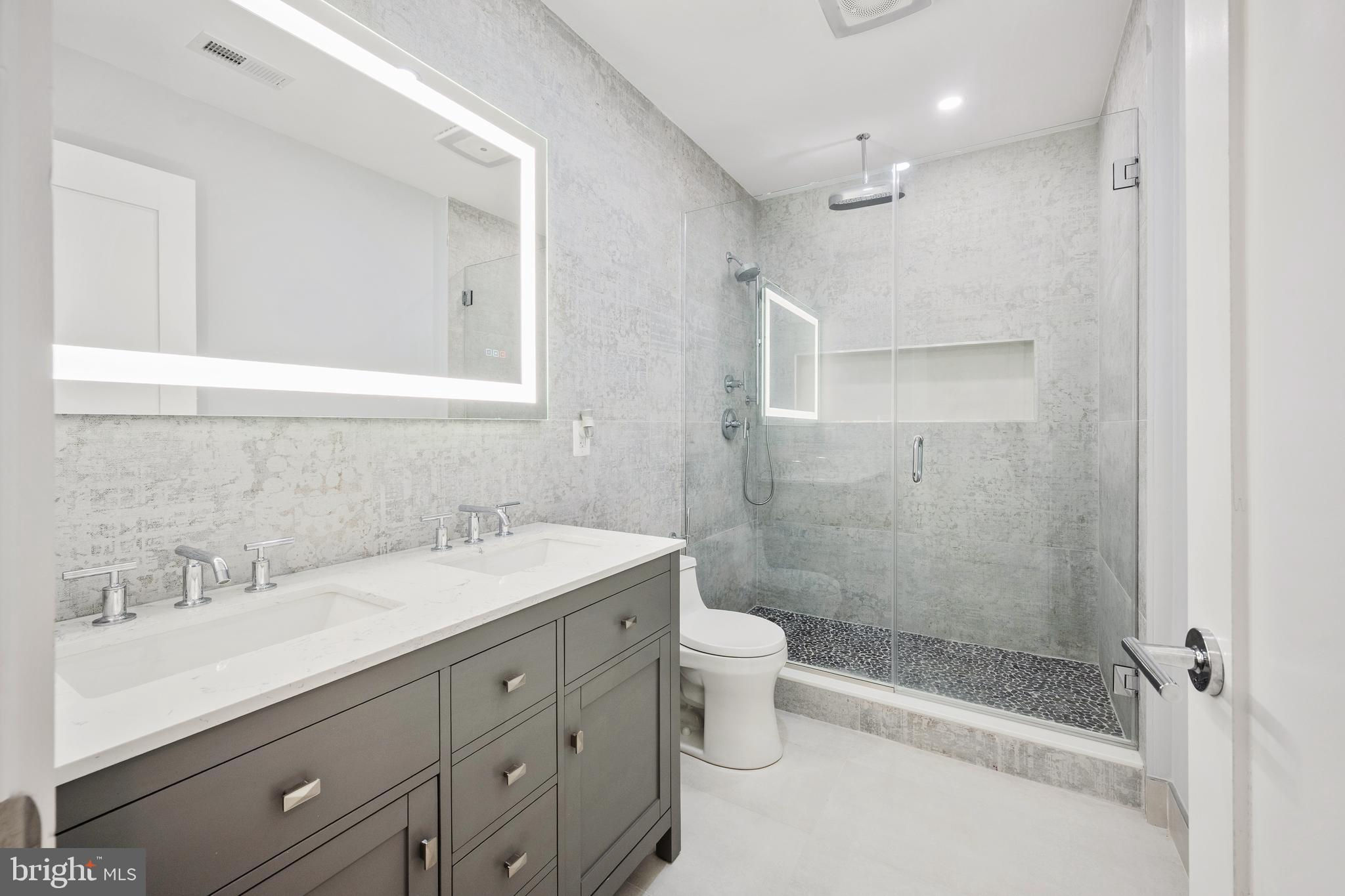 Experience the perfect blend of style and functionality in this newly built 3-bedroom, 2.5-bathroom condominium offering over 1,700 sq. ft. of thoughtfully designed living space in the heart of Petworth. As you enter the home, the sun-filled open-concept layout is ideal for entertaining, with ceramic floors, oversized windows, and a sleek gourmet kitchen featuring quartz countertops, custom cabinetry, and premium stainless steel appliances. A generous living and dining area flows seamlessly, with a powder room for guests. The lower level features all three bedrooms, including a spacious primary suite with a walk-in closet and spa-inspired en suite bathroom. Two additional bedrooms, a full bath, and laundry complete this level, creating a private retreat away from the main living spaces. Enjoy the convenience of a deck in the front of the home, dedicated off-street parking with an EV charging station in the back of the home. Steps from neighborhood dining, shopping, parks, and Metro, this home offers modern urban living in a welcoming community.