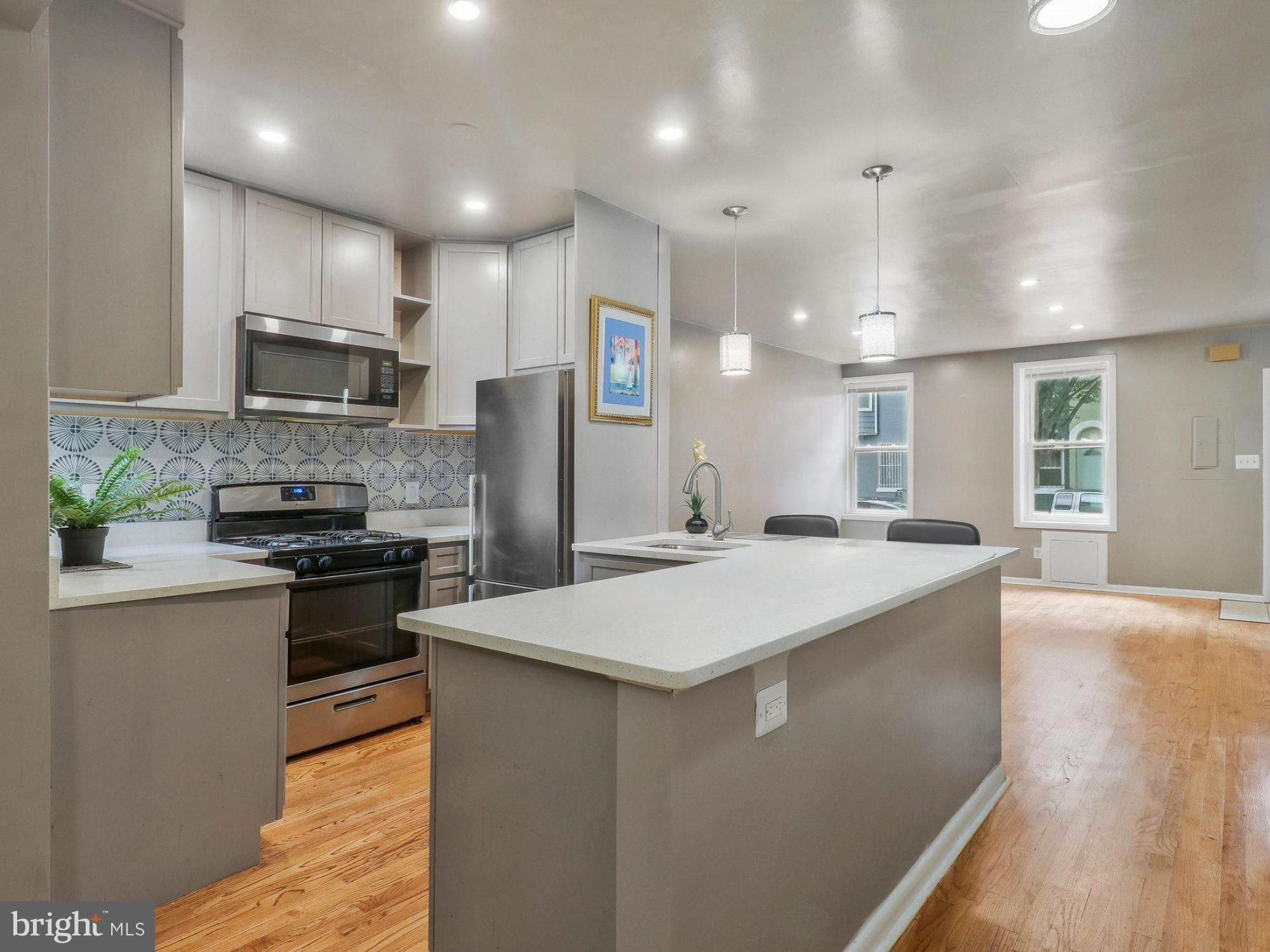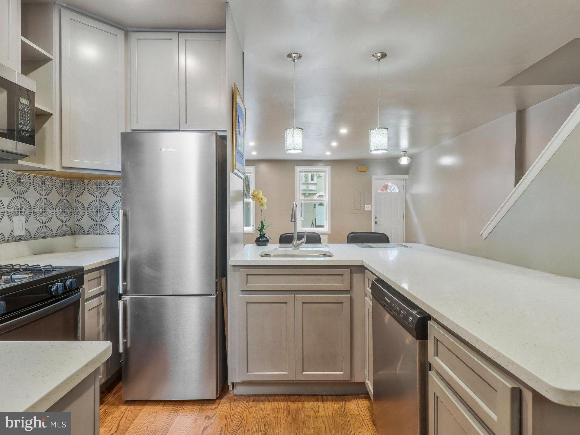 Nestled in the heart of the vibrant Shaw neighborhood, this charming rowhouse offers a blend of historic charm and modern convenience. With 3 spacious bedrooms and 1.5 bathrooms, this home is perfect for comfortable city living. The stylish updated kitchen features sleek stainless steel and black appliances, ideal for modern culinary enthusiasts. The main level boasts stunning hardwood floors, adding warmth and elegance to the space, while the upstairs bedroom level has been refreshed with new carpet for a cozy atmosphere. Large windows throughout the home allow natural light to flood in, creating a bright and inviting ambiance. The open-concept living area is perfect for entertaining, and you'll enjoy cozy evenings by the wood-burning fireplace, especially on those chilly DC nights. The convenience of a private parking pad in the back provides peace of mind and easy access. Shaw is known for its rich history, vibrant cultural scene, and close proximity to downtown DC. Enjoy a variety of dining, shopping, and entertainment options just steps from your front door. With excellent public transportation and walkability, everything you need is within reach. Don't miss out on this fabulous home in one of DC's most sought-after neighborhoods!