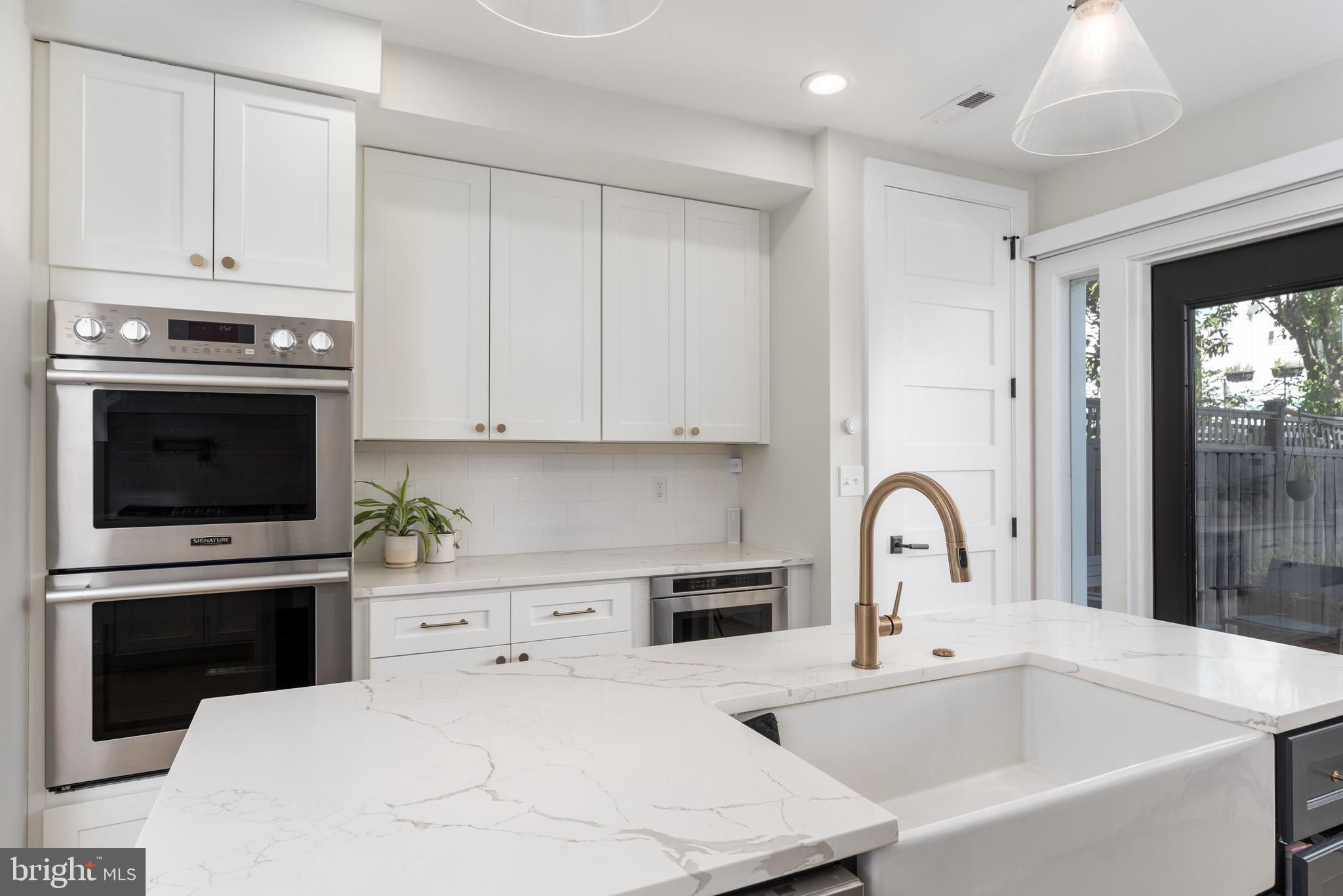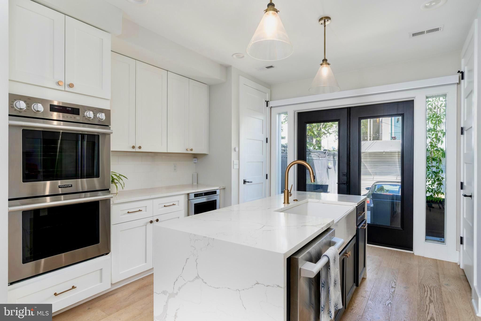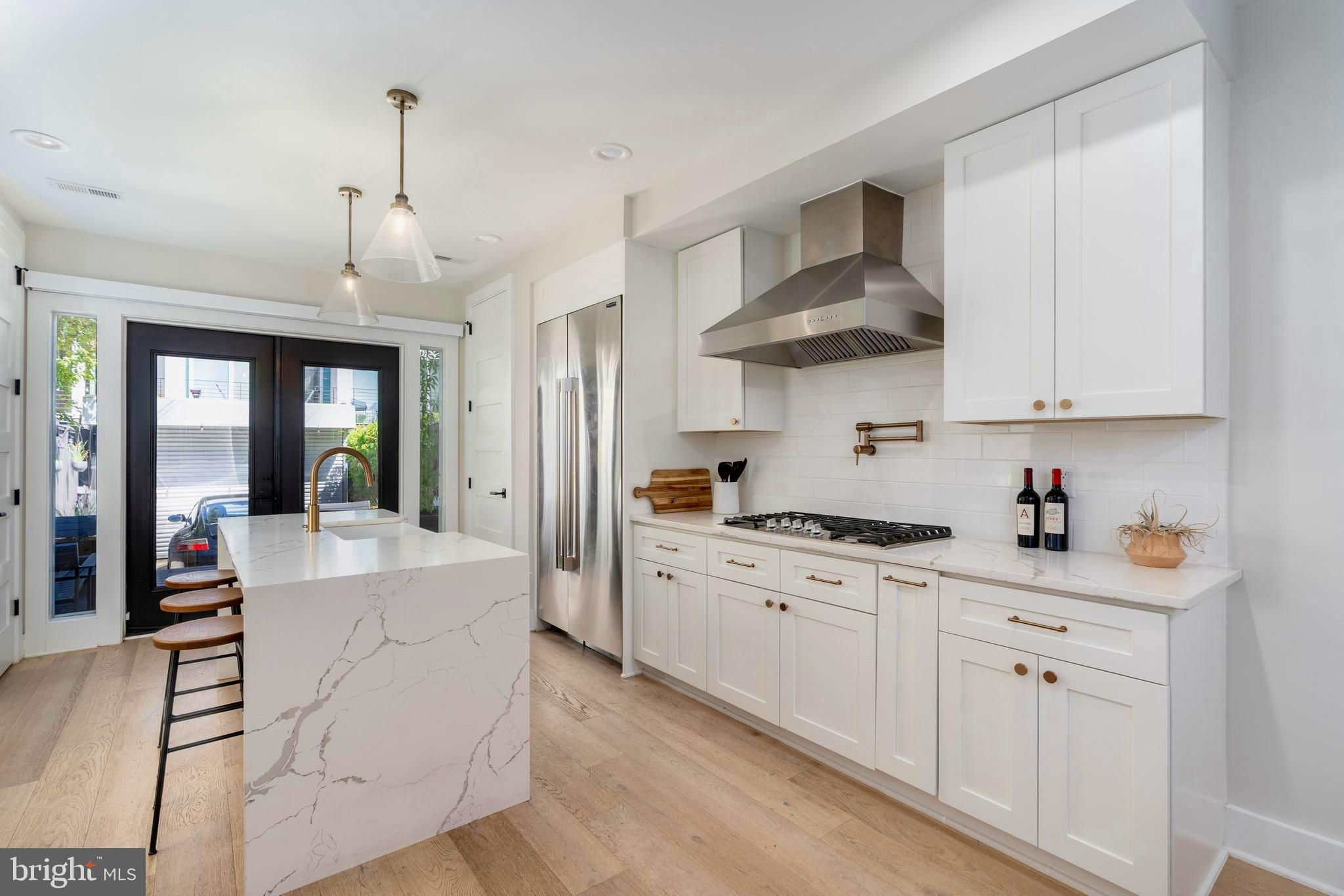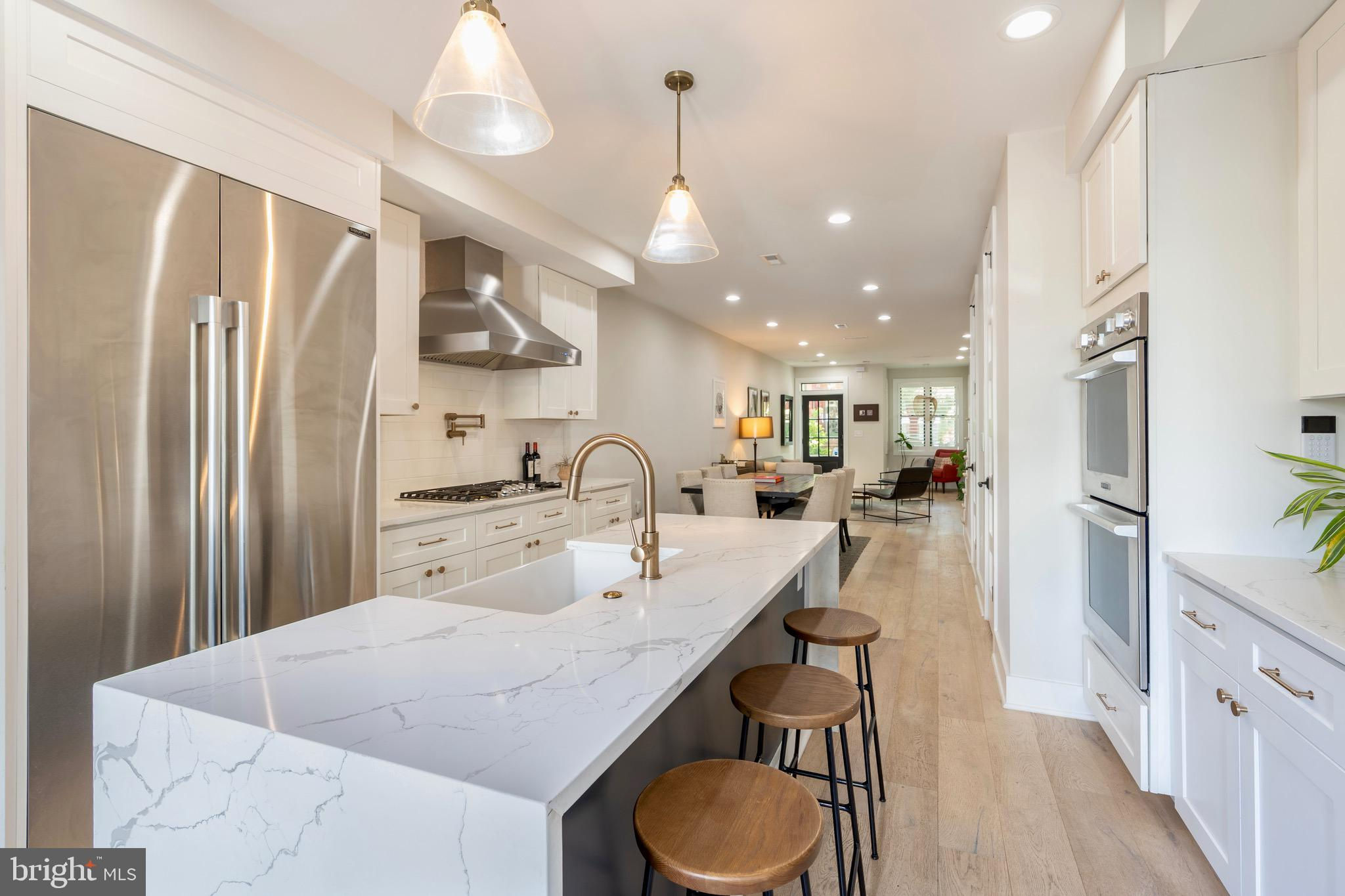 Modern Luxury on Capitol Hill – Now $136K Below Original Price. Tucked just one block from Safeway, Starbucks, and steps to Metro, this fully reimagined 1920s Federal-style home blends classic Capitol Hill charm with stunning 21st-century upgrades. Rebuilt and expanded by Summit Homes in 2022—with thoughtful, high-end enhancements from the current owner—this 4-bedroom + den, 4.5-bath residence delivers nearly 2,240 sq. ft. of refined living across three beautifully finished levels. Step inside to an airy, open-concept layout where rich hardwoods lead you through elegant living and dining areas into a true chef’s kitchen—featuring a center island, quartz countertops, custom cabinetry, 5-burner gas cooktop, dual wall ovens, and double pantries for effortless entertaining and everyday ease. Upstairs are four spacious bedrooms, three of which enjoy their own luxe en-suite bath. The serene primary suite boasts a custom walk-in closet by Capitol Closet Design, a spa-inspired bath with dual sinks and a glass-enclosed rain shower, plus a private terrace perfect for morning coffee or evening unwinding. Additional highlights include a rooftop terrace with automated door, main-level patio for entertaining, and secure, gated parking for 1–2 vehicles. With an unbeatable Capitol Hill location near Eastern Market, Pennsylvania Ave. dining & shopping, and top-rated schools, this is city living at its finest—fully move-in ready and priced to sell.