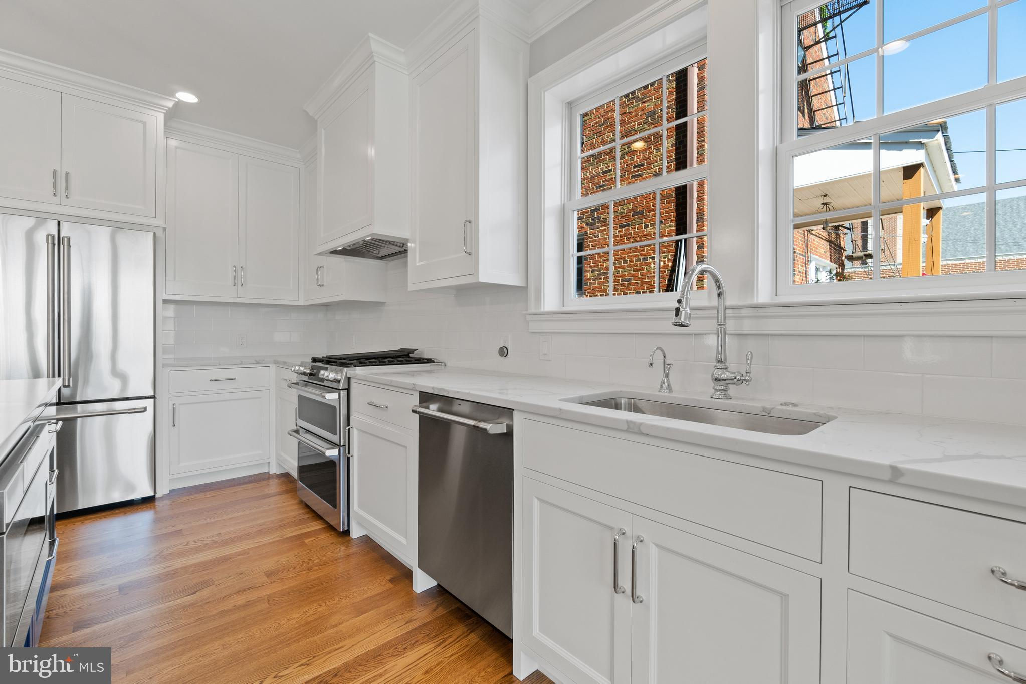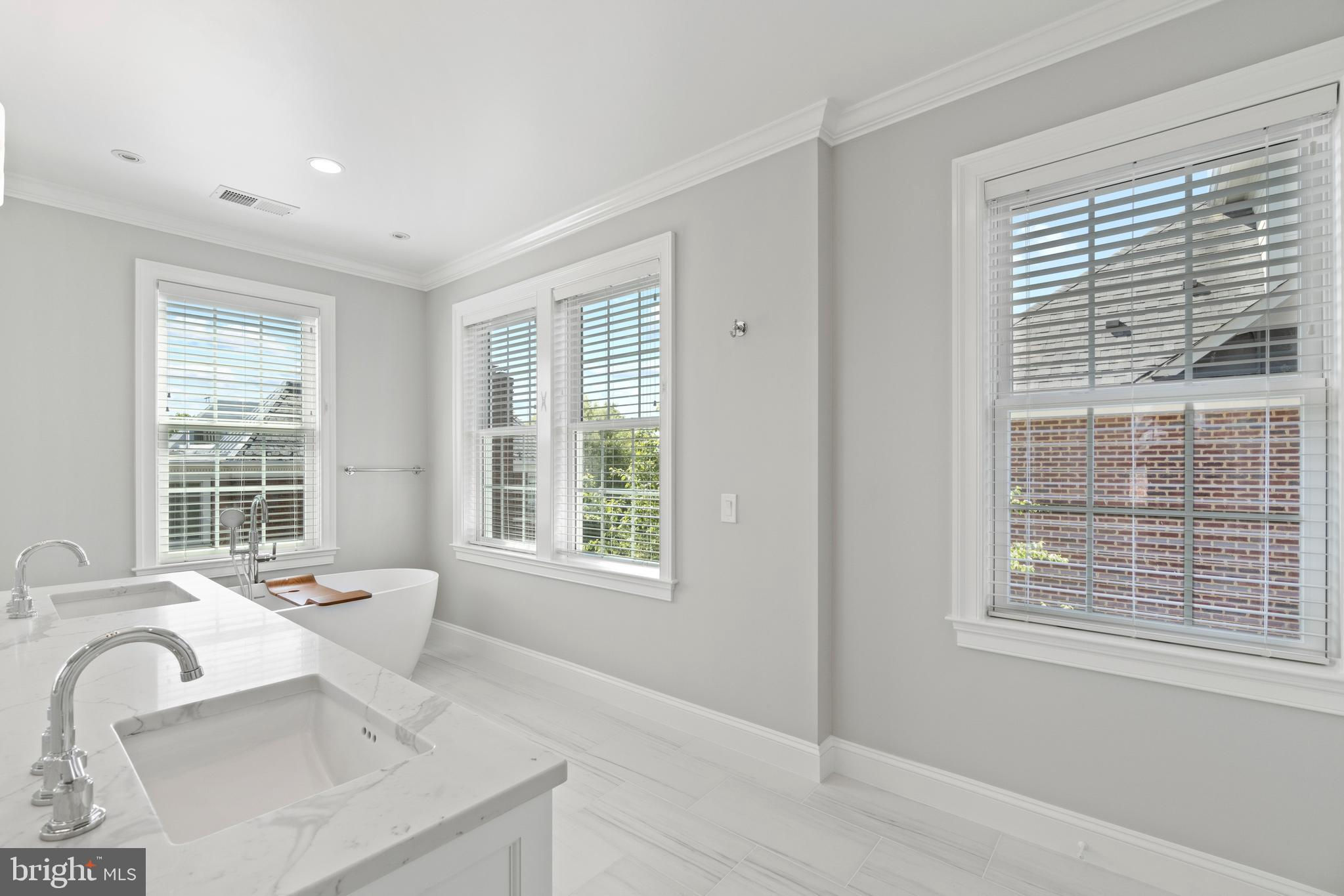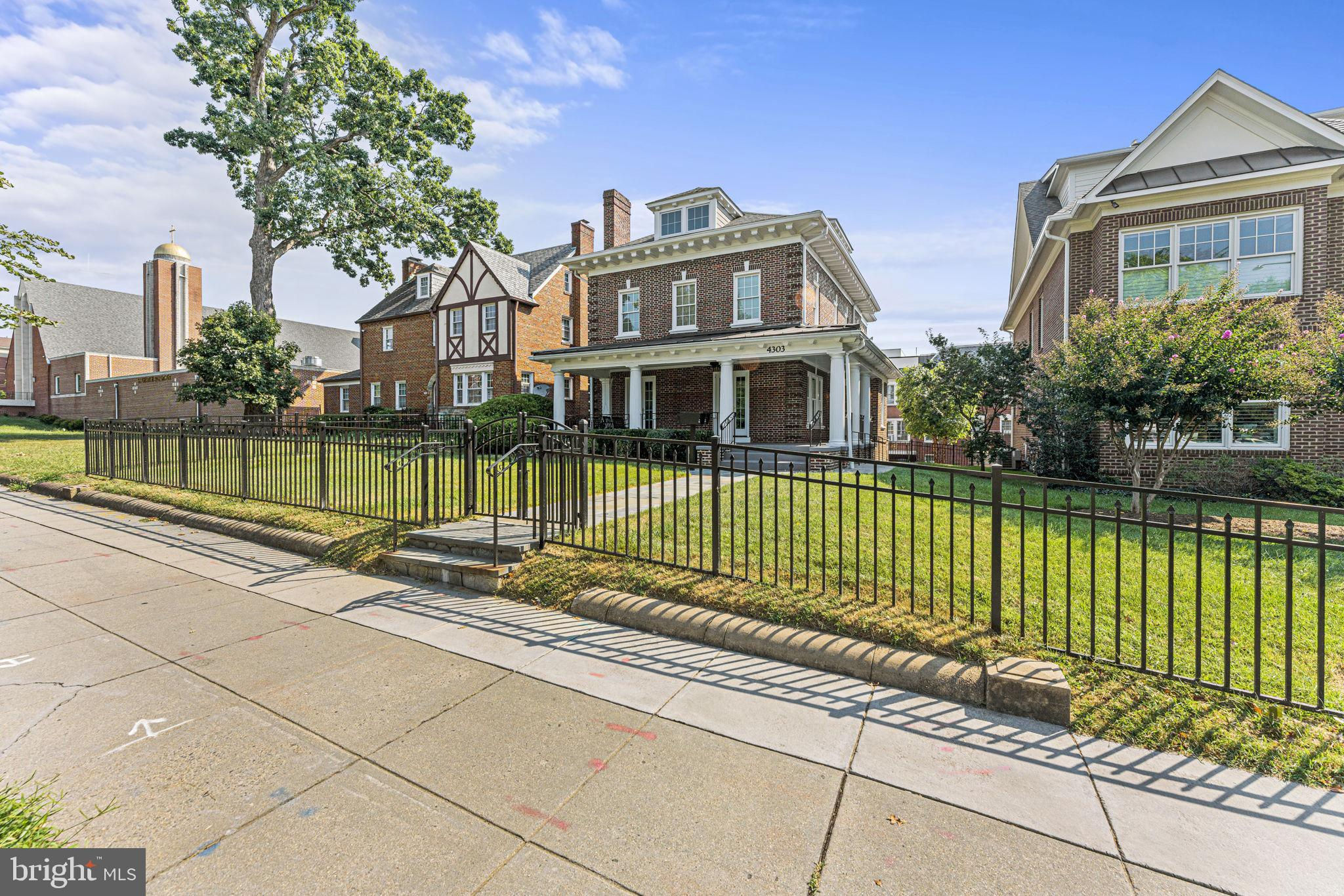 This palatial, detached brick colonial has been restored to its original beauty. The home was fully renovated in 2021 with designs by GTM Architects, permitted and surveyed by CAS engineering, built by Gibson Homes, and fence by Long Fence. Located in prestigious 16th St Heights neighborhood, on the doorstep of everything the Nations Capital has to offer. The first floor boasts an opulent grandeur that exceeds your wildest expectations, featuring gleaming hardwood floors, lofty ceilings, and meticulously crafted custom moldings throughout. The foyer extends a warm and impressive welcome, while the living room promises an entertainment enthusiast's delight. The kitchen is exceptionally spacious, offering an oversized island, custom cabinets, and elegant quartz countertops. The dining room effortlessly seats a party of twelve, enhancing the entertainment opportunities. The first floor also a one-of-a-kind powder room, convenient mudroom, and a back door entrance accessible from the parking area. For those seeking even more space, a cozy den adjacent to the kitchen awaits, adding to the versatility of this level. All three bedrooms on the second-floor boast en-suite bathrooms with gorgeous tile and tasteful lighting fixtures. The primary bathroom is a true gem, featuring a stunning shower, luxurious soaking tub, and double sinks, all beautifully finished with white and gray marble-look tiles. The primary closet is thoughtfully designed with custom drawers and shelves to maximize organization. Moving up to the third floor, you'll discover two additional bedrooms that share a well-appointed hall bathroom. To make maintenance a breeze, the house is equipped with a central vacuum system, and there's a full second-floor laundry room adorned with lovely tile and a window, adding to the home's overall convenience and charm. The lower level of this residence offers a versatile layout, comprising two sunlit and generously-sized bedrooms, two full bathrooms, laundry room with full sized washer/dryer and a fully-equipped kitchen. Additionally, a comfortable living room and a separate entrance provide flexible living options. Parking is a breeze, with four available spaces located behind the house. The front yard, enclosed by an attractive fence, is thoughtfully landscaped, enhancing the property's curb appeal and overall charm.