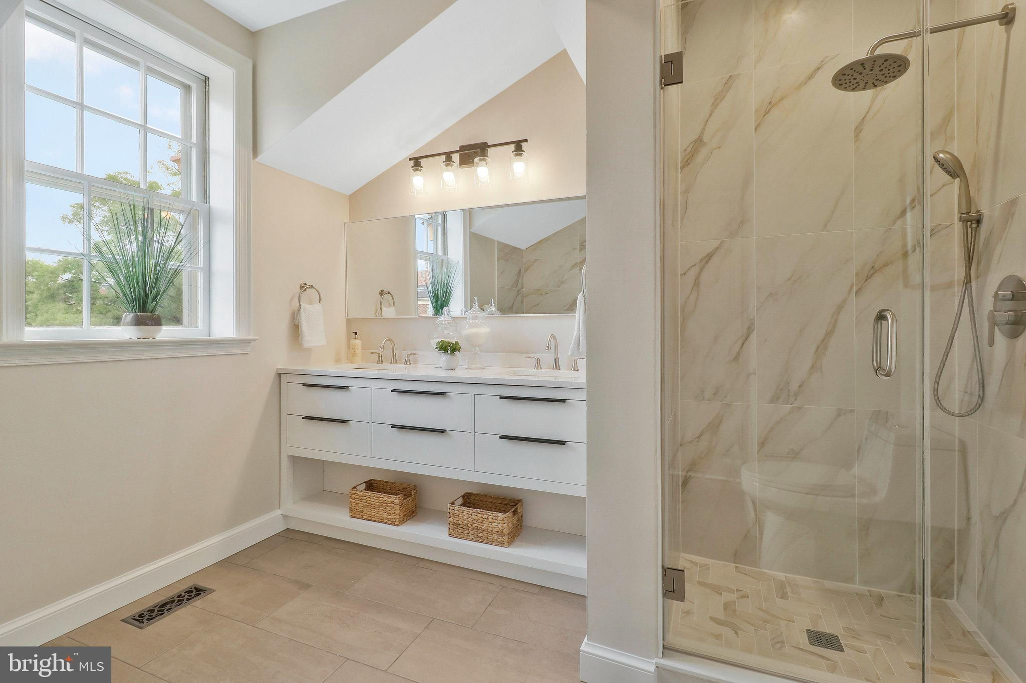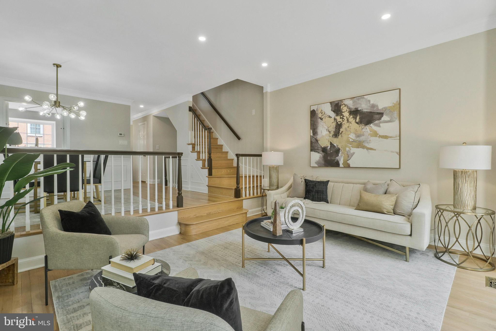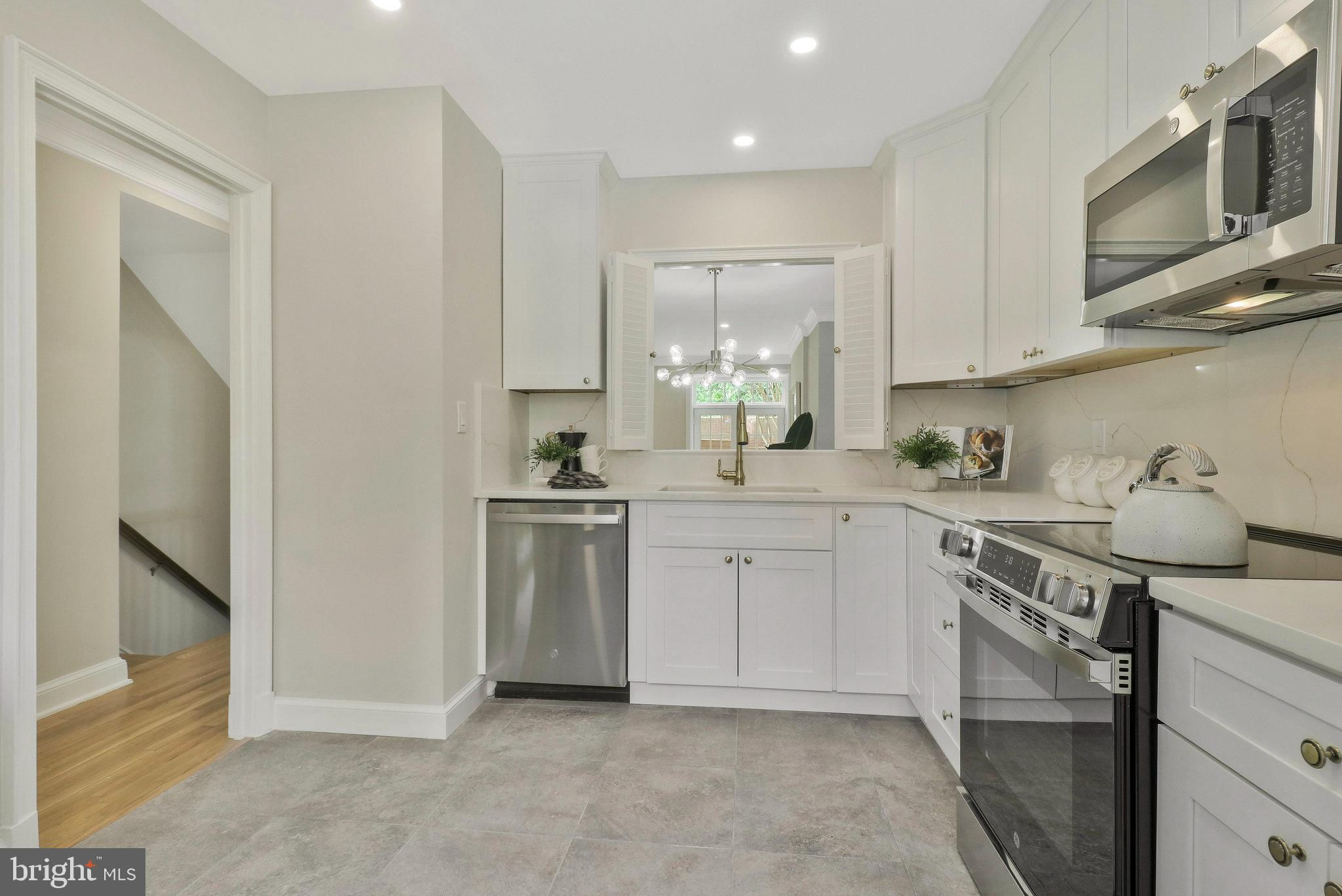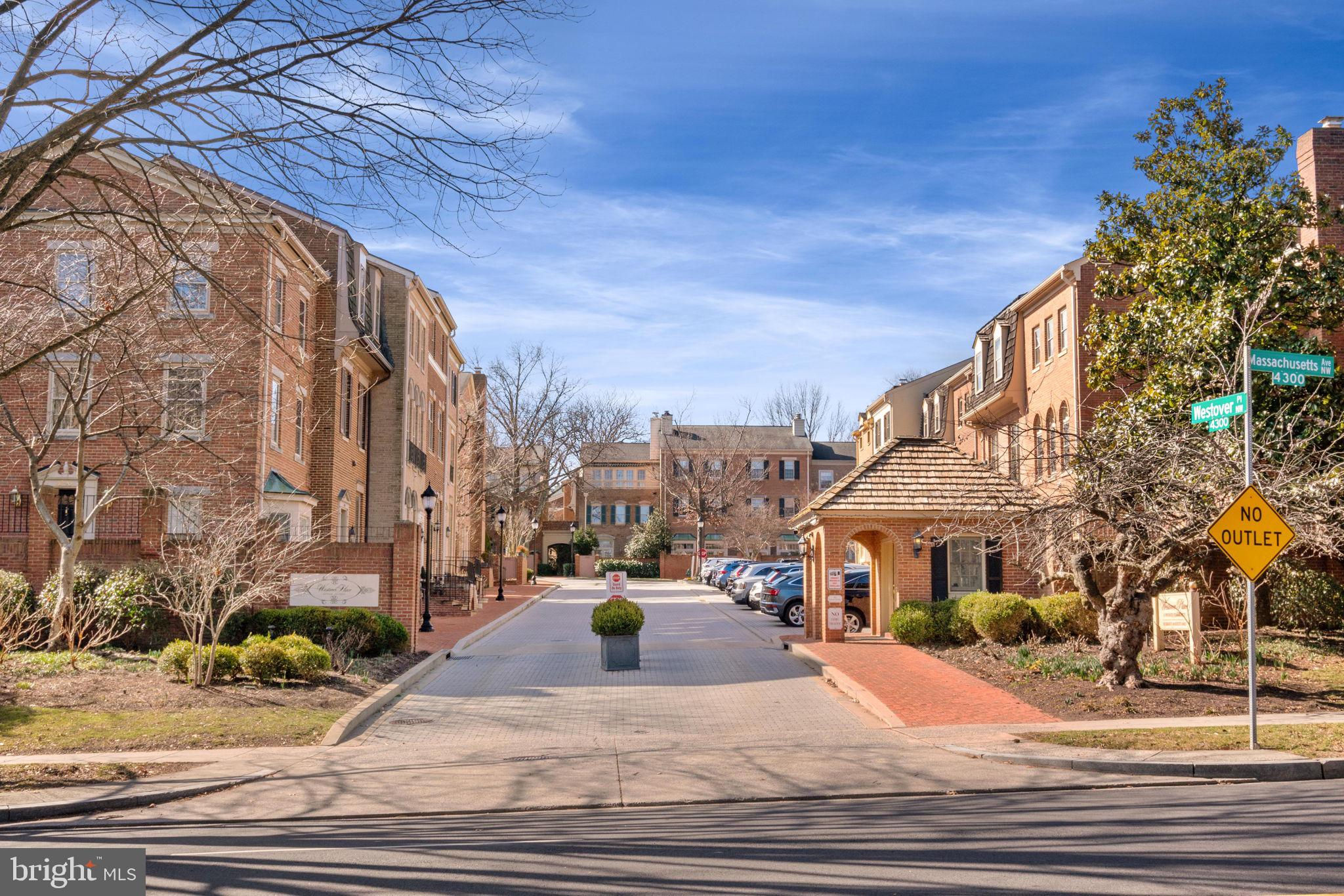 Move-in ready Elegant 4 level home in the Westover Place sought-after gated community. New kitchen features solid wood cabinets, upgraded quartz countertops, New appliances. Updated bathrooms throughout. Freshy painted, refinished hardwood floors, recess lights. modern chandeliers and lots of other updates that will please even a very peaky buyer. Separate dining room which flows into a large living room with wood-burning fireplace. Double French doors lead to private stone patio for outdoor entertainment. 2nd floor with 2 spacious bedrooms and large double vanity bathroom. Entire 3rd floor features a primary bedroom suite with soaking tub, separate shower, closets and serene balcony. Full Basement with recessed lights, additional recreation room/office/extra bedroom, full bath and storage room. Bonus surround sign ceiling speakers. Two blocks to American university and easy access to the west side to New Mexico Avenue restaurants and shopping. Simply must see to fully appreciate this home!
