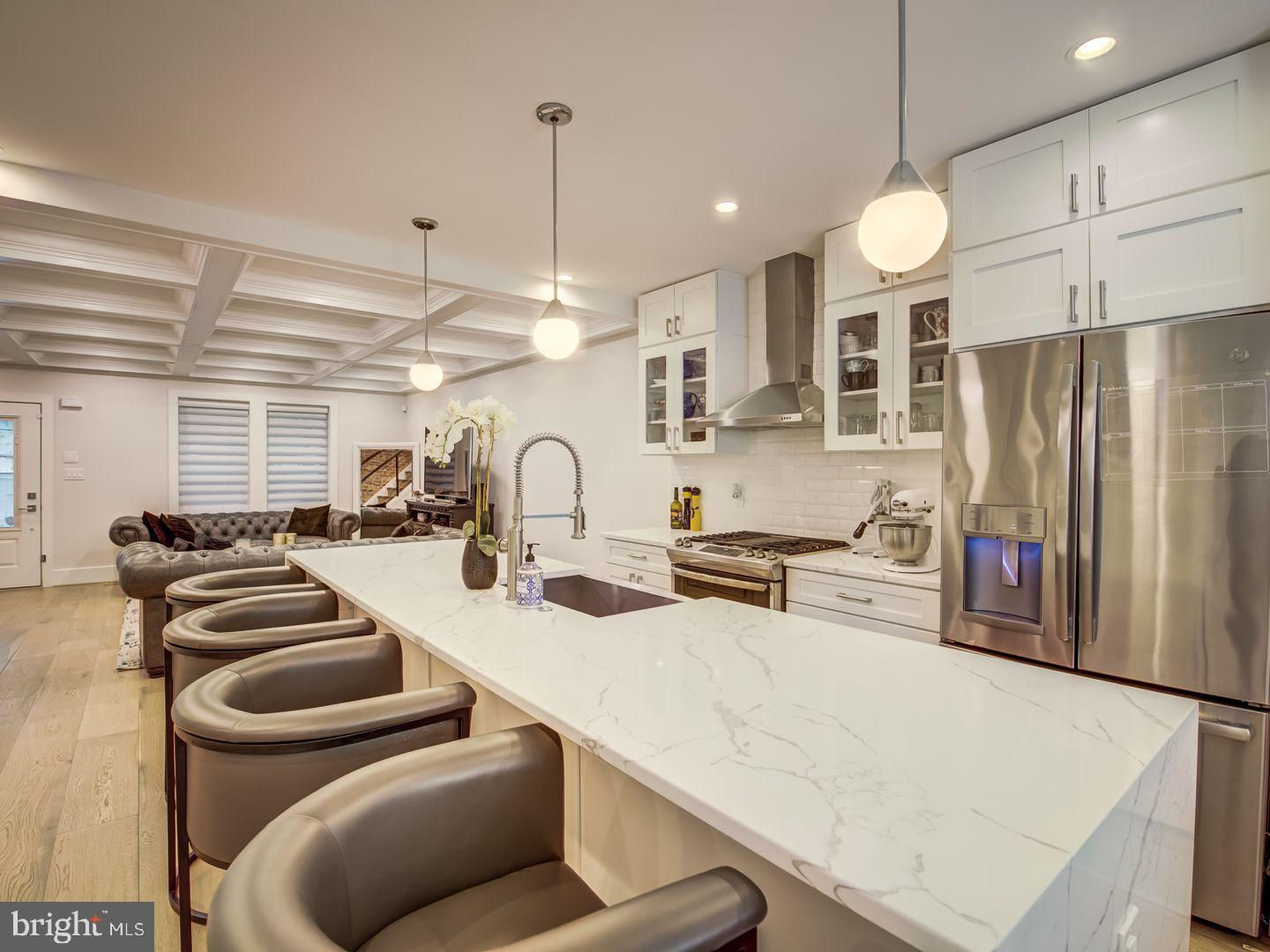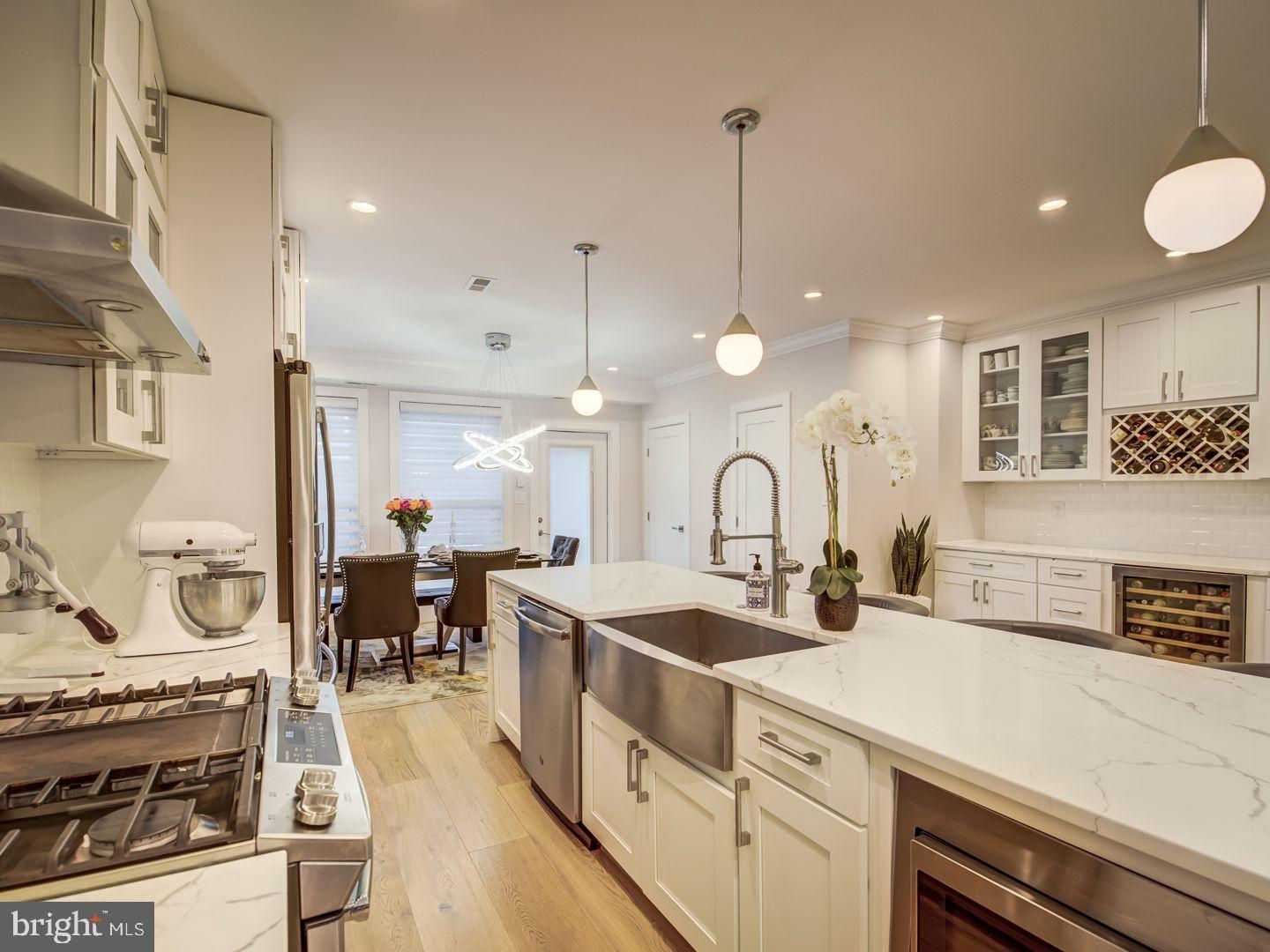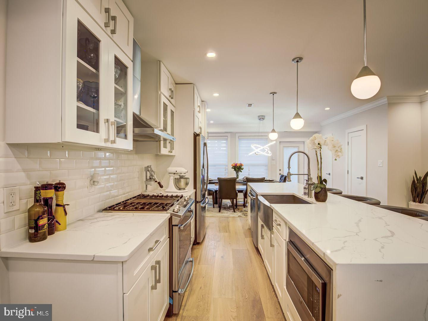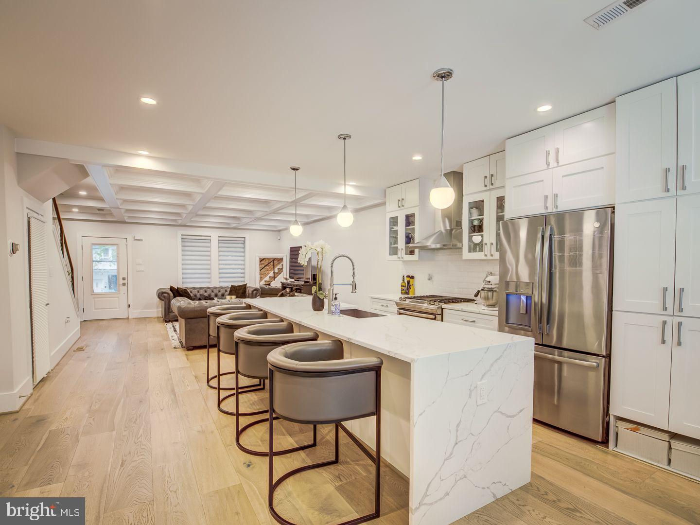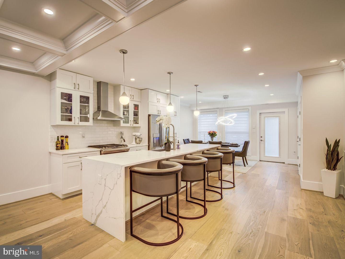 The pristine wide plank hardwood floors blend each space seamlessly while the large windows giving ample natural light. House has automatic smart blinds (Hunter Douglas) and smart thermostat. The main level has a large living & dining space with coffered ceilings, just off the updated gourmet kitchen which makes for a great space to enjoy an amazing meal as well as entertain friends & family. With gorgeous marble counters and high-end stainless-steel appliances, this kitchen has it all! The kitchen leads to a very well-maintained patio space and a secure two-car parking pad. Inside the basement, you'll find a second living space as well as a separate bedroom & full bathroom, has kitchenette with refrigerator, stove, wine cooler, and its own separate laundry; this basement is a great option for those who want to generate some extra income. The upper level has three bedrooms, ample closet space, private balcony, vaulted ceilings, and laundry closet. 2-car parking pad features own Tesla charger, fenced backyard, and deck. Conveniently located near inbound John Lewis Elementary school, transit on Georgia Ave and the Petworth metro, restaurants on Upshur, 14th, and Kennedy Streets, two farmer's markets, park access, and more! This home is a great opportunity to live in a luxurious DC home designed for the most discerning palate.