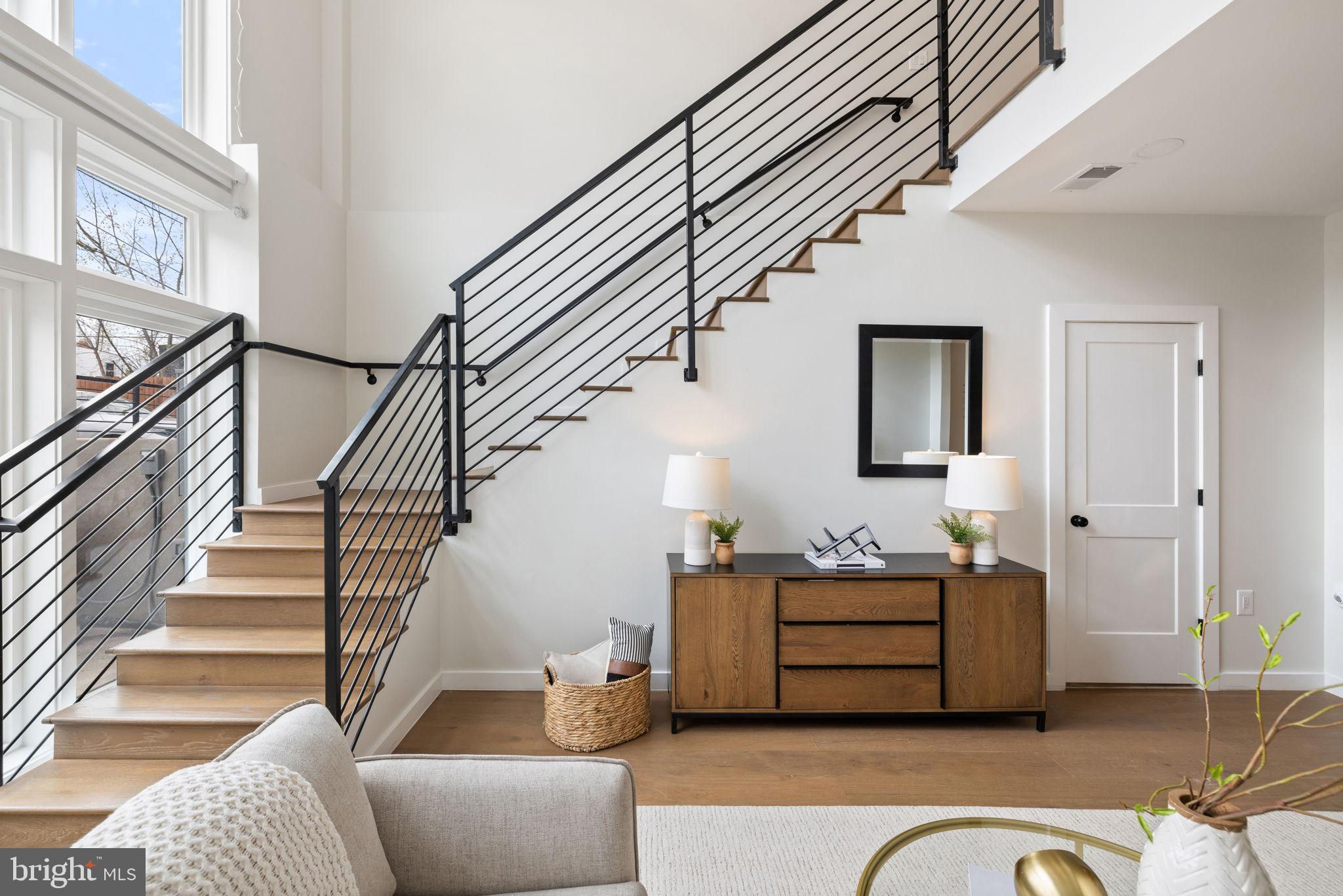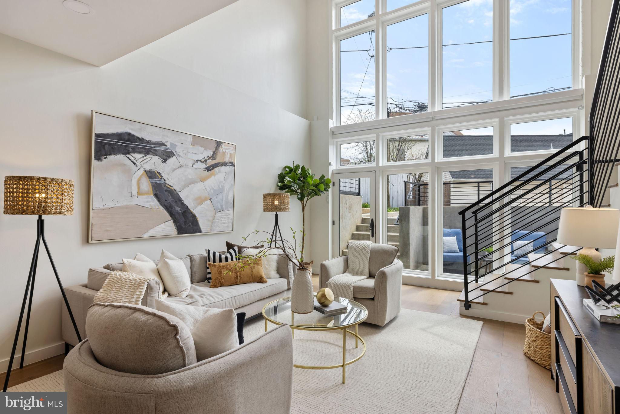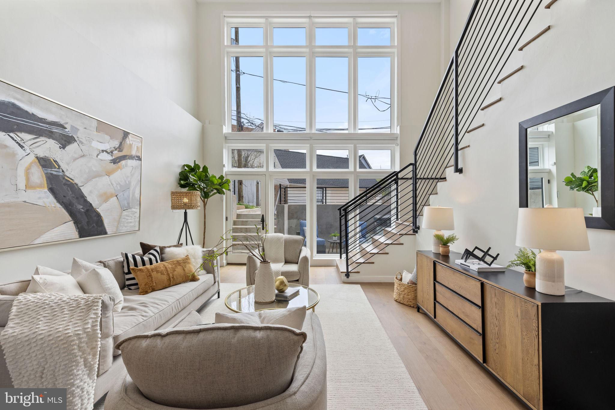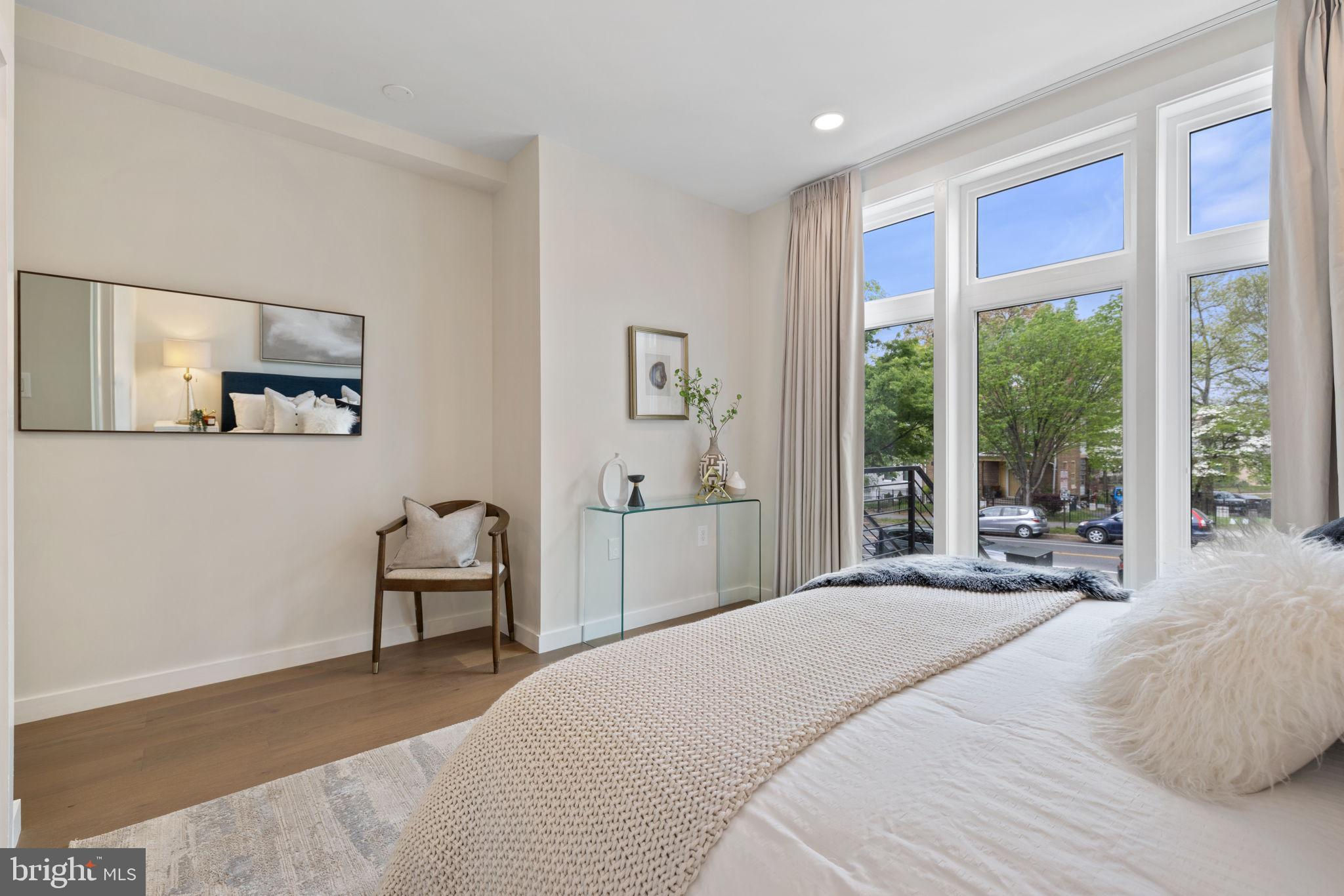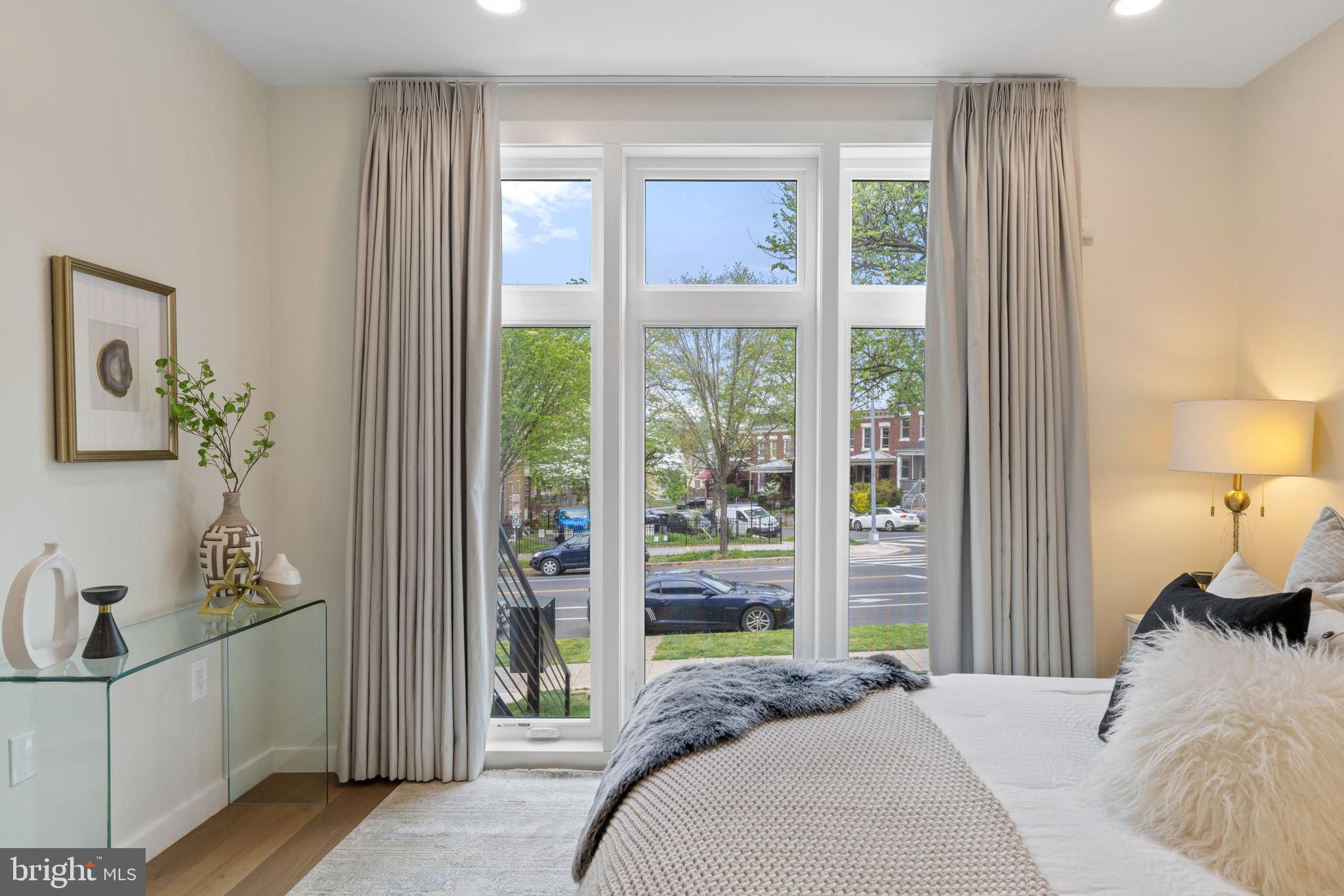 Best Value in the Neighborhood! Welcome to contemporary living in the vibrant Petworth! This stunning 3 bed/3.5 bath condo boasts over 1,800 square feet of space spread across two levels, offering a modern and spacious living experience. As you step into the dramatic double-height living room, you'll be greeted by floor-to-ceiling windows that flood the unit with natural light, creating a bright and inviting atmosphere. Custom motorized shades provide the flexibility to adjust for privacy, while the white oak floors seamlessly connect the living spaces. The open kitchen is a focal point, featuring stylish gray Shaker-style cabinets, quartz countertops, and a massive breakfast bar, perfect for entertaining guests or enjoying casual meals. Upstairs, the large primary suite is a luxurious retreat, offering ample space for a king-size bed and a massive walk-in closet. Custom black-out drapes ensure a peaceful night's sleep, while the en suite bath impresses with dual vanities, a large shower, and abundant storage. The guest bedroom doubles as a bright office, with an additional guest bath conveniently located on the same level. The third bedroom on the main level provides a private retreat for guests, complete with a built-in Murphy bed and an en suite bath. Located in a boutique building, this condo offers the best of both worlds – a peaceful residential setting near the heart of Petworth, with easy access to the vibrant dining scene on Upshur Street, Petworth Metro, Safeway, Yes! Organic, and more. Potential parking too - ask for more details.