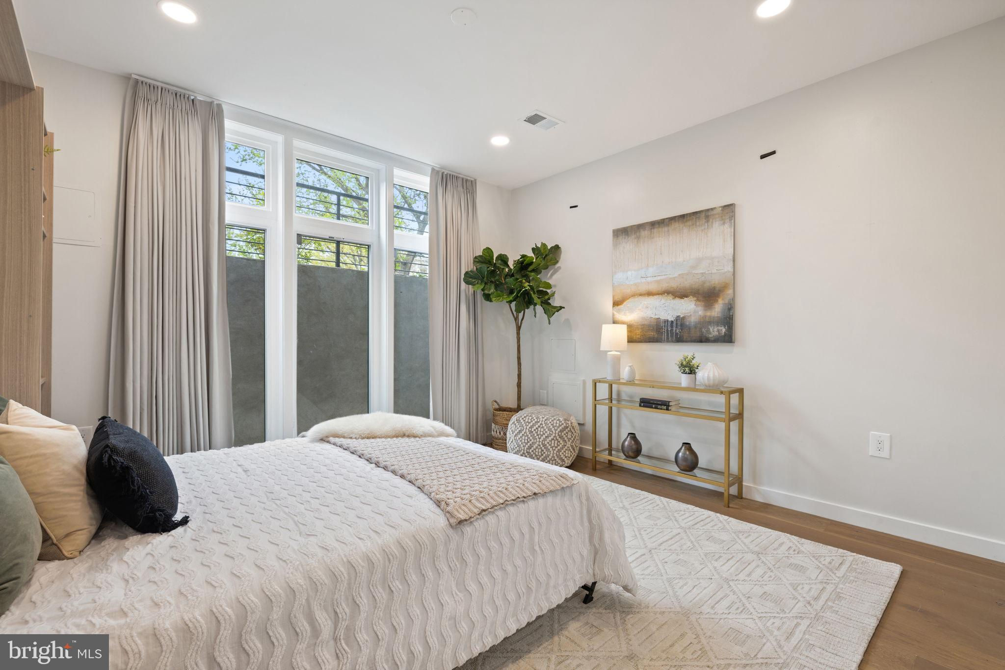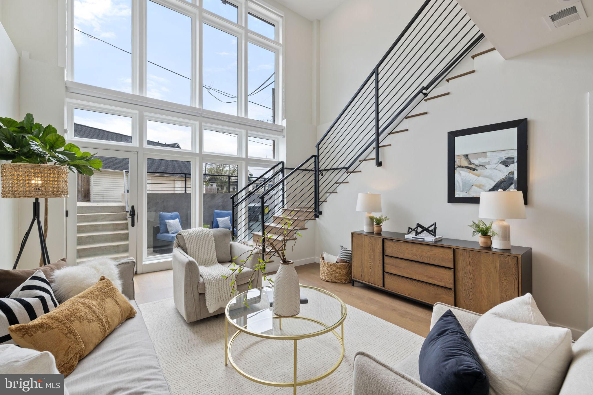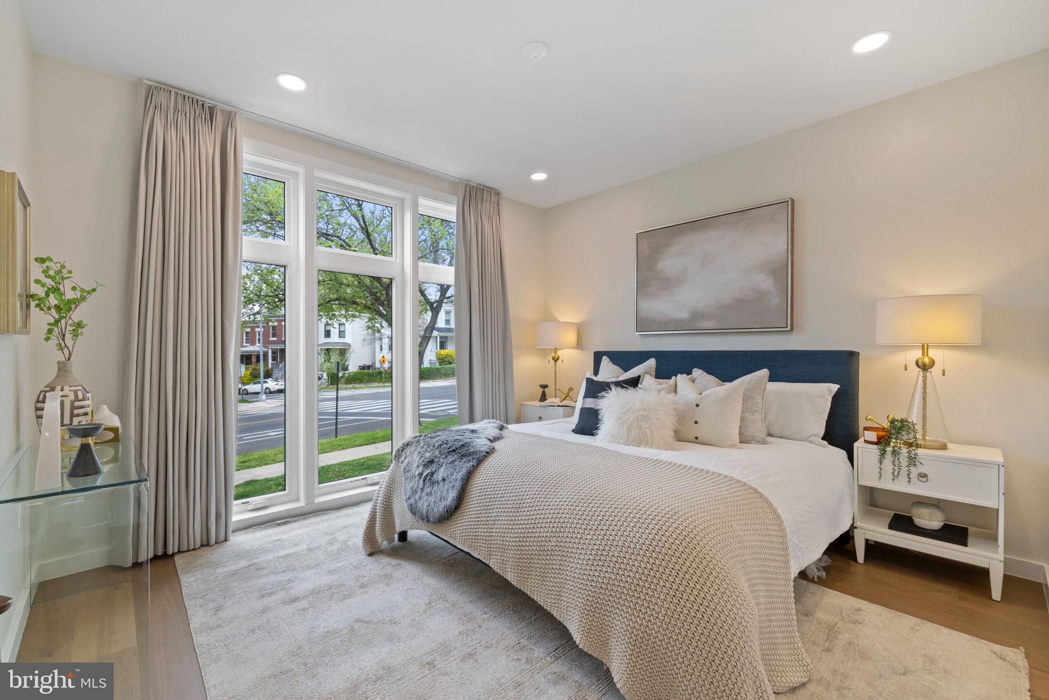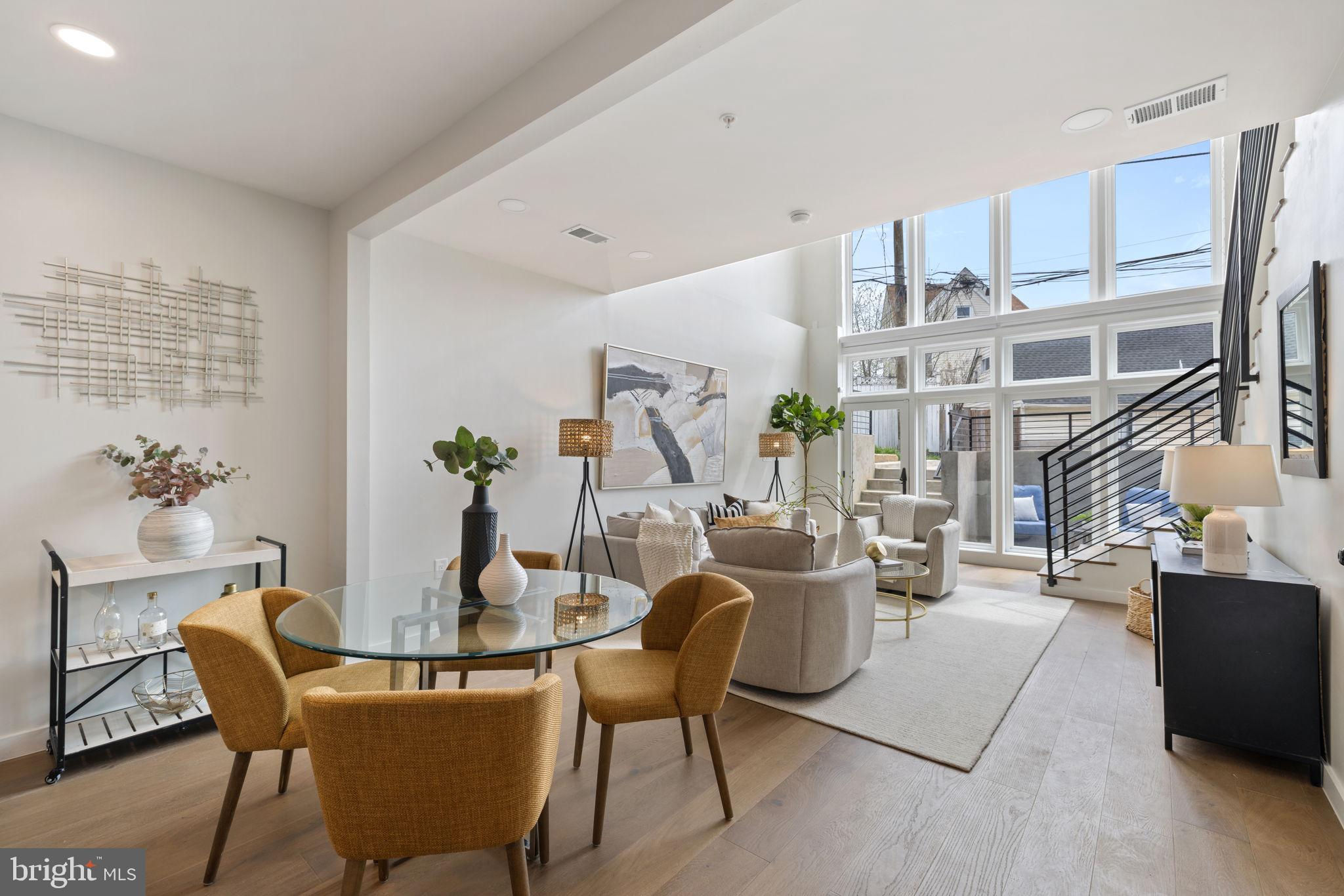 Best Value in the Neighborhood! Welcome to contemporary living in the vibrant Petworth! This stunning 3 bed/3.5 bath condo boasts over 1,800 square feet of space spread across two levels, offering a modern and spacious living experience. As you step into the dramatic double-height living room, you'll be greeted by floor-to-ceiling windows that flood the unit with natural light, creating a bright and inviting atmosphere. Custom motorized shades provide the flexibility to adjust for privacy, while the white oak floors seamlessly connect the living spaces. The open kitchen is a focal point, featuring stylish gray Shaker-style cabinets, quartz countertops, and a massive breakfast bar, perfect for entertaining guests or enjoying casual meals. Upstairs, the large primary suite is a luxurious retreat, offering ample space for a king-size bed and a massive walk-in closet. Custom black-out drapes ensure a peaceful night's sleep, while the en suite bath impresses with dual vanities, a large shower, and abundant storage. The guest bedroom doubles as a bright office, with an additional guest bath conveniently located on the same level. The third bedroom on the main level provides a private retreat for guests, complete with a built-in Murphy bed and an en suite bath. Located in a boutique building, this condo offers the best of both worlds – a peaceful residential setting near the heart of Petworth, with easy access to the vibrant dining scene on Upshur Street, Petworth Metro, Safeway, Yes! Organic, and more. Potential parking too - ask for more details.
