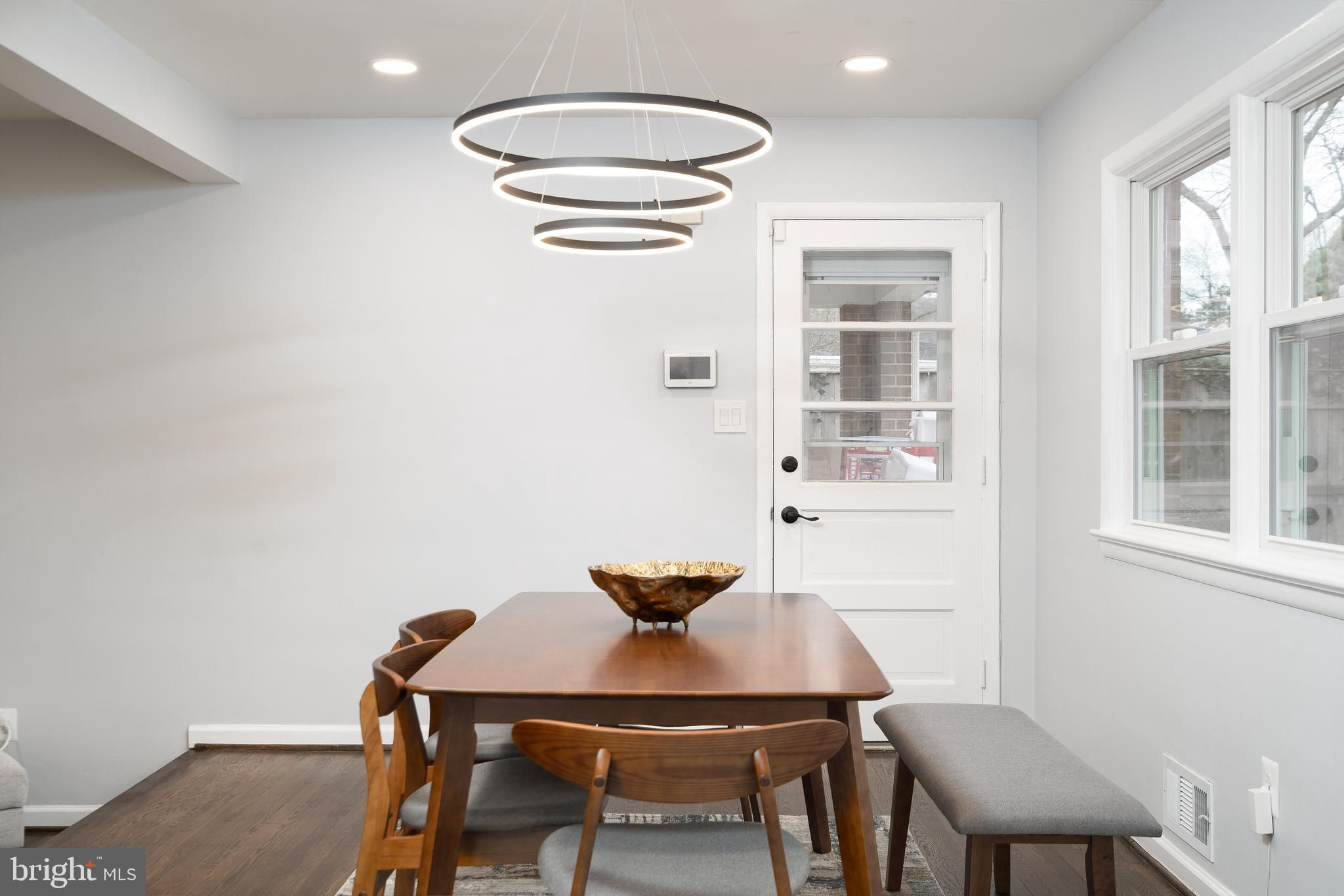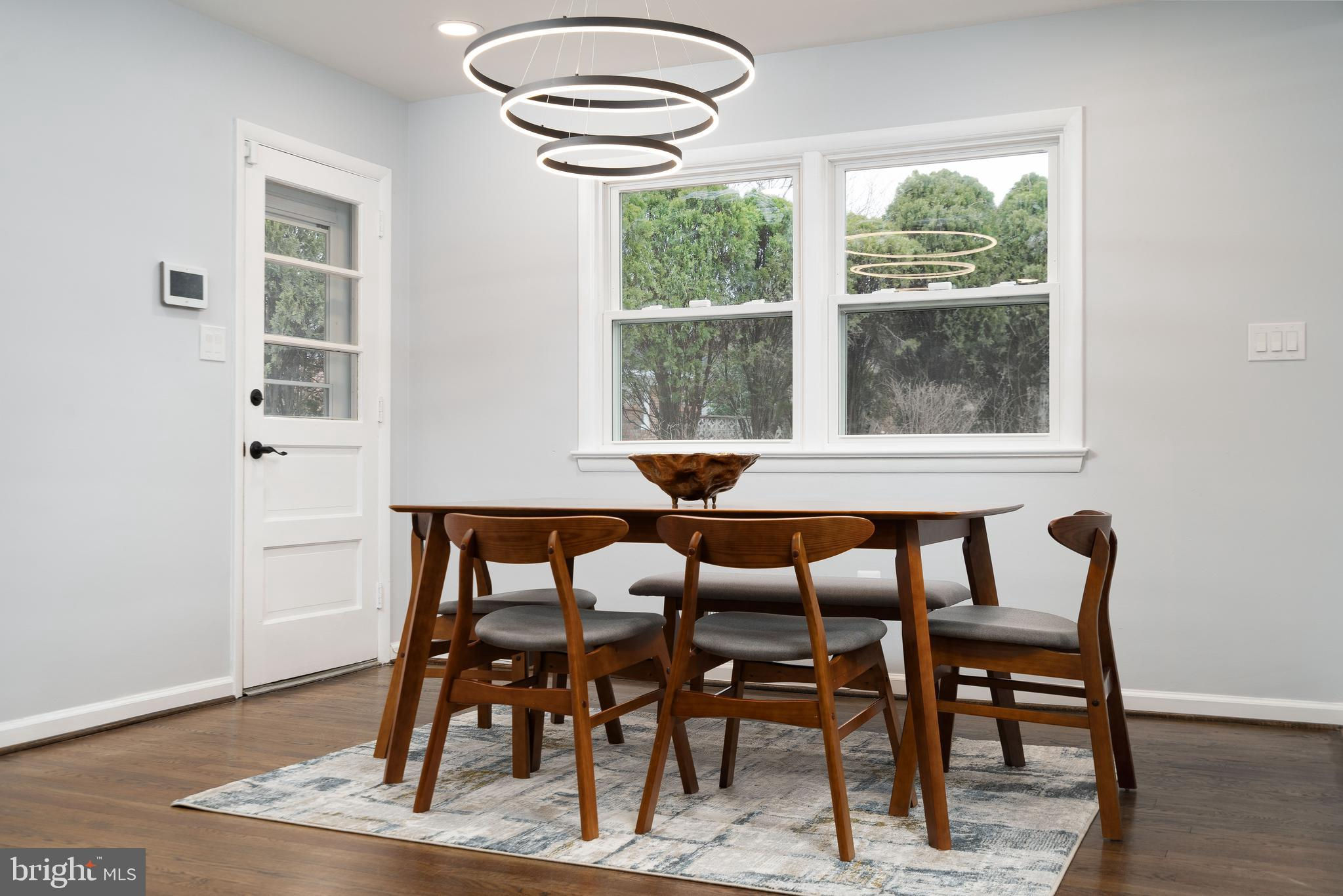 This exceptional 4-level, all-brick, split-level home offers 4 bedrooms and 3 full baths. Located just off 395, this property is a commuter's dream, providing easy access to the Pentagon, Mark Center, Alexandria Hospital, Shirlington, Washington DC, and Reagan Airport. Outside, you'll find a convenient carport and a large, level, fenced backyard adorned with mature trees, well-maintained landscaping, and a generously sized all-brick patio—an ideal setting for outdoor relaxation and entertainment. Upon entering, you'll be greeted by newly refinished hardwood floors on the main living level. The spacious 18x17 living room features a beautiful brick, wood-burning fireplace, complemented by a separate dining area. The upper level, with 3 bedrooms and 2 full baths, also boasts upgraded refinished hardwood floors. The lower third level offers an expansive 23x16 family room filled with natural light, featuring another wood-burning fireplace. The family room and the legal 4th bedroom. For added convenience, there's a separate laundry room. This remarkable home combines convenience, size, and versatility with a terrific backyard.