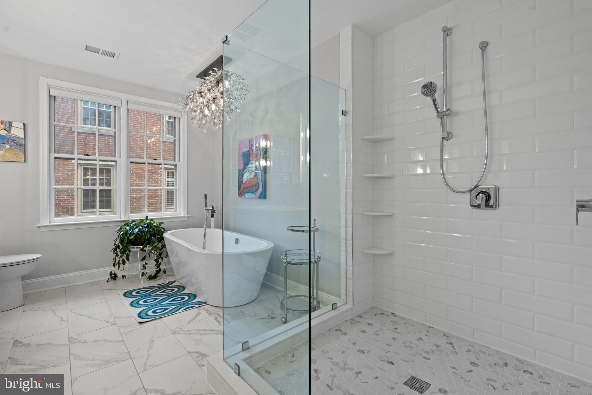 Stunning Renovation in the Desirable Gated Community of Wesley Heights! Welcome to this beautifully remodeled 4-bedroom, 3.5-bathroom townhome, elegantly designed across four levels and enhanced with approx $275,000 in upgrades. As you enter, you'll appreciate the open layout that features a separate dining room flowing into a spacious living room. This inviting space boasts soaring ceilings, built-in bookcases, and a captivating wood-burning fireplace, perfect for cozy gatherings. Unleash your culinary creativity in the modern kitchen, which has been thoughtfully redesigned to maximize space. It features ample cabinetry, quartz countertops, a stylish tiled backsplash, and stainless steel appliances. French patio doors with transoms flood the area with natural light and lead to a private brick patio, ideal for dinners al fresco and outdoor dining and entertaining. Ascend to the first upper level, where you'll find the reimagined primary bedroom suite, complete with a luxurious spa-like bathroom featuring dual sinks, exquisite tiling, a glass frameless shower, and a soaking tub. A versatile second bedroom or office is also located on this level. The second upper level offers two sunlit bedrooms that share a beautifully renovated hall bathroom with dual vanities and floor-to-ceiling tiling. The lower level expands your living space with elegant tiled floors, a sizable recreation room, an additional bedroom or den, and another fully renovated bathroom. Westover Place is a meticulously maintained gated community, featuring 24/7 security and gated access via Massachusetts Avenue, along with private residence access from New Mexico Avenue. Conveniently situated just steps away from shops and restaurants like Wagshal's, Al Dente, and Chef Geoff's, this home is also blocks from Horace Mann School, AU, and the Metro bus. Enjoy easy access to downtown DC and Georgetown. Don’t miss the opportunity to make this exceptional townhome your own!