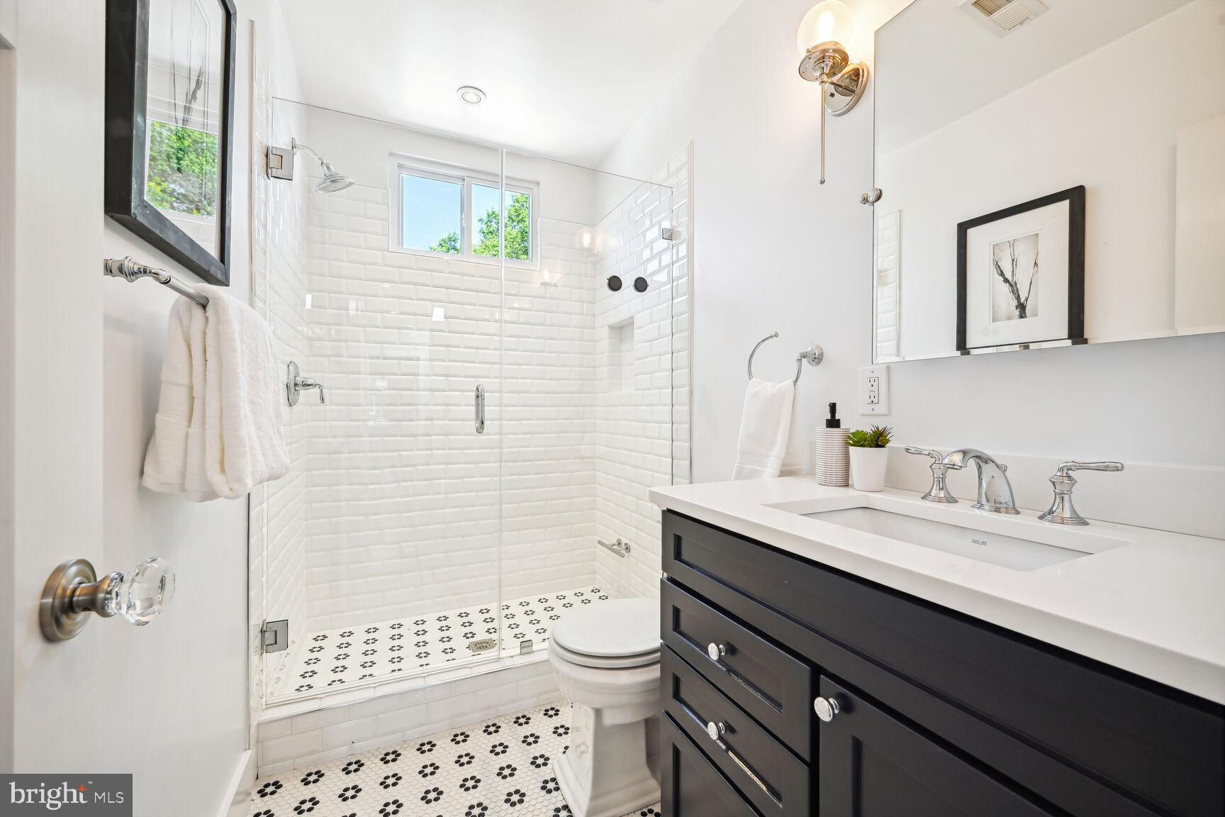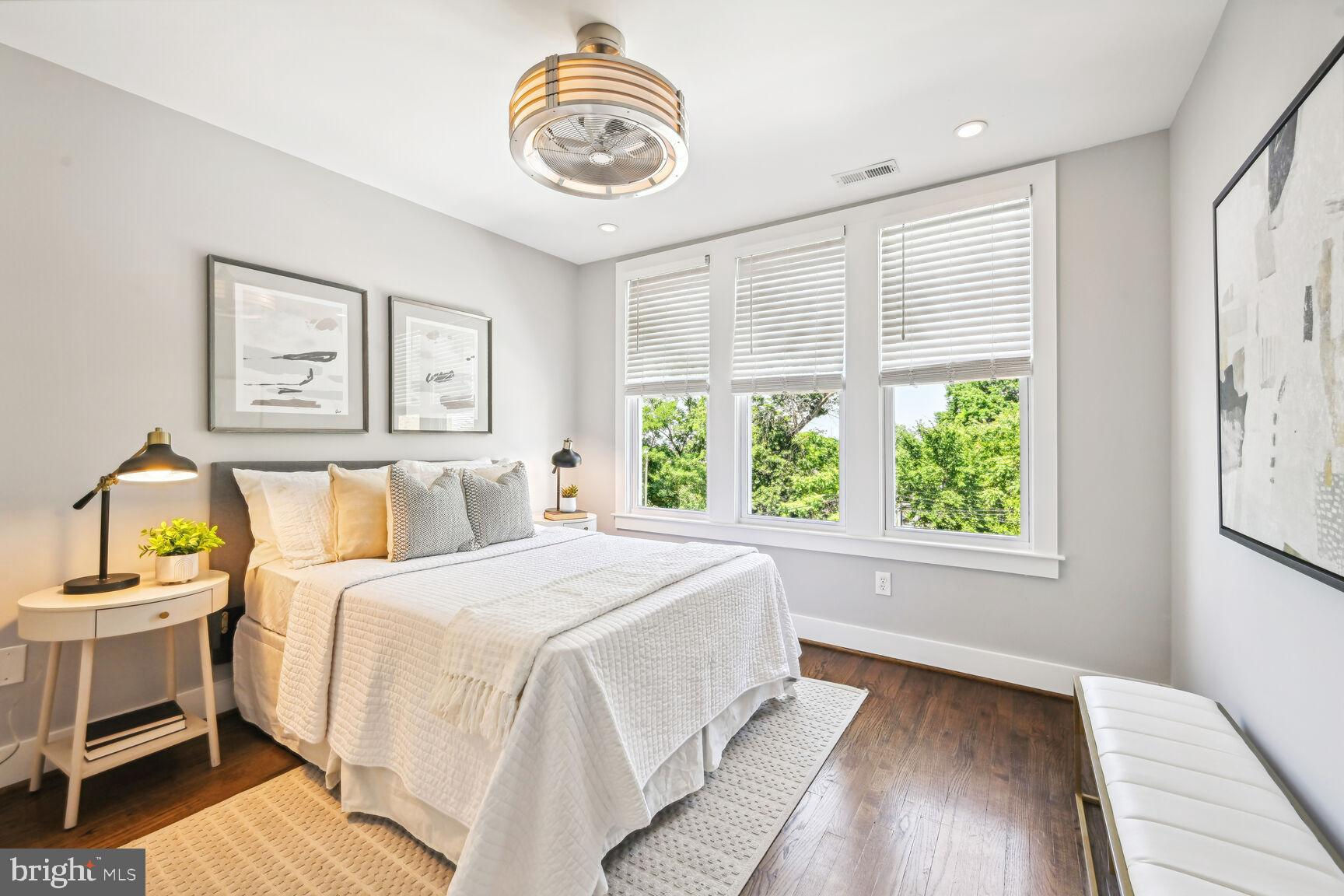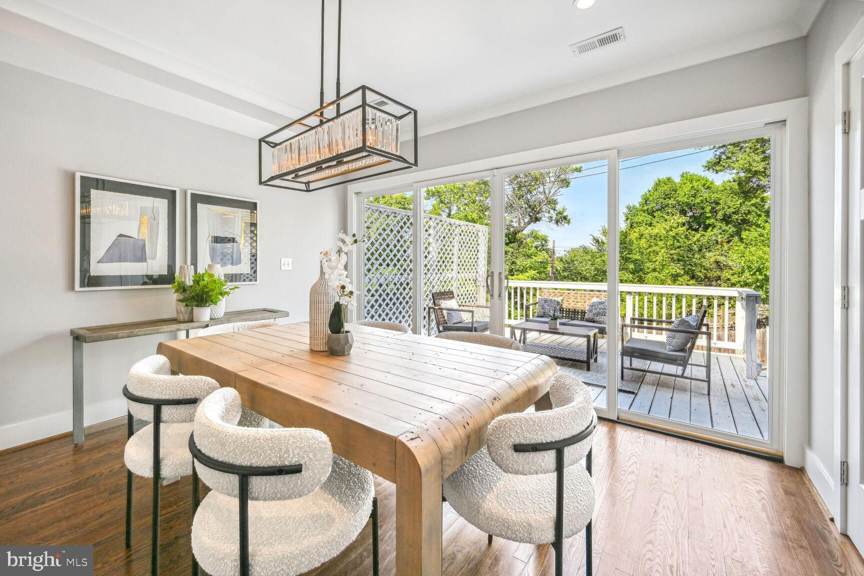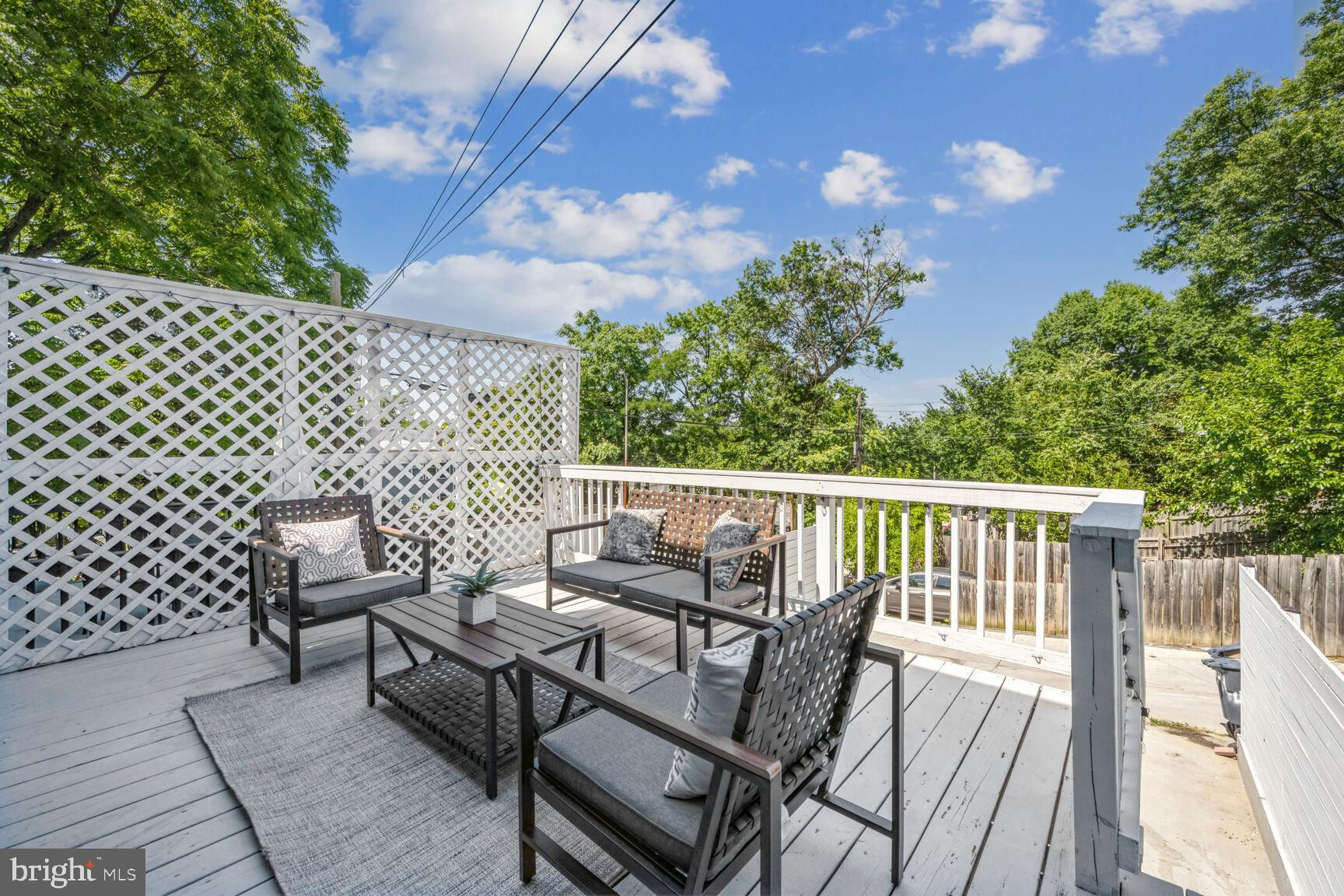 New Price! Modern elegance meets timeless charm in this stunningly renovated Petworth home. Boasting 3 bedrooms and 2.5 bathrooms in the main residence, alongside a separate 1 bedroom, 1 bathroom unit that offers rental potential on the lower level, this property epitomizes versatility and luxury. Upon entering, the open floorplan greets you with gleaming hardwood floors, exposed brick wall, and luxurious finishes throughout the living space, dining area, and expansive kitchen. A true chef’s kitchen with sleek marble countertops, ample cabinet space, stainless steel appliances, complemented by an exposed brick wall adorned with built-in shelves, offering both functionality and aesthetic appeal. Sliding glass doors lead to the spacious deck that provides a perfect space for entertaining your guests with meals outside. Convenient half bath off of the living area. The living space has a wall of windows that opens to the back deck, great for entertaining. Multiple skylights on the top floor allow light to pour through. The primary suite is a sanctuary of comfort, featuring high ceilings, plenty of closet space, and an en-suite bathroom equipped with an open shower and a luxurious soaking tub. There is even a private deck/outdoor space off of this owner’s bedroom where you can enjoy your morning coffee. This floor is rounded off by two additional bedrooms and a bathroom with custom designer tile work. Downstairs you will find a completely separate unit containing one bedroom, one bathroom, and a full kitchen with both front or rear entrances. Perfect for an au-pair suite or for long or short term rentals. The opportunities abound with this space. Off- Street parking for two cars. Nestled in the vibrant Petworth neighborhood, just blocks from the shops and restaurants on Upshur such as Timber Pizza, Cinder BBQ, Menya Hosaki, and San Matteo.