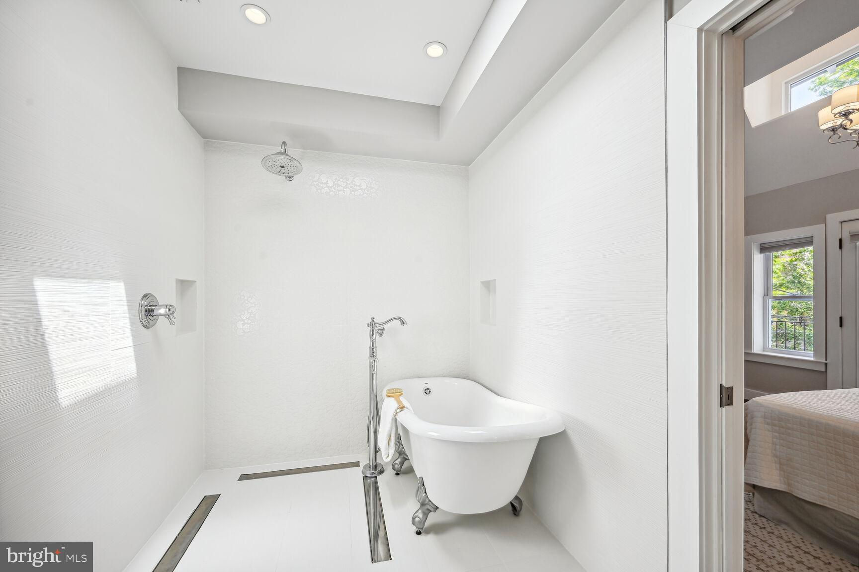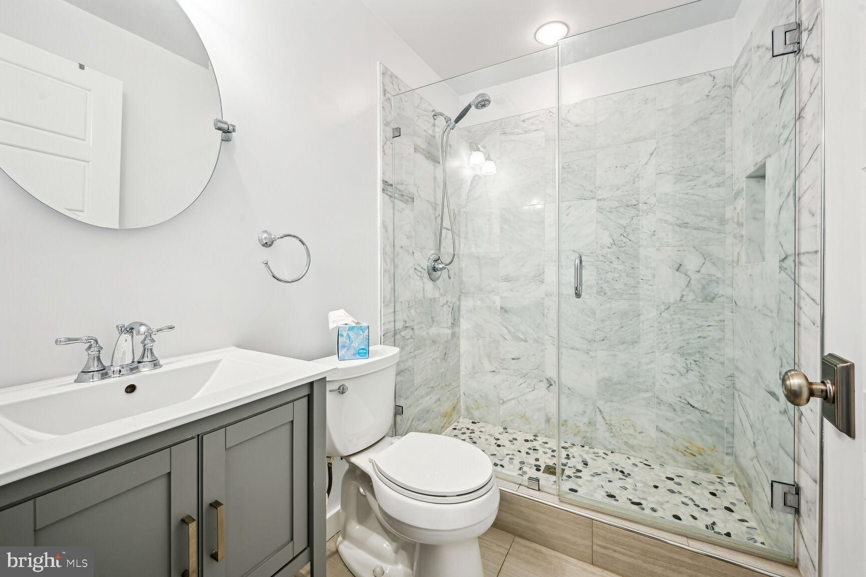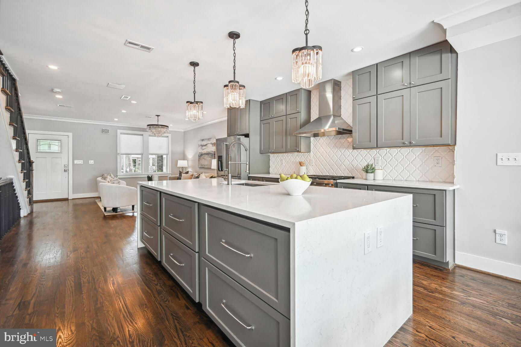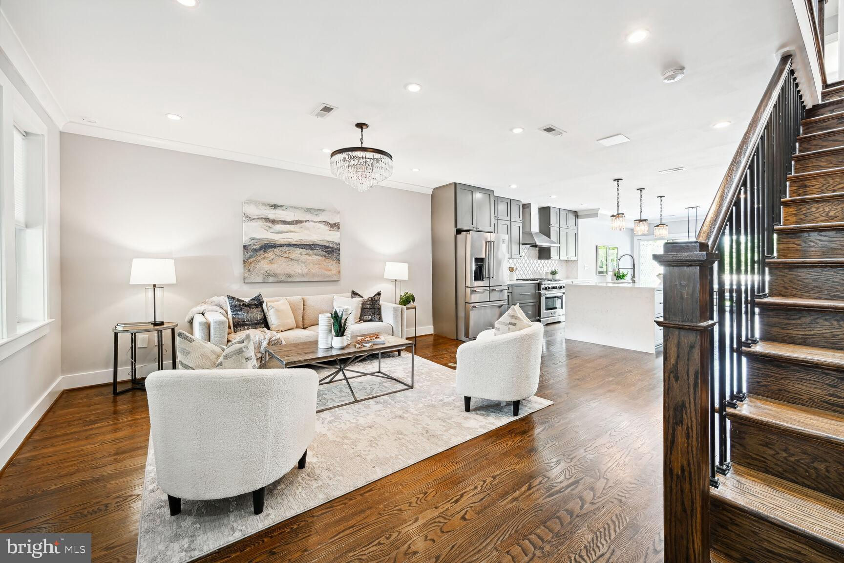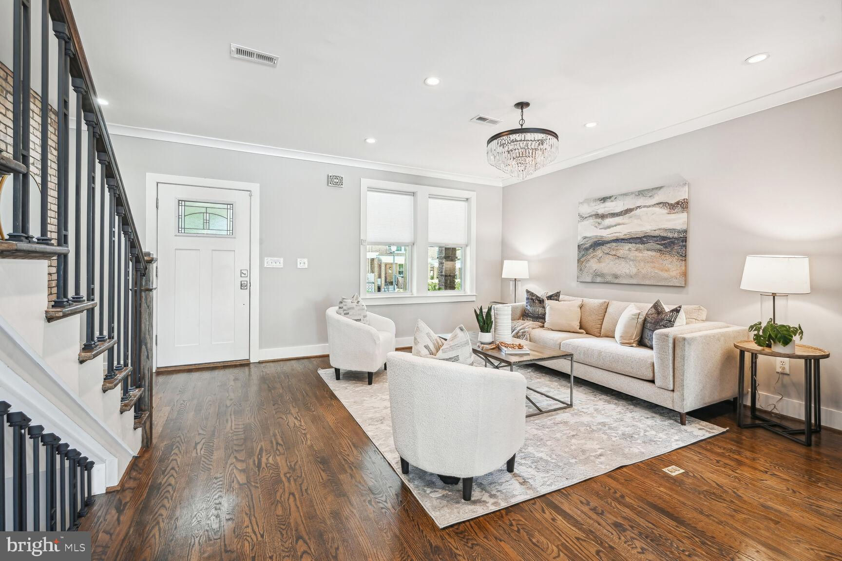 New Price! Modern elegance meets timeless charm in this stunningly renovated Petworth home. Boasting 3 bedrooms and 2.5 bathrooms in the main residence, alongside a separate 1 bedroom, 1 bathroom unit that offers rental potential on the lower level, this property epitomizes versatility and luxury. Upon entering, the open floorplan greets you with gleaming hardwood floors, exposed brick wall, and luxurious finishes throughout the living space, dining area, and expansive kitchen. A true chef’s kitchen with sleek marble countertops, ample cabinet space, stainless steel appliances, complemented by an exposed brick wall adorned with built-in shelves, offering both functionality and aesthetic appeal. Sliding glass doors lead to the spacious deck that provides a perfect space for entertaining your guests with meals outside. Convenient half bath off of the living area. The living space has a wall of windows that opens to the back deck, great for entertaining. Multiple skylights on the top floor allow light to pour through. The primary suite is a sanctuary of comfort, featuring high ceilings, plenty of closet space, and an en-suite bathroom equipped with an open shower and a luxurious soaking tub. There is even a private deck/outdoor space off of this owner’s bedroom where you can enjoy your morning coffee. This floor is rounded off by two additional bedrooms and a bathroom with custom designer tile work. Downstairs you will find a completely separate unit containing one bedroom, one bathroom, and a full kitchen with both front or rear entrances. Perfect for an au-pair suite or for long or short term rentals. The opportunities abound with this space. Off- Street parking for two cars. Nestled in the vibrant Petworth neighborhood, just blocks from the shops and restaurants on Upshur such as Timber Pizza, Cinder BBQ, Menya Hosaki, and San Matteo.