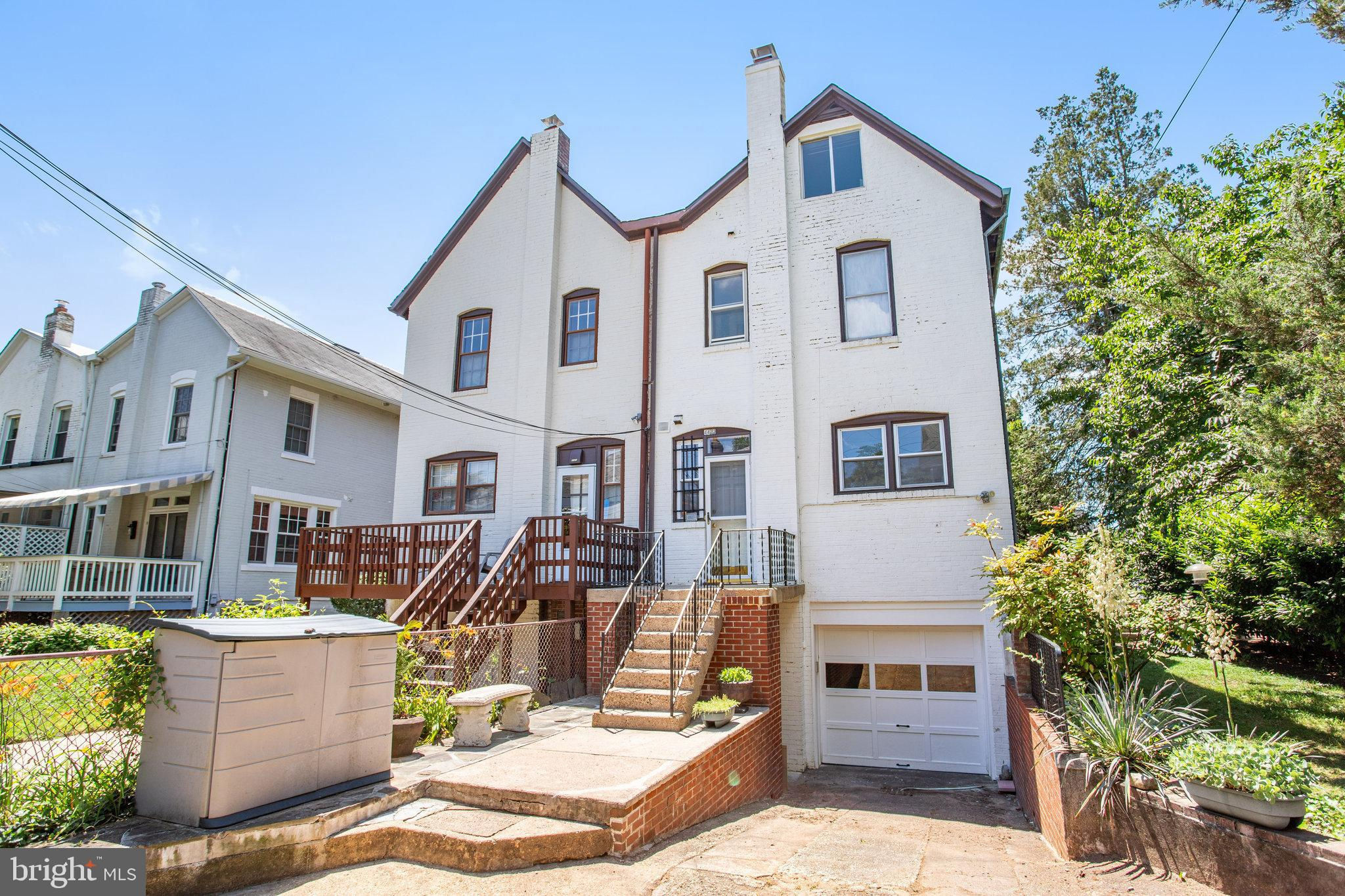 NEW PRICE! No HOA in one of the most sought-after neighborhoods in NW DC! This well-maintained, semi-detached Tudor-style home offers endless possibilities to customize to your personal taste. Nestled in the highly coveted American University Park neighborhood, this charming 1926 brick and stone duplex blends timeless elegance with modern conveniences, making it ideal for first-time homebuyers or savvy investors. Situated in the DC Public Schools district—serving Janney Elementary, Deal Middle, and Jackson-Reed High—this home features 4 bedrooms, 2 full and 2 half bathrooms, and over four finished levels of living space. A 1-car attached garage and a sizable private yard make it perfect for those seeking space to grow, whether you’re upsizing, downsizing, or looking for an investment with future potential. Key updates and features include a BRAND NEW (July 2024) SpacePak high-velocity air handler & condenser, stunning granite countertops and backsplash in the kitchen, gas cooking, and the convenience of a bathroom on every level. Original hardwood floors, soaring 10’ ceilings, large walk-in closets, and abundant storage add to the appeal. The primary bedroom includes an ensuite bathroom, and a finished attic bedroom—accessed via a striking spiral staircase—adds unique character to the home. With tall, stately windows on three sides, the home is flooded with natural light across all four levels of living space. Exterior features include copper gutters and downspouts, flagstone front and back patios, and lush landscaping, epitomizing the classic architectural details of this historic home. Located just 1/2 mile off Wisconsin Avenue NW, you’ll have access to an array of amenities, including parks, local restaurants, cafes, and a variety of both mom-and-pop shops and big-box retailers. Plus, the Tenleytown Metro is within a mile, ensuring quick commutes and easy access to all that Washington, DC, has to offer. Top-tier schools further enhance the desirability of this incredible property. With a perfect blend of vintage charm and modern amenities, this semi-detached home offers a rare opportunity to embrace gracious living in one of DC’s most desirable neighborhoods. This is it! Experience the best of urban living with a serene, suburban-like ambiance. Don’t miss the opportunity to make this house your forever home!