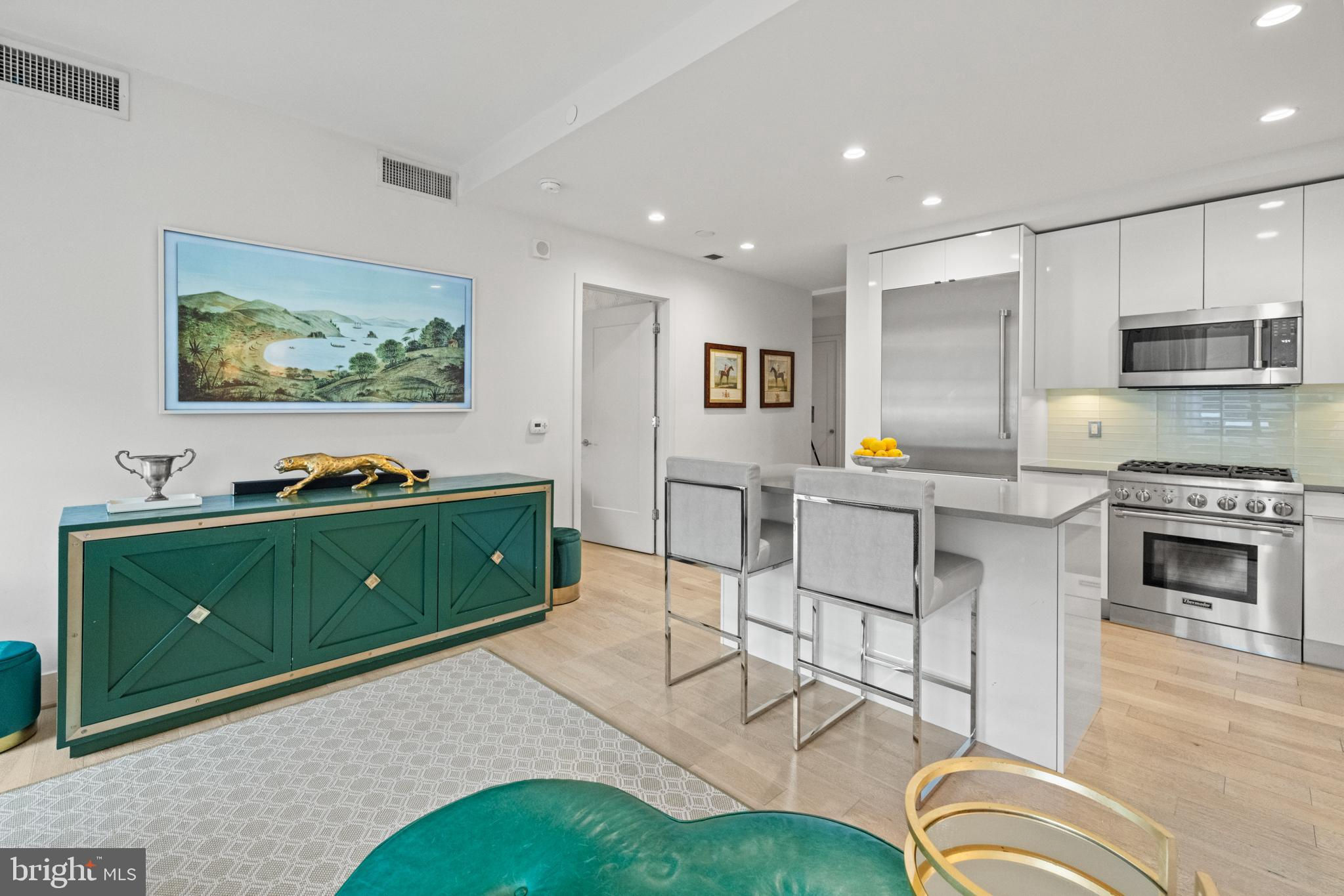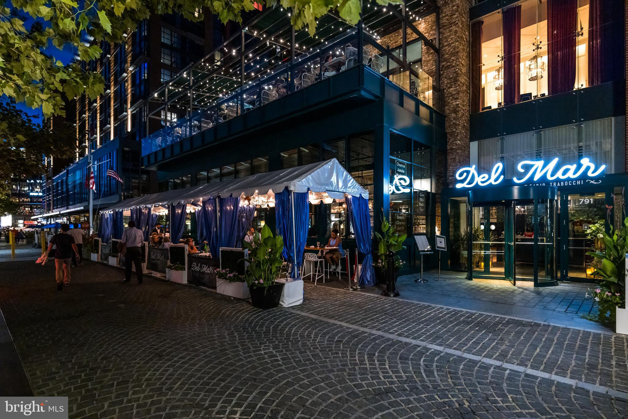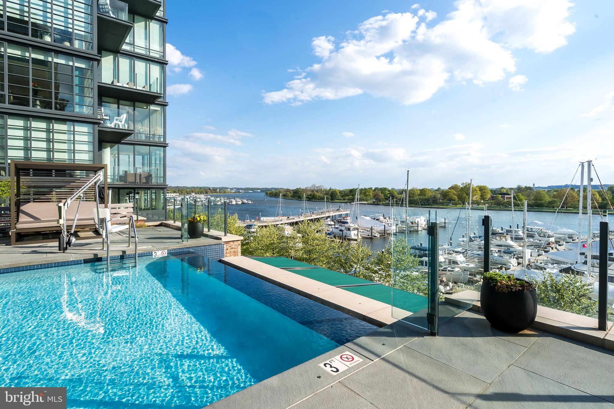 Experience upscale waterfront living at VIO, where luxury meets lifestyle at The Wharf. This beautifully designed 2-bedroom, 1-bath residence spans 915 square feet and features high-end finishes throughout, including wide-plank hardwood flooring, soaring ceilings, and floor-to-ceiling windows that flood the space with natural light. The open-concept kitchen showcases sleek Porcelanosa cabinetry, natural stone and quartz countertops, an island with bar seating, and premium Thermador and Bosch appliances. The bathroom is equally refined, with a Porcelanosa vanity, natural stone tile, and Kohler fixtures. The primary suite stands out with stylish designer wallpaper and a statement light fixture, while the second bedroom offers flexibility for use as a guest room, home office, or additional living space. Added conveniences include in-unit laundry. Vio residents enjoy access to top-tier amenities, including a heated saltwater infinity-edge pool overlooking the river, a fitness center with private training room, 24-hour concierge, fire pit, grilling area, and indoor/outdoor lounges. Additional perks include a dog-washing station, bike storage, electric car chargers, and extra storage. Located in the heart of The Wharf—D.C.’s premier waterfront destination—residents are just steps from award-winning restaurants, live music venues, shops, piers, and scenic walking paths. With water taxis, Metro access, and major highways nearby, city convenience meets tranquil riverfront living. The seller is currently renting a garage parking spot, which can be transferred to the new buyer.