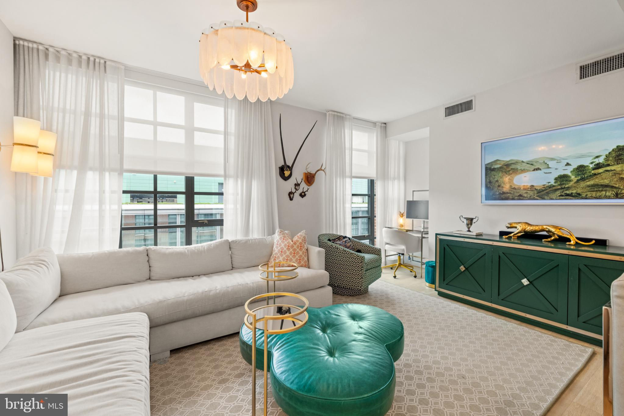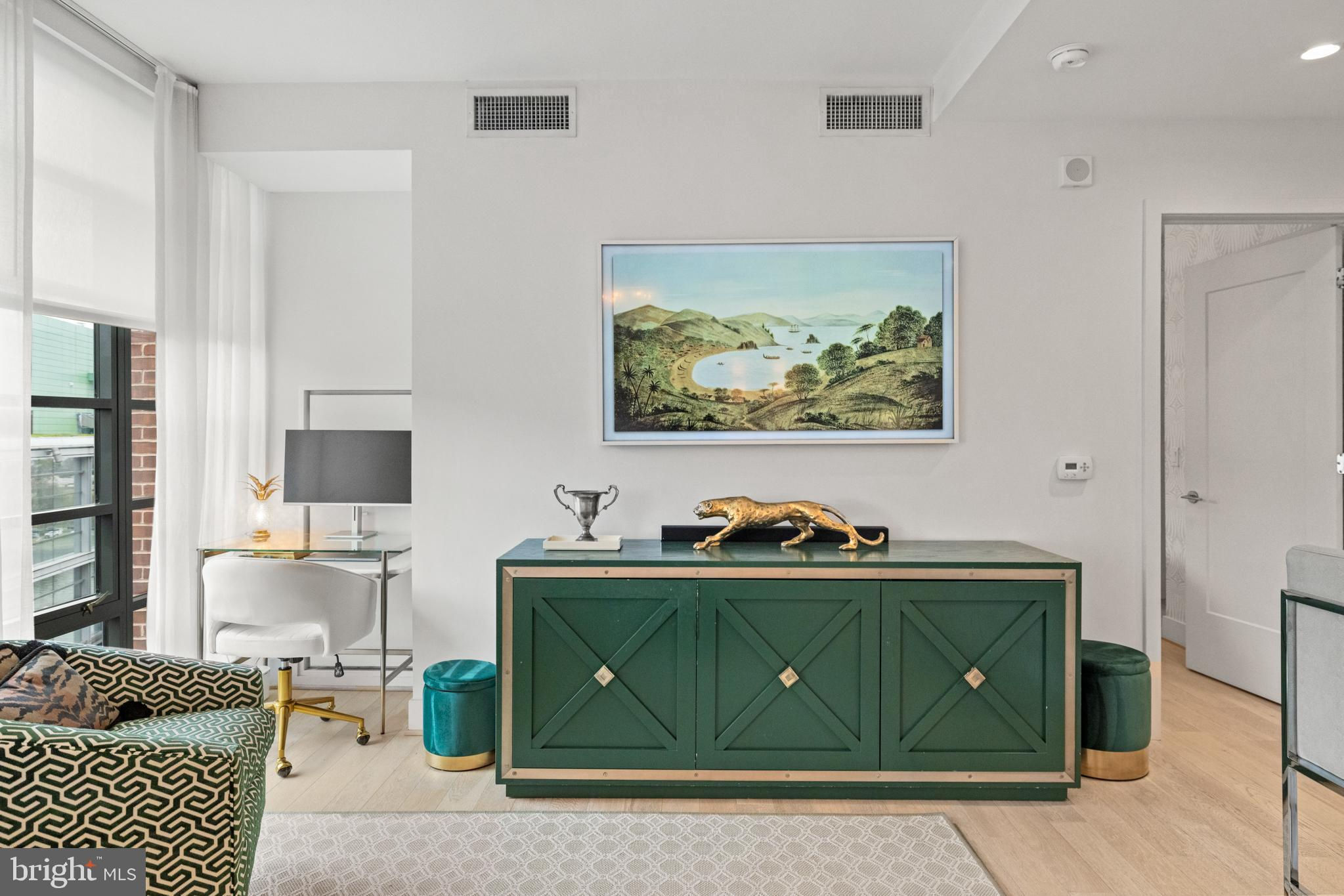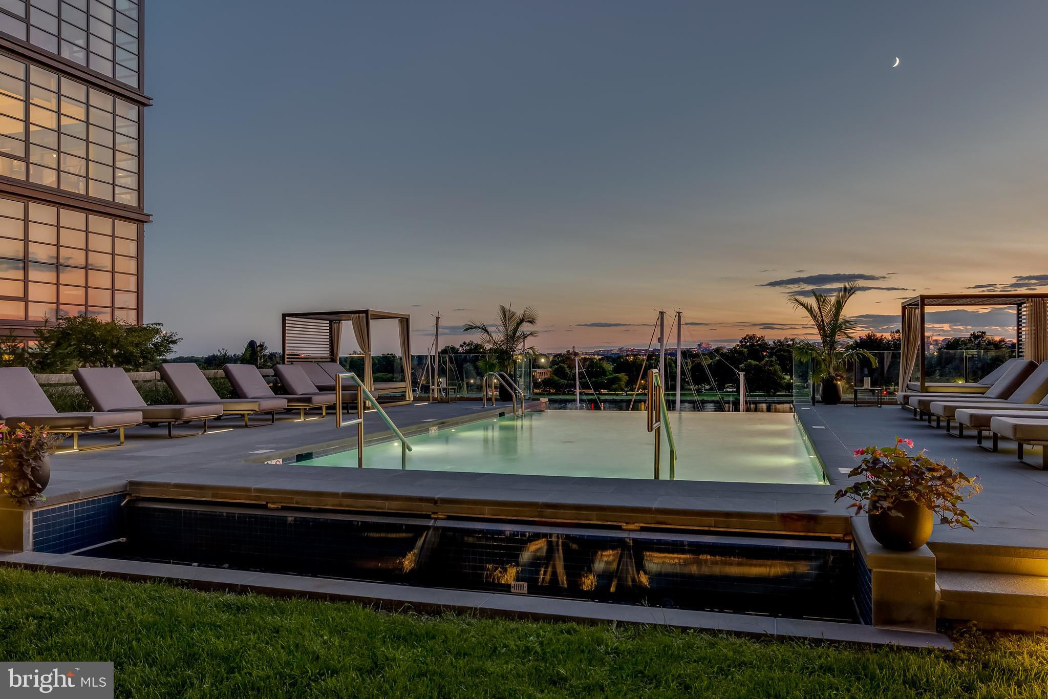 Experience upscale waterfront living at VIO, where luxury meets lifestyle at The Wharf. This beautifully designed 2-bedroom, 1-bath residence spans 915 square feet and features high-end finishes throughout, including wide-plank hardwood flooring, soaring ceilings, and floor-to-ceiling windows that flood the space with natural light. The open-concept kitchen showcases sleek Porcelanosa cabinetry, natural stone and quartz countertops, an island with bar seating, and premium Thermador and Bosch appliances. The bathroom is equally refined, with a Porcelanosa vanity, natural stone tile, and Kohler fixtures. The primary suite stands out with stylish designer wallpaper and a statement light fixture, while the second bedroom offers flexibility for use as a guest room, home office, or additional living space. Added conveniences include in-unit laundry. Vio residents enjoy access to top-tier amenities, including a heated saltwater infinity-edge pool overlooking the river, a fitness center with private training room, 24-hour concierge, fire pit, grilling area, and indoor/outdoor lounges. Additional perks include a dog-washing station, bike storage, electric car chargers, and extra storage. Located in the heart of The Wharf—D.C.’s premier waterfront destination—residents are just steps from award-winning restaurants, live music venues, shops, piers, and scenic walking paths. With water taxis, Metro access, and major highways nearby, city convenience meets tranquil riverfront living. The seller is currently renting a garage parking spot, which can be transferred to the new buyer.