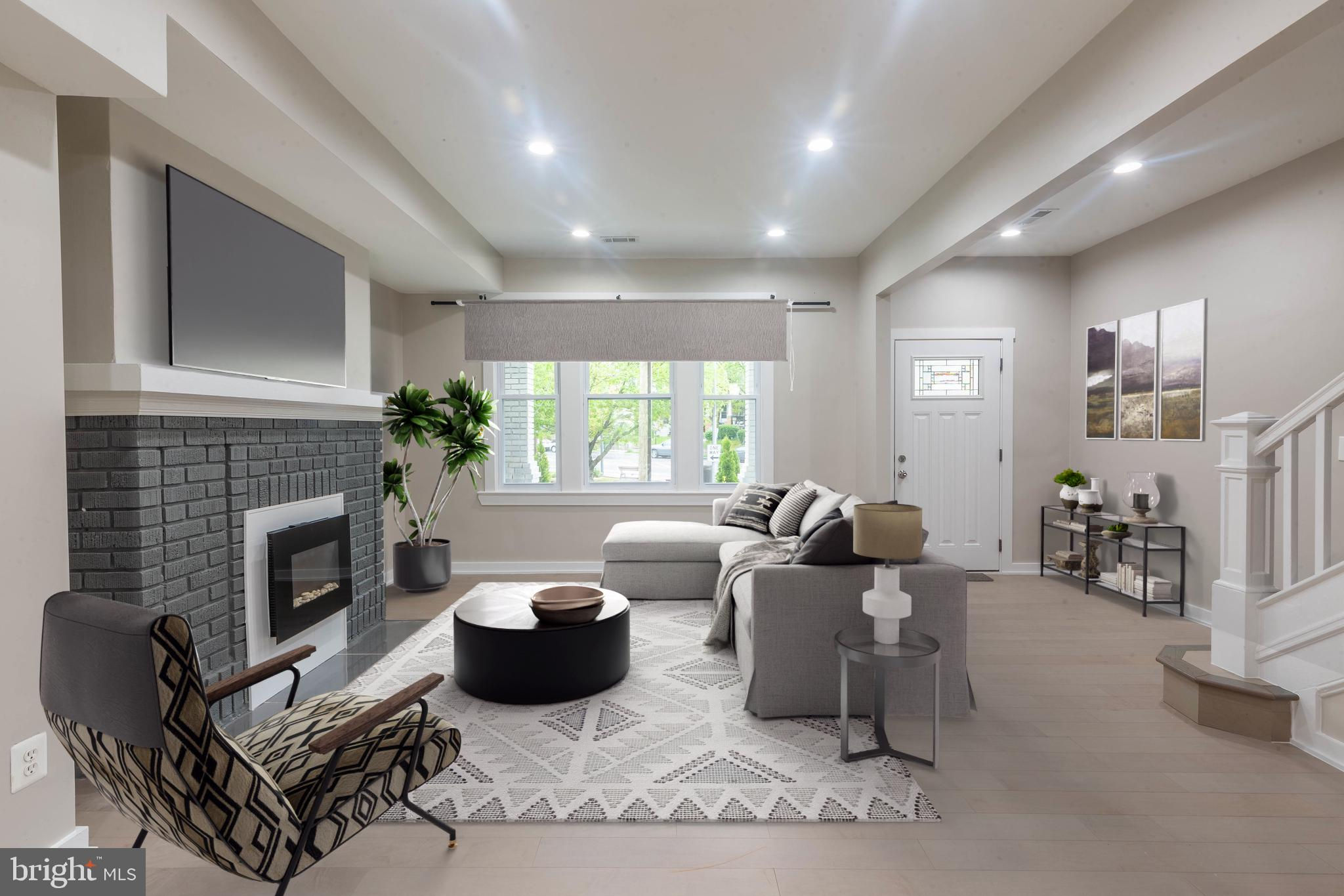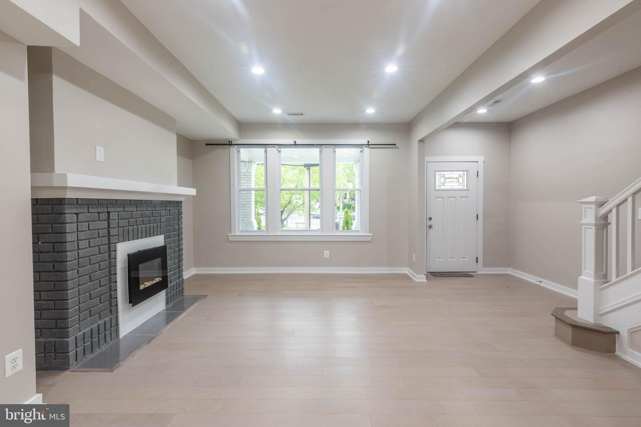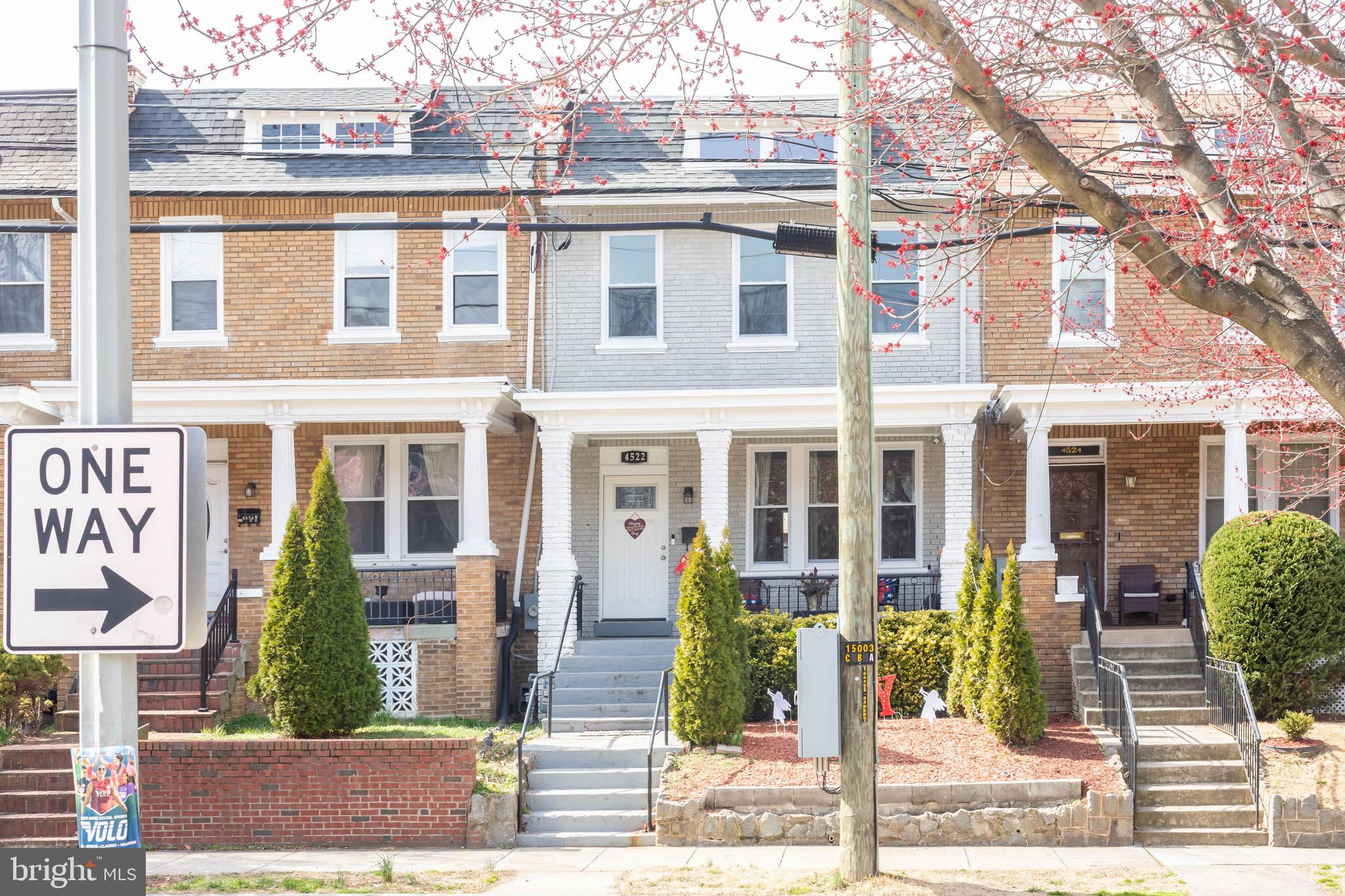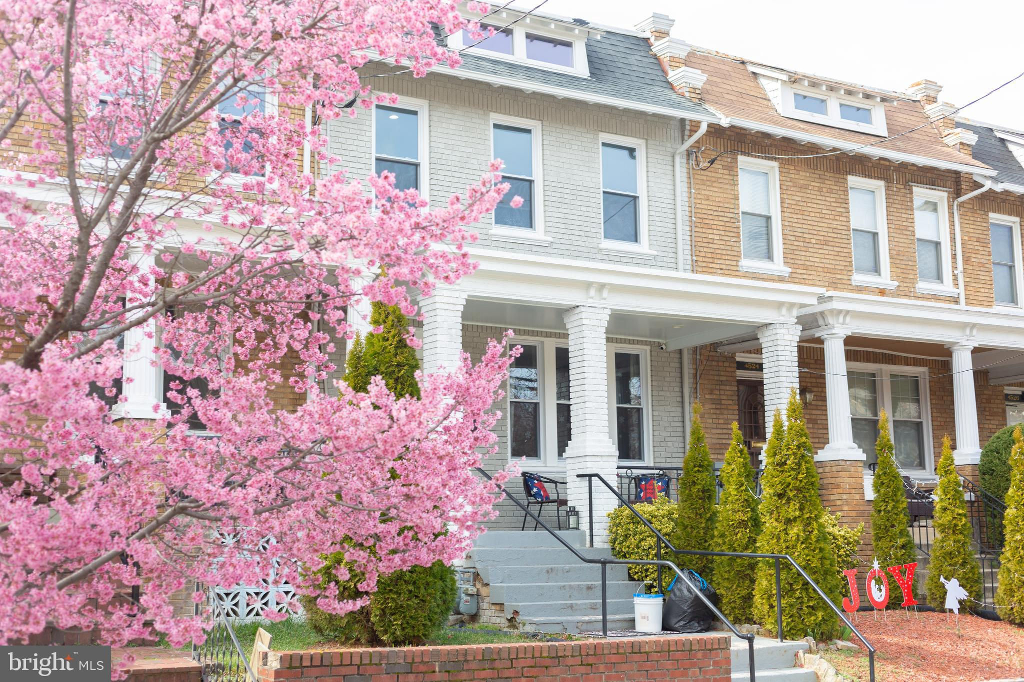 NEW PRICE! Completely Renovated from Top to Bottom! This magnificent 3-level Petworth home features 4 bedrooms, 3.5 bathrooms, a fully finished basement and an extra large custom Double Deck. A concrete parking pad provides private parking spaces for 2 cars. Home offers exceptional, open concept living with over 2,000 sf of inside living space. Beautiful, engineered hardwood floors. The inviting front patio beckons you to sit and enjoy the scenery all season long. Inside, a gorgeous custom stairway features elegant double wood borders, a modern electric fireplace, dramatic custom ceilings with plentiful recessed lights, and custom checkered wood beams on the kitchen and dining room. The main level boasts a chic modern gourmet kitchen with marble counters, stainless steel Kitchen Aid appliances with extra large refrigerator, custom backspace, designer light fixtures, and a dramatic custom center island with bar overhang. The inviting sunroom and back deck are visible from the front of the home. Enjoy outside dining from the main level deck that overlooks a separate private green space. Upstairs, the spacious master suite features plenty of closet space, recessed lighting, 9.5 foot tall ceilings, and a private en suite bath. Sun-filled windows light up the additional two large bedrooms. A spacious finished basement features a 4th bedroom, full bathroom, washer and dryer, utility room and rear exit to the backyard, parking pad and double deck. This fabulous home is within walking distance to green spaces and parks, the Petworth public library, and many food and dining options. Public transportation options include major bus routes, bike share, and metro (less than 1 mile. ) and a 15 min walk to great restaurants & Metro.