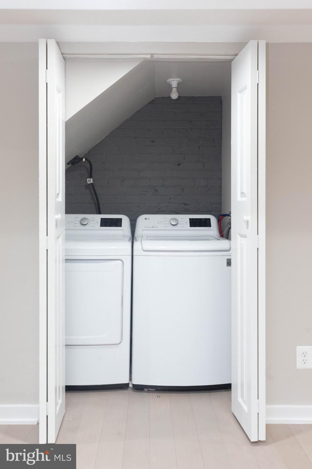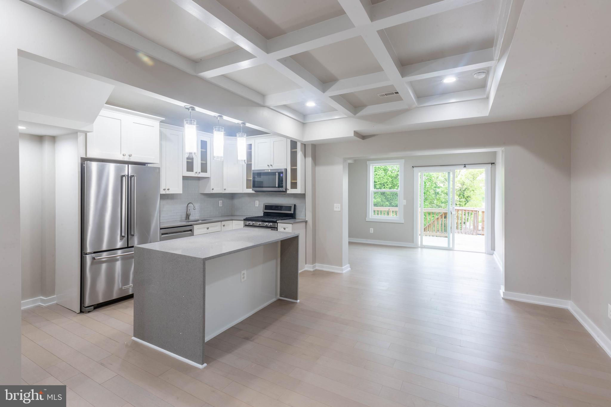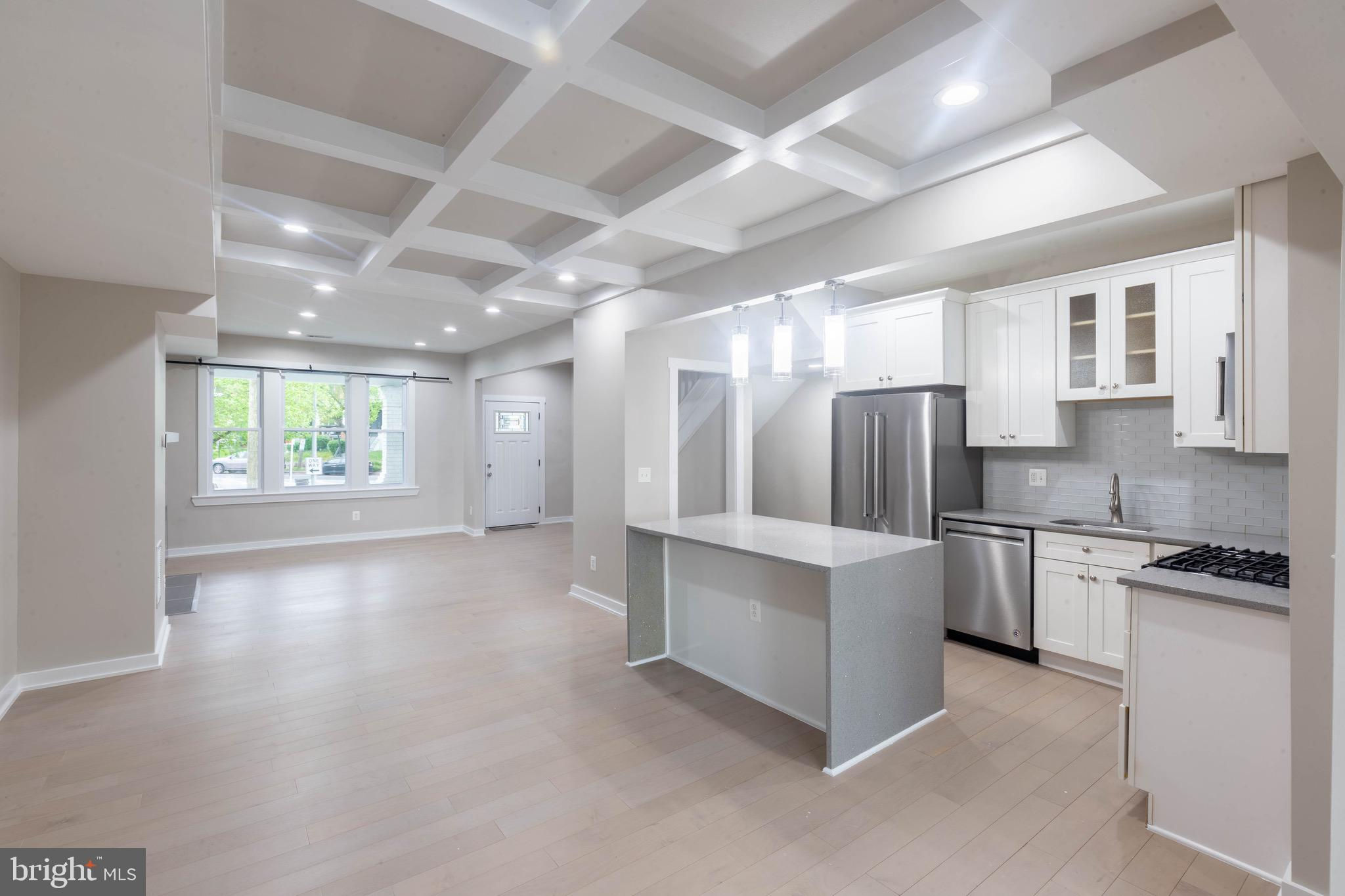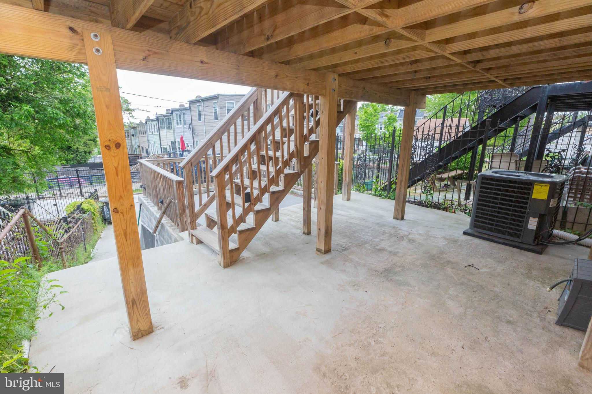 NEW PRICE! Completely Renovated from Top to Bottom! This magnificent 3-level Petworth home features 4 bedrooms, 3.5 bathrooms, a fully finished basement and an extra large custom Double Deck. A concrete parking pad provides private parking spaces for 2 cars. Home offers exceptional, open concept living with over 2,000 sf of inside living space. Beautiful, engineered hardwood floors. The inviting front patio beckons you to sit and enjoy the scenery all season long. Inside, a gorgeous custom stairway features elegant double wood borders, a modern electric fireplace, dramatic custom ceilings with plentiful recessed lights, and custom checkered wood beams on the kitchen and dining room. The main level boasts a chic modern gourmet kitchen with marble counters, stainless steel Kitchen Aid appliances with extra large refrigerator, custom backspace, designer light fixtures, and a dramatic custom center island with bar overhang. The inviting sunroom and back deck are visible from the front of the home. Enjoy outside dining from the main level deck that overlooks a separate private green space. Upstairs, the spacious master suite features plenty of closet space, recessed lighting, 9.5 foot tall ceilings, and a private en suite bath. Sun-filled windows light up the additional two large bedrooms. A spacious finished basement features a 4th bedroom, full bathroom, washer and dryer, utility room and rear exit to the backyard, parking pad and double deck. This fabulous home is within walking distance to green spaces and parks, the Petworth public library, and many food and dining options. Public transportation options include major bus routes, bike share, and metro (less than 1 mile. ) and a 15 min walk to great restaurants & Metro.