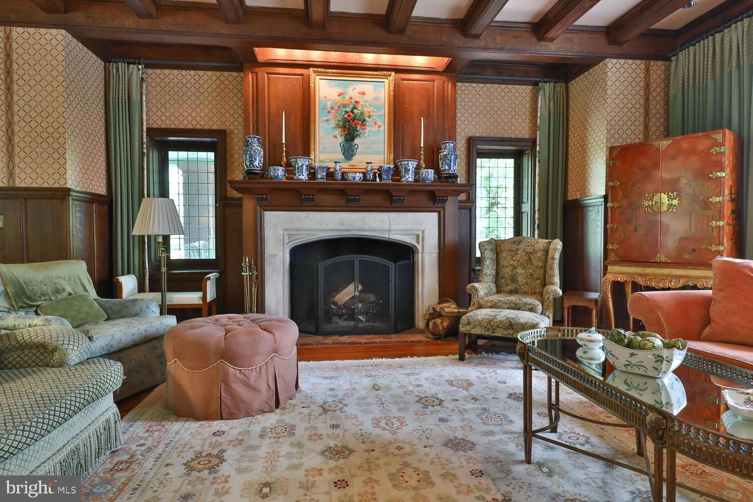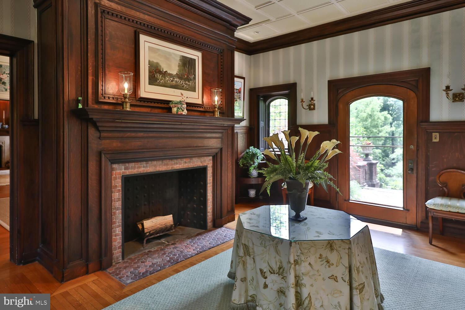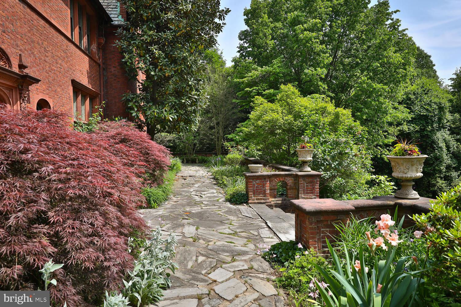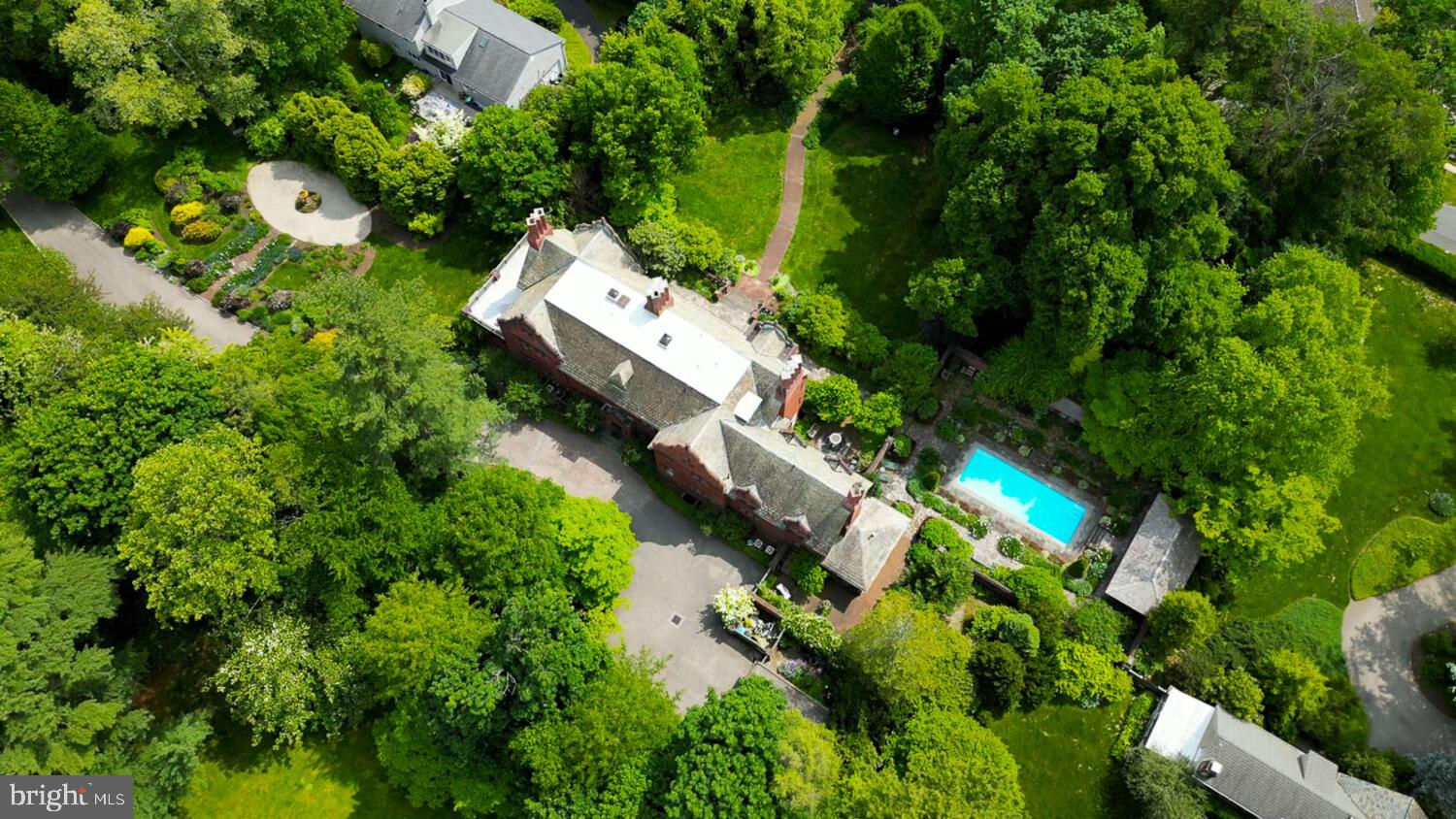 Every year, Americans scramble to the UK to walk the streets filled with history, and tour fine old houses. Why bother when you can own one of those fine homes, right here, in Philadelphia. Once in a generation opportunity to own one of the most significant properties in the city, "Binderton" was designed by Cope & Stewardson Architects (also designed for University of Pennsylvania and Princeton). The house was started in 1903 and finished in 1906. The renowned landscape architecture firm of the Olmsted Brothers was engaged to handle landscape, hardscape, and garden design. During their ownership, the present owners purchased 461 W Chestnut Hill Ave. (which had been subdivided from the original plot many years earlier) demolished the modest house that existed , and expanded the property and gardens, and redesigned the driveway. Situated on the quietest street in Chestnut Hill and surrounded by homes of equal caliber, Binderton stands out with its brilliant red brick construction and distinctive Jacobean Revival (or Jacobethan) style , with shaped parapets, and intricately designed chimneys. In most places, the house is designed only one room deep and was built linearly, near the property line at the high side. The brilliance of the Olmsted Brothers work is apparent in the brick walkway that rises elegantly from Towanda Street up a gradual hill with a low step every 20 feet or so. From the stone patio, enter the front door into the formal entry hall with main staircase at the back. The foyer is filled with natural light from two sides, a fireplace, a powder room, and a large coat room with window. Again from the entry hall, walk into, what was called in 1906, the "Ladies' Parlor", a sunny, elegant sitting room with big windows and a fireplace. The formal living room with two distinct seating areas, beamed ceiling , and wood burning fireplace can be accessed from the "ladies' parlor" or directly from a hallway. The exterior door off the living room leads to an open air loggia with tiled floor and finished ceiling. To the left of the front door, head to the formal dining room with fireplace, elegant crystal chandelier and room for a second dining table! The kitchen has everything you want. From the front hall, head through the butler's pantry with lighted cabinetry, porcelain sink , and dishwasher: a great spot to set up the bar on party nights. Further on you reach the supersized chef's kitchen with two sinks, three ovens, a six-burner range, banquette seating for conversation while prepping dinner, stools at the counter for breakfasts on a busy day, and a big table at the end of the house for casual dinners. Off the kitchen is a huge pantry area and laundry room. Beyond the kitchen end is a glassed in garden porch that will serve myriad functions that make daily living more convenient. Head up the carved and turned staircase and turn left at the top to reach the primary suite, that includes the bedroom with fireplace and door to second floor balcony, a cozy sitting room, great for reading or streaming late into the night, a beautiful, bright corner office/den, and a spacious bathroom with two sinks and walk-in shower. On the second floor to the right of the main stair are four additional bedrooms, two of which share a jack-and-jill bath ; and two others that share an additional hall bath. The third floor has three bedrooms, a full bath, and a large central room, perfect for play or privacy. The 1.6 acres that surround the house defy description. Mature trees, abundant perennial beds, lush lawns, and garden rooms; one prettier than the next. The main focus in the summer is the pool area. Exquisitely private with its walled garden, and elegant brick veranda, it is here where you can escape from the sun and the world. Built to span the ages, Binderton will pass to someone who loves grand old houses and understands stewardship.