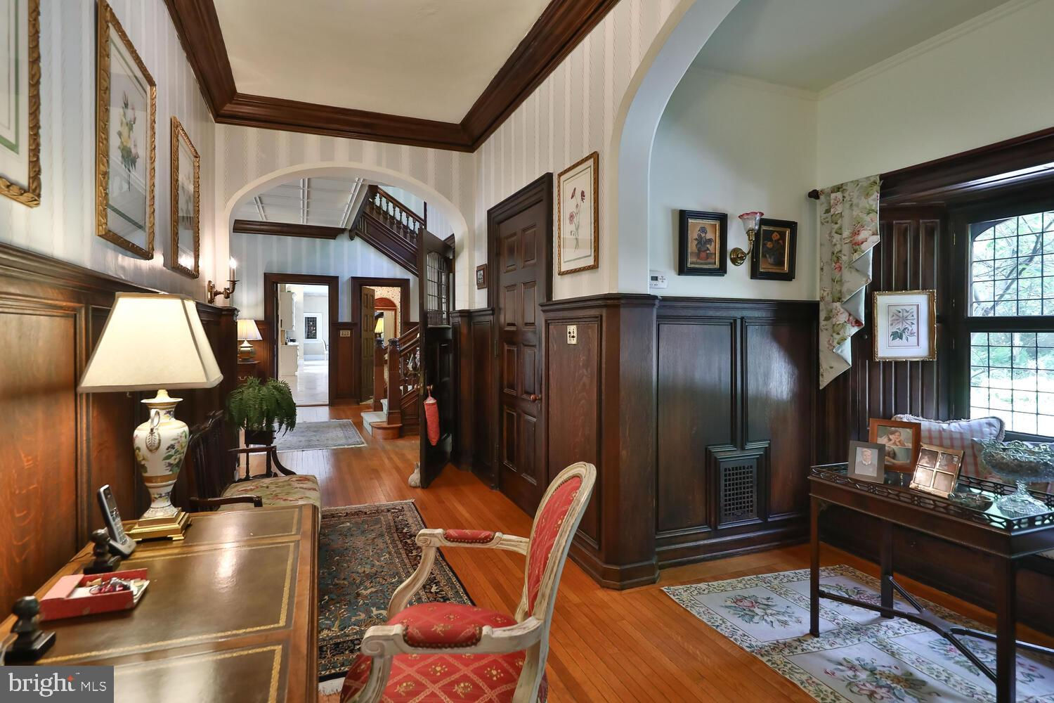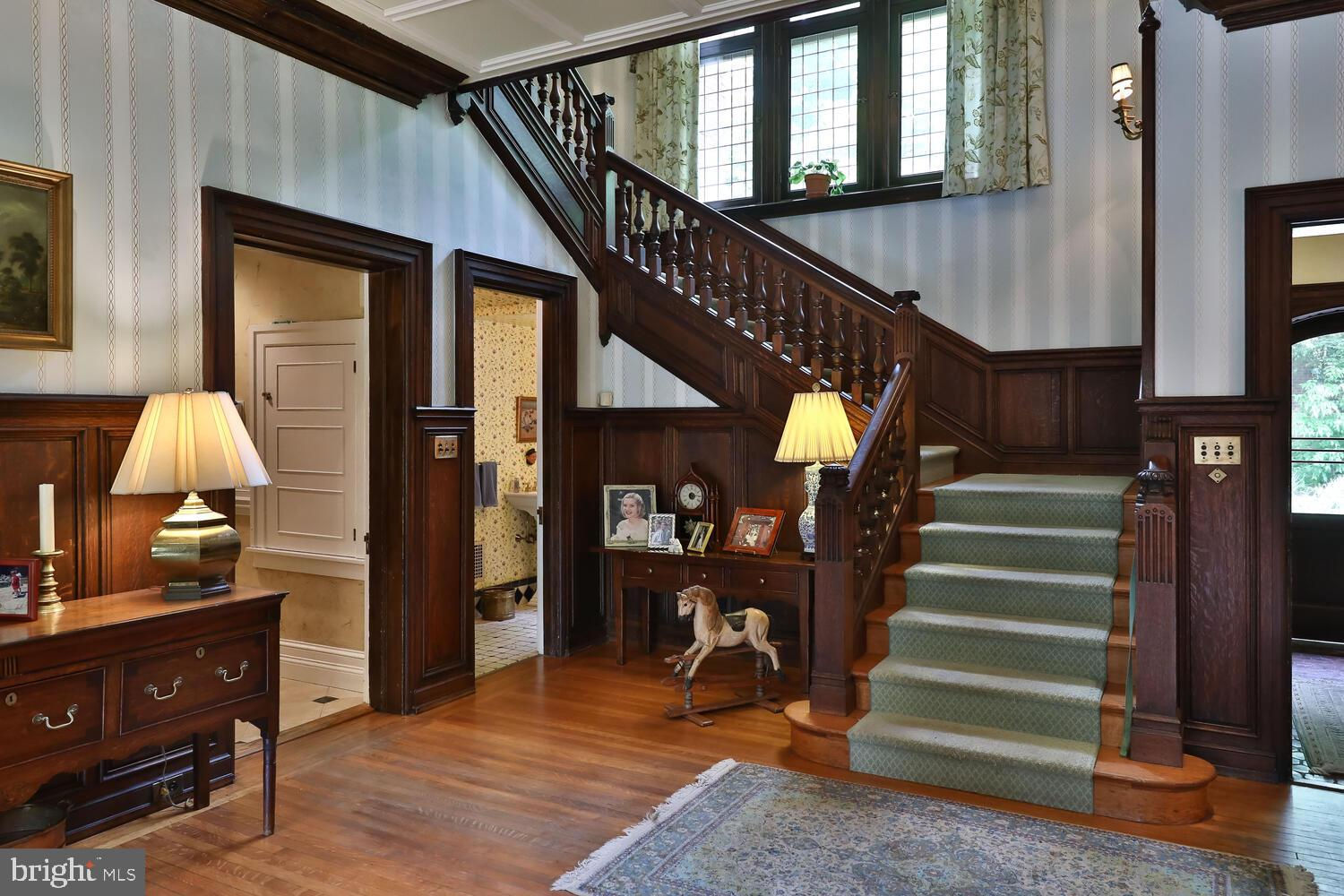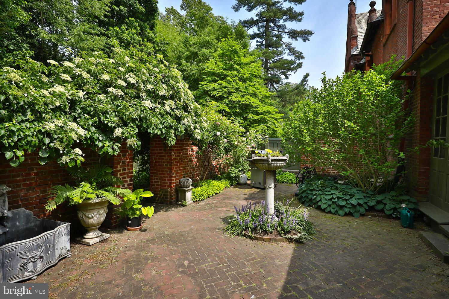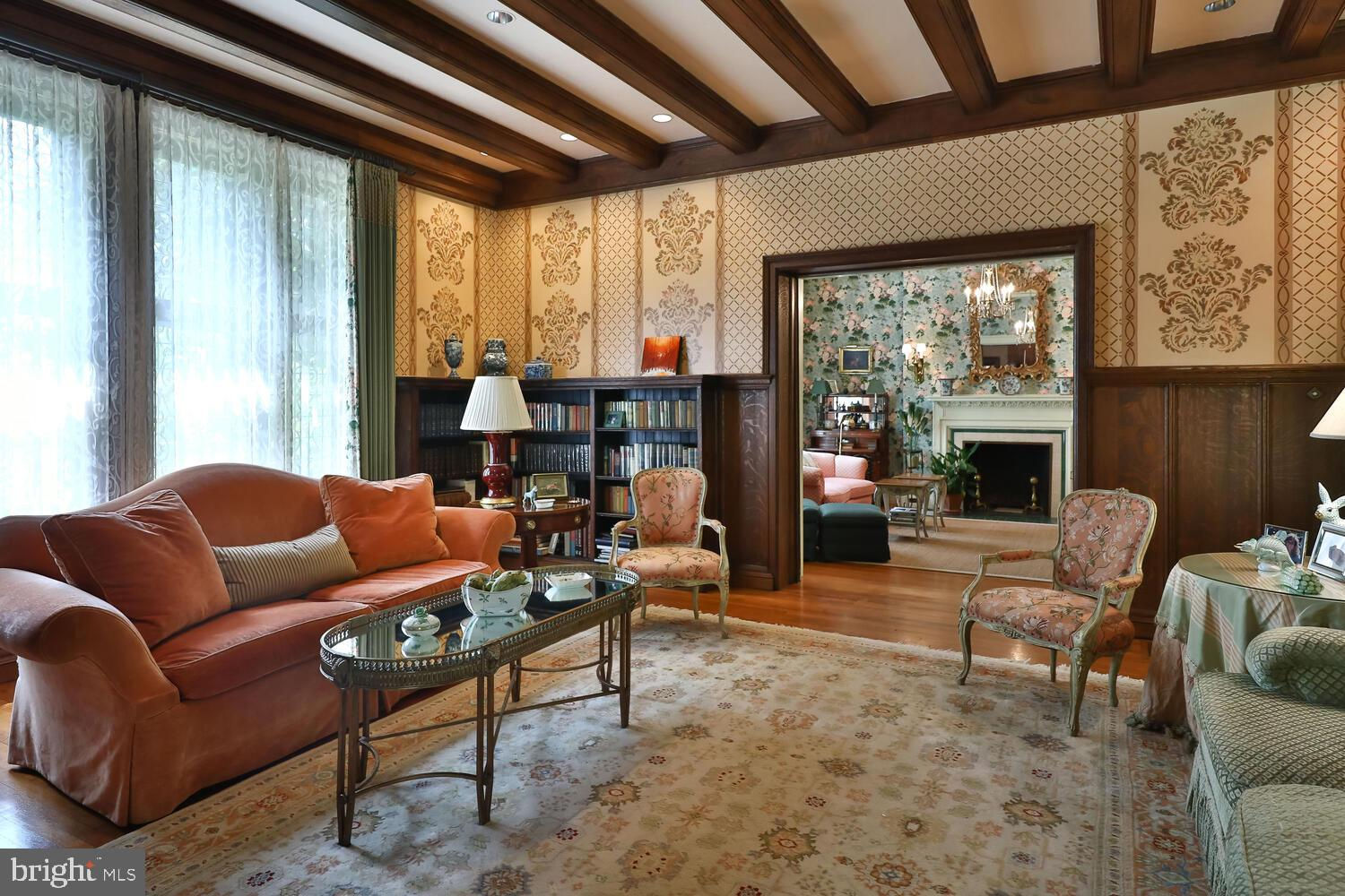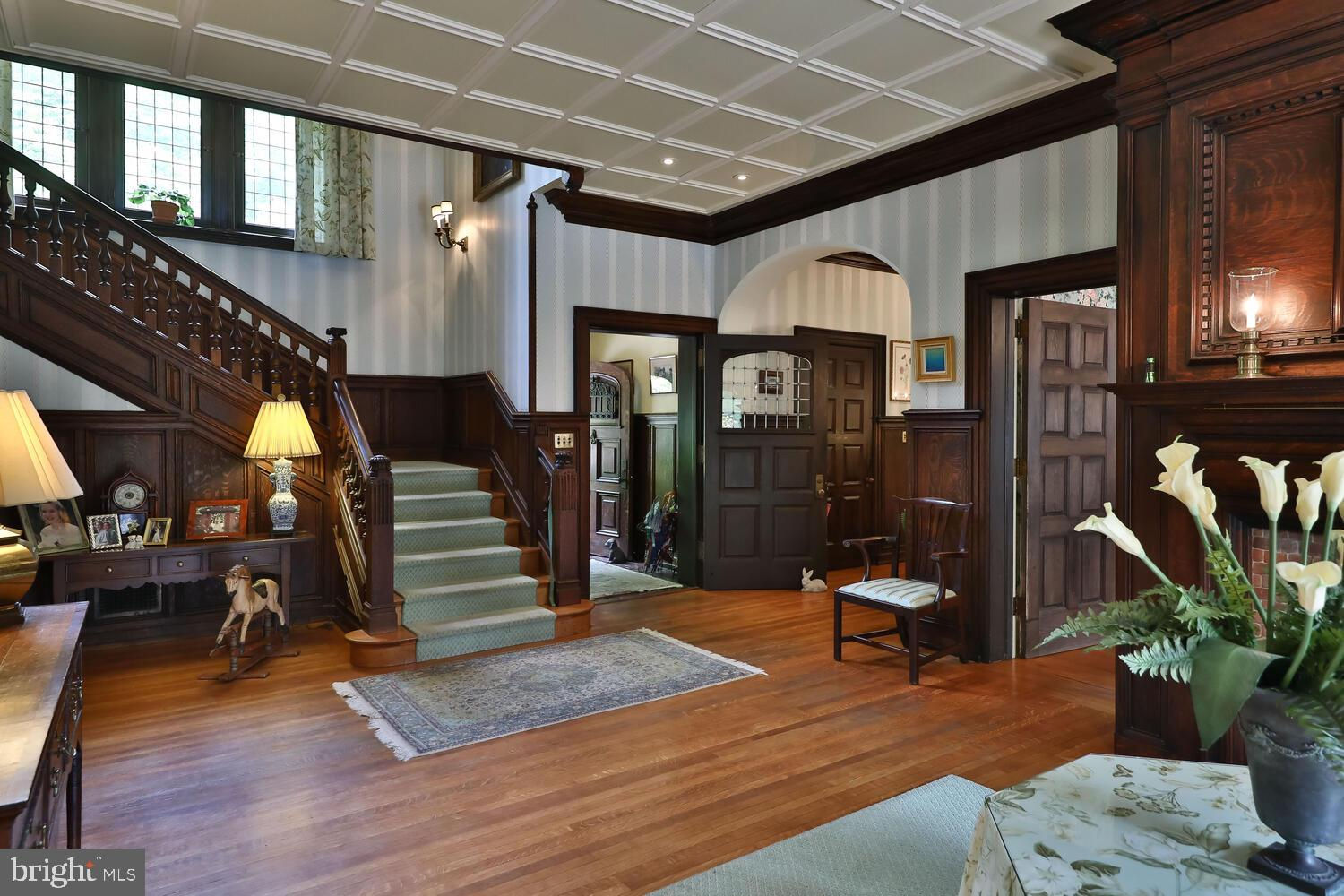 Every year, Americans scramble to the UK to walk the streets filled with history, and tour fine old houses. Why bother when you can own one of those fine homes, right here, in Philadelphia. Once in a generation opportunity to own one of the most significant properties in the city, "Binderton" was designed by Cope & Stewardson Architects (also designed for University of Pennsylvania and Princeton). The house was started in 1903 and finished in 1906. The renowned landscape architecture firm of the Olmsted Brothers was engaged to handle landscape, hardscape, and garden design. During their ownership, the present owners purchased 461 W Chestnut Hill Ave. (which had been subdivided from the original plot many years earlier) demolished the modest house that existed , and expanded the property and gardens, and redesigned the driveway. Situated on the quietest street in Chestnut Hill and surrounded by homes of equal caliber, Binderton stands out with its brilliant red brick construction and distinctive Jacobean Revival (or Jacobethan) style , with shaped parapets, and intricately designed chimneys. In most places, the house is designed only one room deep and was built linearly, near the property line at the high side. The brilliance of the Olmsted Brothers work is apparent in the brick walkway that rises elegantly from Towanda Street up a gradual hill with a low step every 20 feet or so. From the stone patio, enter the front door into the formal entry hall with main staircase at the back. The foyer is filled with natural light from two sides, a fireplace, a powder room, and a large coat room with window. Again from the entry hall, walk into, what was called in 1906, the "Ladies' Parlor", a sunny, elegant sitting room with big windows and a fireplace. The formal living room with two distinct seating areas, beamed ceiling , and wood burning fireplace can be accessed from the "ladies' parlor" or directly from a hallway. The exterior door off the living room leads to an open air loggia with tiled floor and finished ceiling. To the left of the front door, head to the formal dining room with fireplace, elegant crystal chandelier and room for a second dining table! The kitchen has everything you want. From the front hall, head through the butler's pantry with lighted cabinetry, porcelain sink , and dishwasher: a great spot to set up the bar on party nights. Further on you reach the supersized chef's kitchen with two sinks, three ovens, a six-burner range, banquette seating for conversation while prepping dinner, stools at the counter for breakfasts on a busy day, and a big table at the end of the house for casual dinners. Off the kitchen is a huge pantry area and laundry room. Beyond the kitchen end is a glassed in garden porch that will serve myriad functions that make daily living more convenient. Head up the carved and turned staircase and turn left at the top to reach the primary suite, that includes the bedroom with fireplace and door to second floor balcony, a cozy sitting room, great for reading or streaming late into the night, a beautiful, bright corner office/den, and a spacious bathroom with two sinks and walk-in shower. On the second floor to the right of the main stair are four additional bedrooms, two of which share a jack-and-jill bath ; and two others that share an additional hall bath. The third floor has three bedrooms, a full bath, and a large central room, perfect for play or privacy. The 1.6 acres that surround the house defy description. Mature trees, abundant perennial beds, lush lawns, and garden rooms; one prettier than the next. The main focus in the summer is the pool area. Exquisitely private with its walled garden, and elegant brick veranda, it is here where you can escape from the sun and the world. Built to span the ages, Binderton will pass to someone who loves grand old houses and understands stewardship.