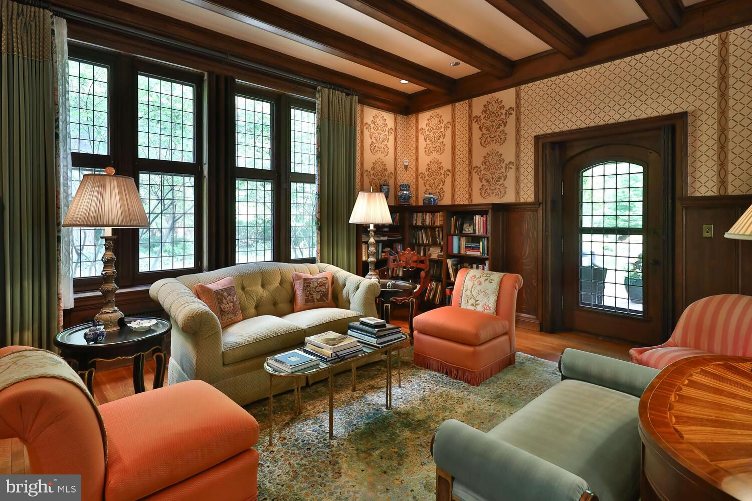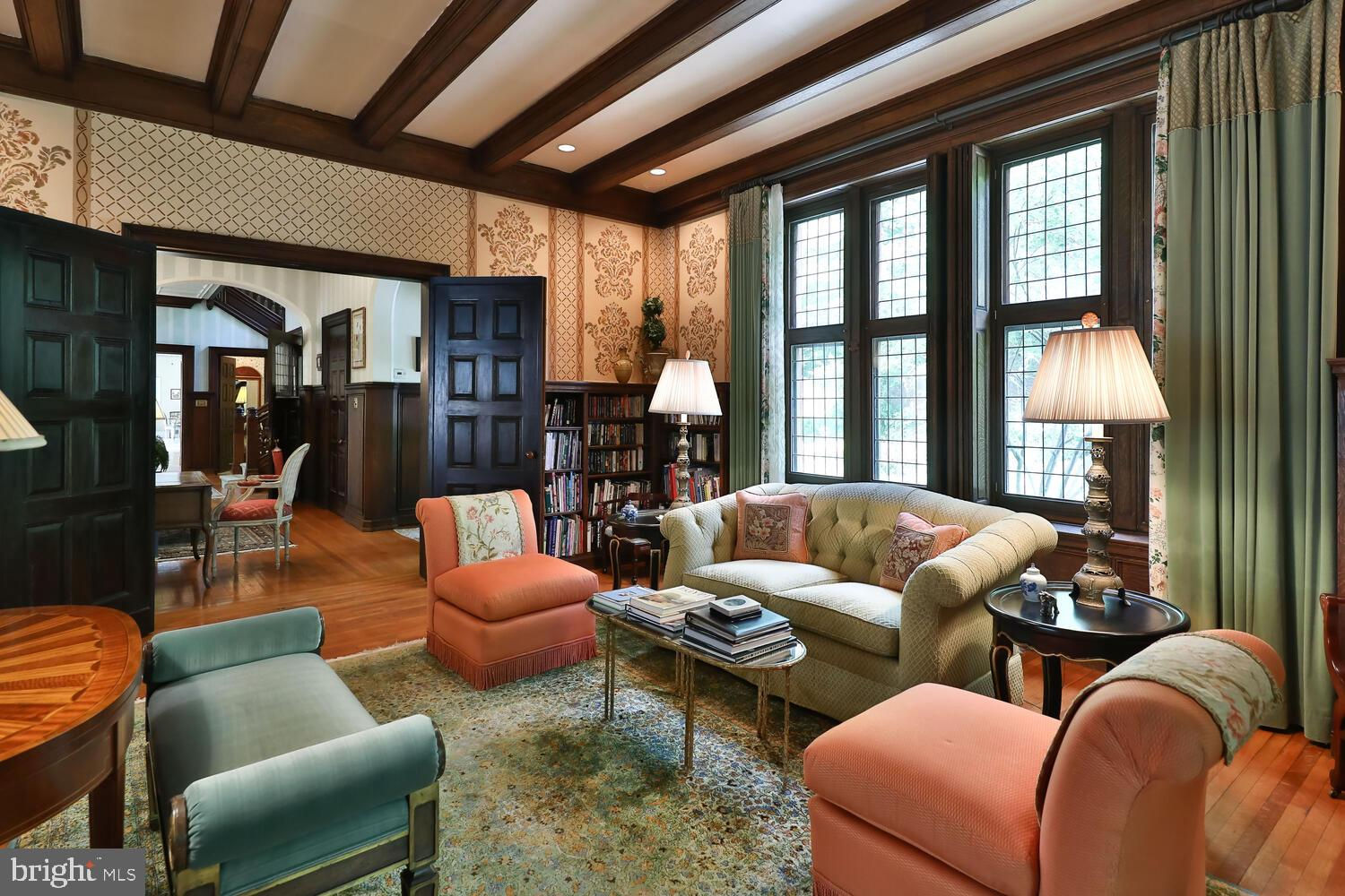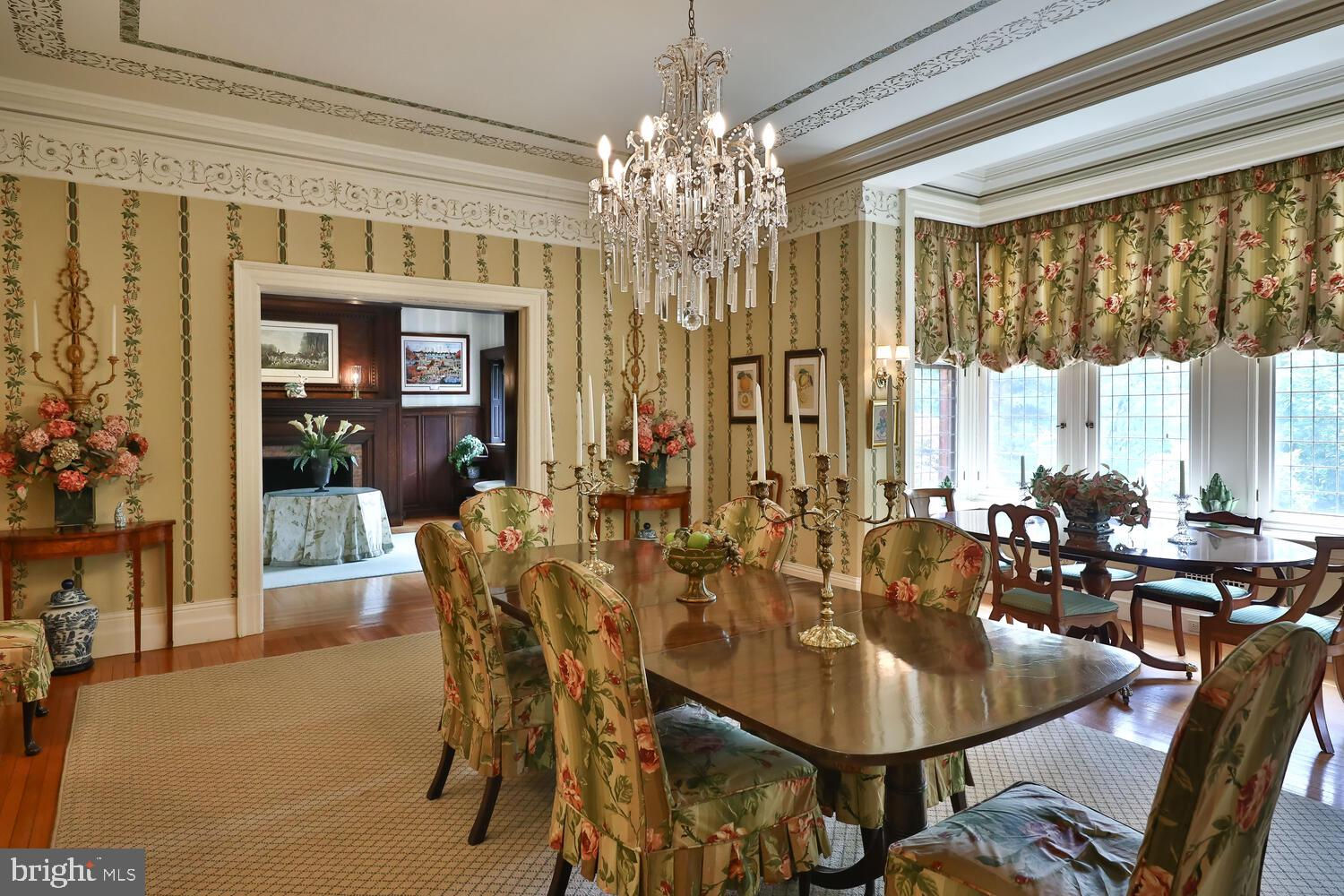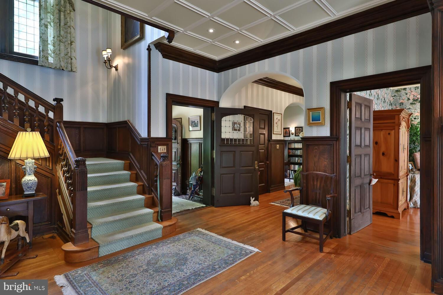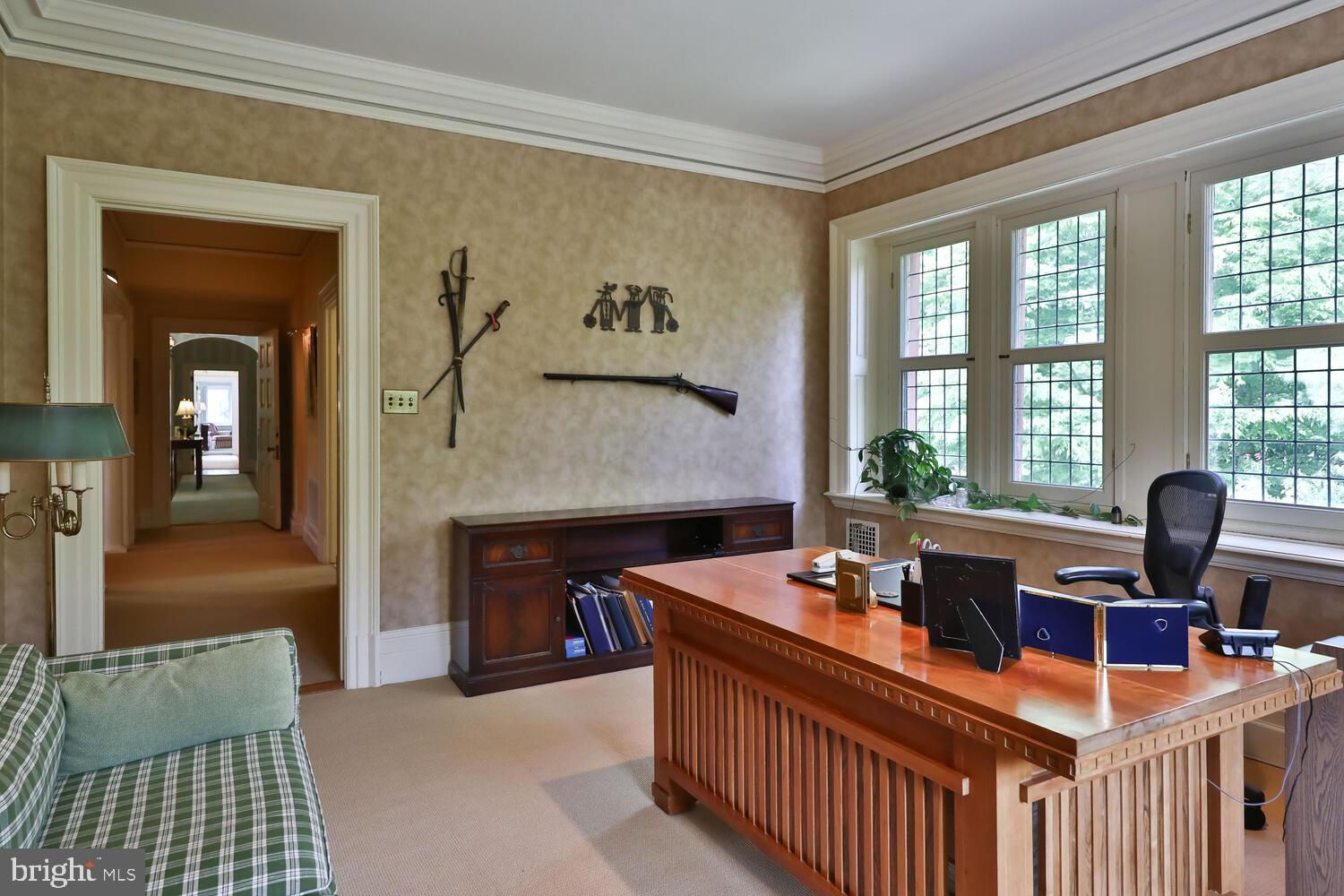 Every year, Americans scramble to the UK to walk the streets filled with history, and tour fine old houses. Why bother when you can own one of those fine homes, right here, in Philadelphia. Once in a generation opportunity to own one of the most significant properties in the city, "Binderton" was designed by Cope & Stewardson Architects (also designed for University of Pennsylvania and Princeton). The house was started in 1903 and finished in 1906. The renowned landscape architecture firm of the Olmsted Brothers was engaged to handle landscape, hardscape, and garden design. During their ownership, the present owners purchased 461 W Chestnut Hill Ave. (which had been subdivided from the original plot many years earlier) demolished the modest house that existed , and expanded the property and gardens, and redesigned the driveway. Situated on the quietest street in Chestnut Hill and surrounded by homes of equal caliber, Binderton stands out with its brilliant red brick construction and distinctive Jacobean Revival (or Jacobethan) style , with shaped parapets, and intricately designed chimneys. In most places, the house is designed only one room deep and was built linearly, near the property line at the high side. The brilliance of the Olmsted Brothers work is apparent in the brick walkway that rises elegantly from Towanda Street up a gradual hill with a low step every 20 feet or so. From the stone patio, enter the front door into the formal entry hall with main staircase at the back. The foyer is filled with natural light from two sides, a fireplace, a powder room, and a large coat room with window. Again from the entry hall, walk into, what was called in 1906, the "Ladies' Parlor", a sunny, elegant sitting room with big windows and a fireplace. The formal living room with two distinct seating areas, beamed ceiling , and wood burning fireplace can be accessed from the "ladies' parlor" or directly from a hallway. The exterior door off the living room leads to an open air loggia with tiled floor and finished ceiling. To the left of the front door, head to the formal dining room with fireplace, elegant crystal chandelier and room for a second dining table! The kitchen has everything you want. From the front hall, head through the butler's pantry with lighted cabinetry, porcelain sink , and dishwasher: a great spot to set up the bar on party nights. Further on you reach the supersized chef's kitchen with two sinks, three ovens, a six-burner range, banquette seating for conversation while prepping dinner, stools at the counter for breakfasts on a busy day, and a big table at the end of the house for casual dinners. Off the kitchen is a huge pantry area and laundry room. Beyond the kitchen end is a glassed in garden porch that will serve myriad functions that make daily living more convenient. Head up the carved and turned staircase and turn left at the top to reach the primary suite, that includes the bedroom with fireplace and door to second floor balcony, a cozy sitting room, great for reading or streaming late into the night, a beautiful, bright corner office/den, and a spacious bathroom with two sinks and walk-in shower. On the second floor to the right of the main stair are four additional bedrooms, two of which share a jack-and-jill bath ; and two others that share an additional hall bath. The third floor has three bedrooms, a full bath, and a large central room, perfect for play or privacy. The 1.6 acres that surround the house defy description. Mature trees, abundant perennial beds, lush lawns, and garden rooms; one prettier than the next. The main focus in the summer is the pool area. Exquisitely private with its walled garden, and elegant brick veranda, it is here where you can escape from the sun and the world. Built to span the ages, Binderton will pass to someone who loves grand old houses and understands stewardship.