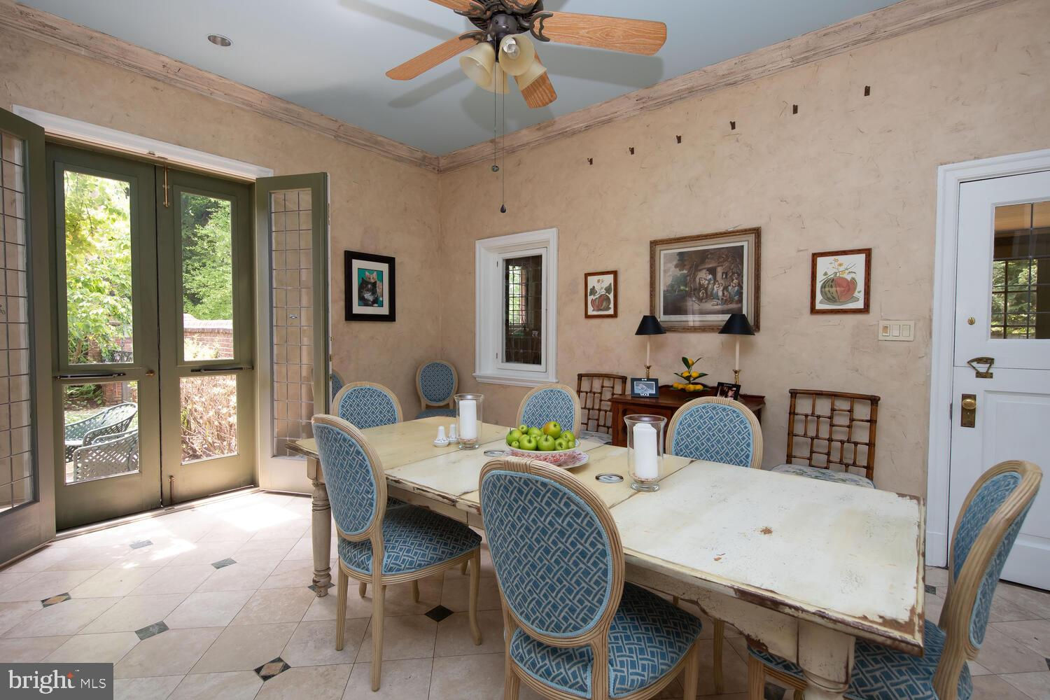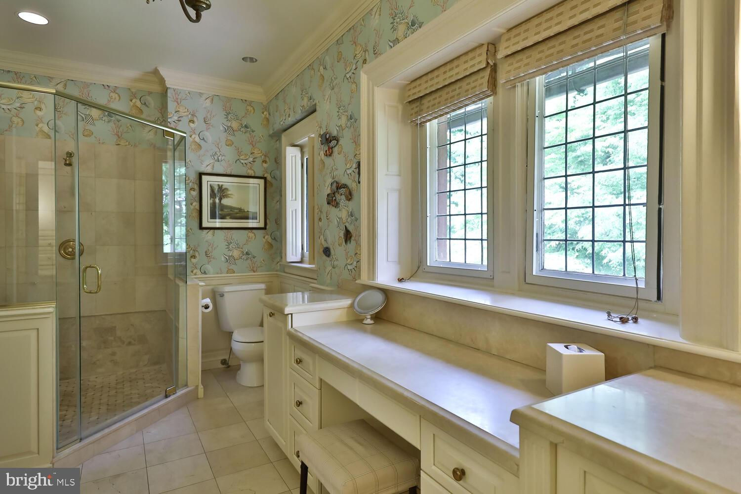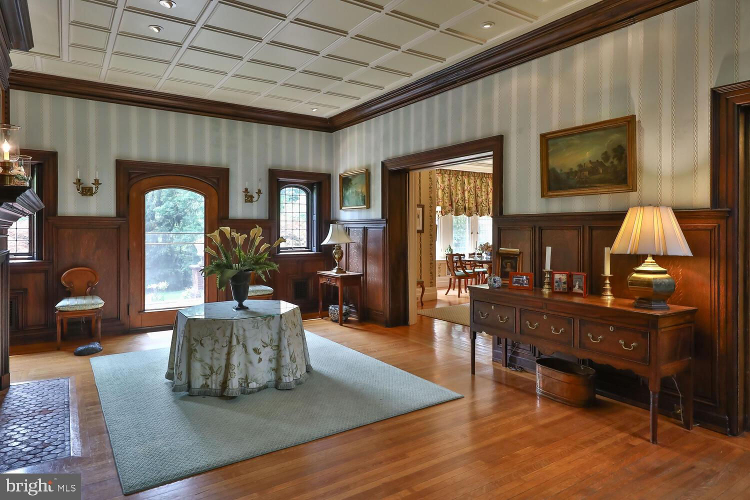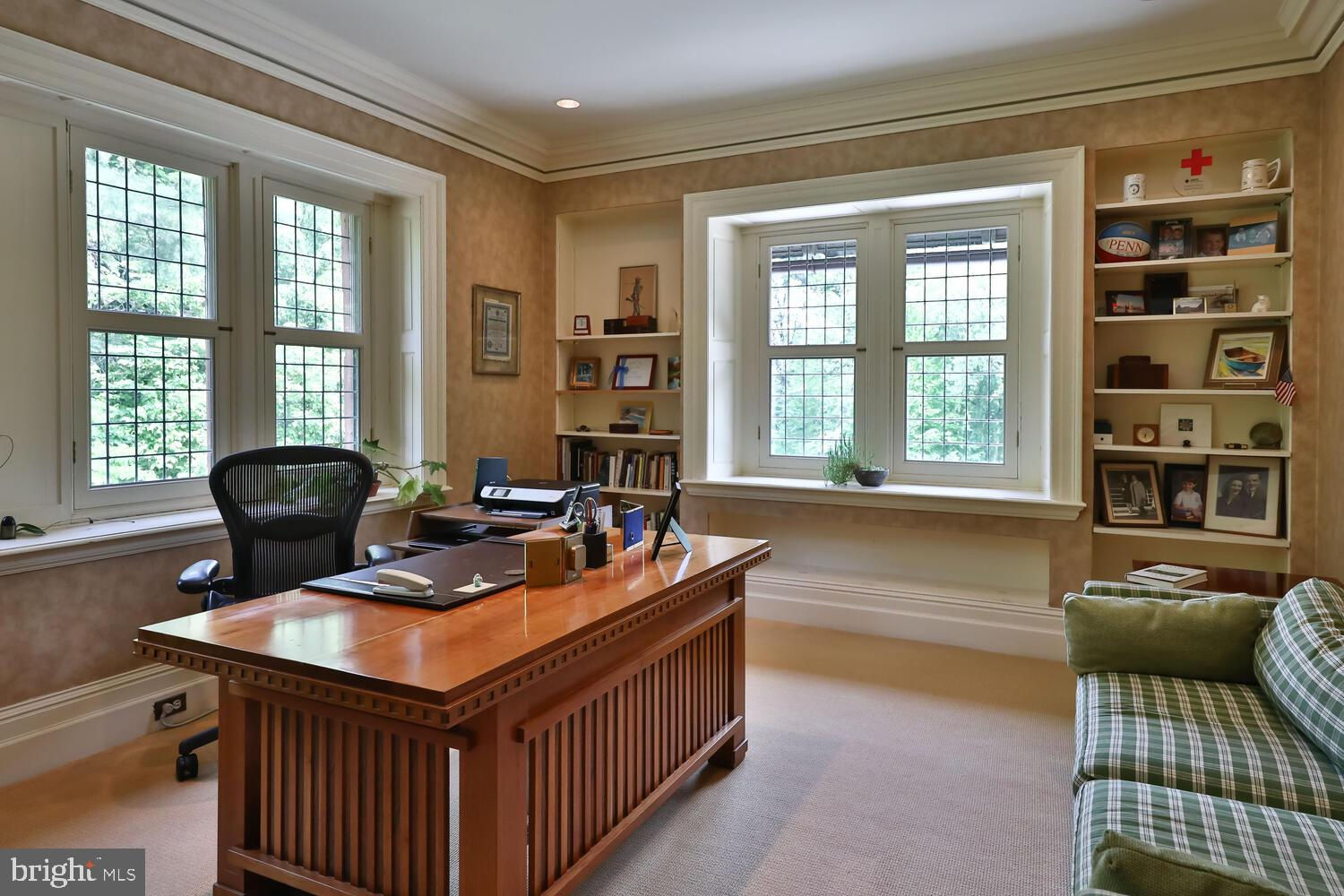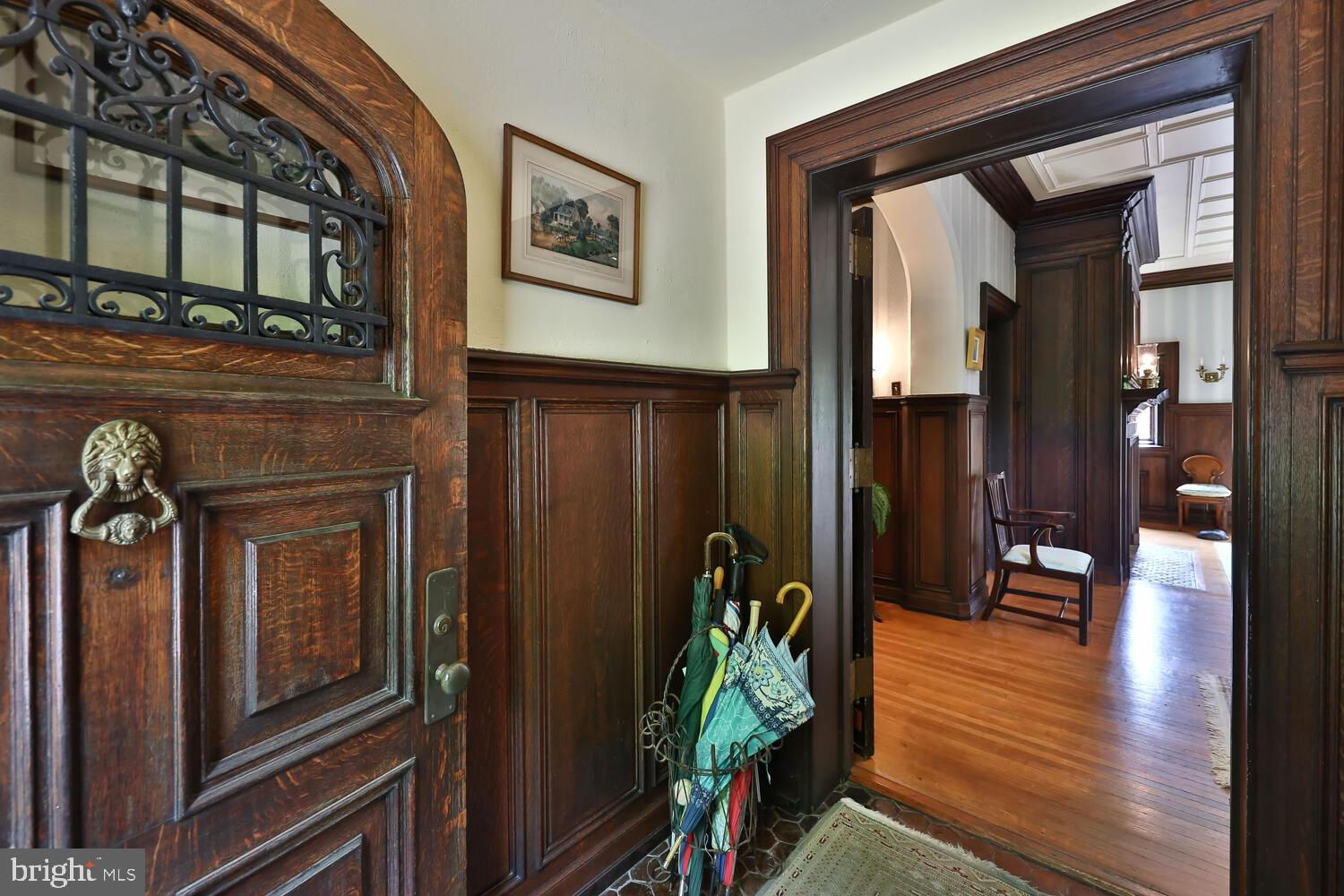 Every year, Americans scramble to the UK to walk the streets filled with history, and tour fine old houses. Why bother when you can own one of those fine homes, right here, in Philadelphia. Once in a generation opportunity to own one of the most significant properties in the city, "Binderton" was designed by Cope & Stewardson Architects (also designed for University of Pennsylvania and Princeton). The house was started in 1903 and finished in 1906. The renowned landscape architecture firm of the Olmsted Brothers was engaged to handle landscape, hardscape, and garden design. During their ownership, the present owners purchased 461 W Chestnut Hill Ave. (which had been subdivided from the original plot many years earlier) demolished the modest house that existed , and expanded the property and gardens, and redesigned the driveway. Situated on the quietest street in Chestnut Hill and surrounded by homes of equal caliber, Binderton stands out with its brilliant red brick construction and distinctive Jacobean Revival (or Jacobethan) style , with shaped parapets, and intricately designed chimneys. In most places, the house is designed only one room deep and was built linearly, near the property line at the high side. The brilliance of the Olmsted Brothers work is apparent in the brick walkway that rises elegantly from Towanda Street up a gradual hill with a low step every 20 feet or so. From the stone patio, enter the front door into the formal entry hall with main staircase at the back. The foyer is filled with natural light from two sides, a fireplace, a powder room, and a large coat room with window. Again from the entry hall, walk into, what was called in 1906, the "Ladies' Parlor", a sunny, elegant sitting room with big windows and a fireplace. The formal living room with two distinct seating areas, beamed ceiling , and wood burning fireplace can be accessed from the "ladies' parlor" or directly from a hallway. The exterior door off the living room leads to an open air loggia with tiled floor and finished ceiling. To the left of the front door, head to the formal dining room with fireplace, elegant crystal chandelier and room for a second dining table! The kitchen has everything you want. From the front hall, head through the butler's pantry with lighted cabinetry, porcelain sink , and dishwasher: a great spot to set up the bar on party nights. Further on you reach the supersized chef's kitchen with two sinks, three ovens, a six-burner range, banquette seating for conversation while prepping dinner, stools at the counter for breakfasts on a busy day, and a big table at the end of the house for casual dinners. Off the kitchen is a huge pantry area and laundry room. Beyond the kitchen end is a glassed in garden porch that will serve myriad functions that make daily living more convenient. Head up the carved and turned staircase and turn left at the top to reach the primary suite, that includes the bedroom with fireplace and door to second floor balcony, a cozy sitting room, great for reading or streaming late into the night, a beautiful, bright corner office/den, and a spacious bathroom with two sinks and walk-in shower. On the second floor to the right of the main stair are four additional bedrooms, two of which share a jack-and-jill bath ; and two others that share an additional hall bath. The third floor has three bedrooms, a full bath, and a large central room, perfect for play or privacy. The 1.6 acres that surround the house defy description. Mature trees, abundant perennial beds, lush lawns, and garden rooms; one prettier than the next. The main focus in the summer is the pool area. Exquisitely private with its walled garden, and elegant brick veranda, it is here where you can escape from the sun and the world. Built to span the ages, Binderton will pass to someone who loves grand old houses and understands stewardship.