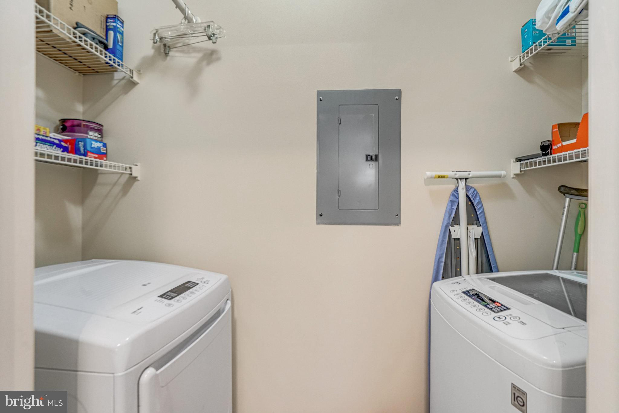 *MOVE IN READY* Rarely available TOP floor unit in the highly sought after Palazzo at Park Center Condominium Community. This spacious 2 bedroom 2 bath unit is approximately 1,100 square feet of a light filled open floor plan with vaulted ceilings and hardwood floors in the living room and dining area. The kitchen is warm and inviting with maple cabinets, granite countertops, built in microwave, dual stainless steel undermount sink, 12x12 ceramic tile and has been recently upgraded with BRAND NEW stainless steel appliances. There is an in unit walk in laundry closet with full size washer and dryer that includes additional overhead storage, both bedrooms have large walk in closets and ceilings fans, the bathrooms are elegantly adorned with granite countertops and 12x12 ceramic tile flooring. The Private balcony overlooks a quiet and beautifully landscaped courtyard. Unit 3414 is assigned 2 personal parking spaces in an enclosed garage. There are visitor spaces in the garage as well as 1 hour parking in front of clubhouse for shorter visits. Top tier amenities include an Out door pool, 24 hour workout facility, Club House with meeting/party room. Can't beat location right off of 395 at King Street in the heart of Alexandria! Easy access to the Pentagon, Potomac Yard, Reagan National Airport, DASH, Metro, Capital Bike Share, Historic parks, walking trails, shopping, restaurants and so much more! Schedule your showing TODAY and bring your best offer! This TOP FLOOR Unit will not last long!