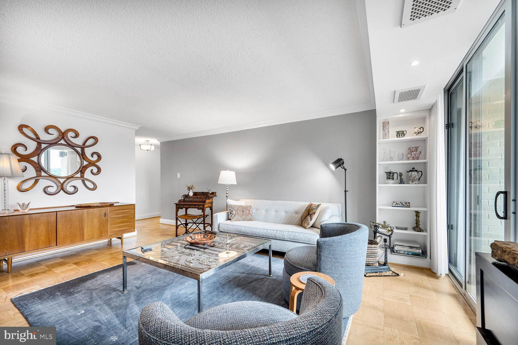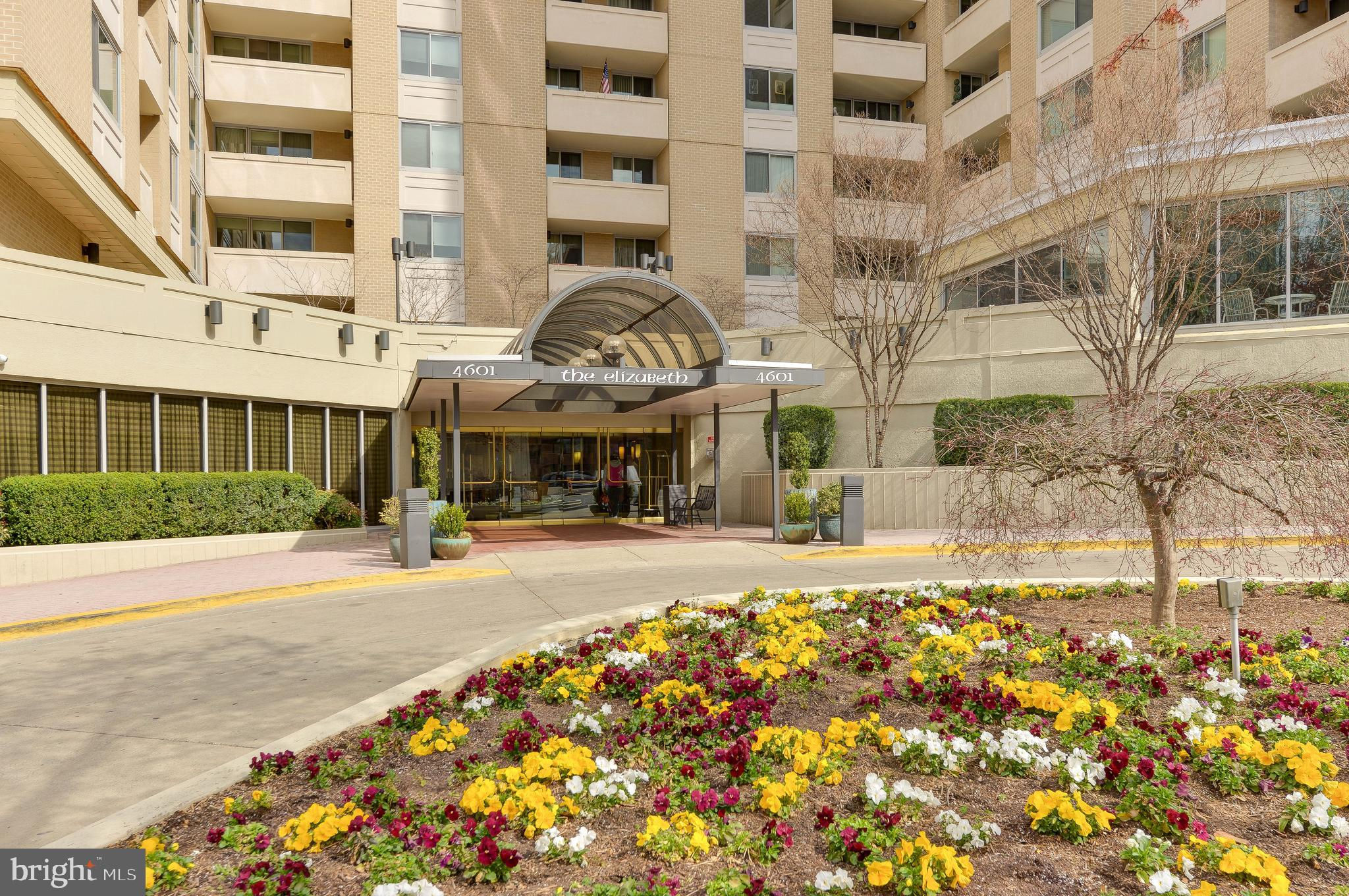 Welcome to 4601 N Park Ave, unit 1118 – a beautifully renovated corner unit offering sweeping treetop views and refined modern living. This spacious 2-bedroom, 2-bath condo is filled with natural light, upscale finishes and attractive built-ins throughout. The open-concept kitchen features marble countertops, a farmhouse sink, and seamlessly integrated appliances—including a hidden washer/dryer and dishwasher—for a sleek, uncluttered look. The combined living and dining room flows gracefully from the kitchen to your private balcony and provides lovely space to welcome guests, enjoy private time for morning coffee or winding down above the trees. The serene primary suite includes a spa-like bath with a generous walk-in shower and ample storage. The large, second bedroom, with a full bath directly across the hall, can be comfortably used as an office, project room, den or second bedroom. Located in The Elizabeth, a full-service building with top-tier amenities: 24-hour concierge, indoor pool, fitness center, indoor and outdoor party space, a large courtyard and more. All utilities are included in the condo fee—electric, gas, heat, A/C, water, sewer, indoor pool, fitness center, and common area maintenance. Pet-friendly with a deeded, tandem garage space accommodating two vehicles and additional free guest parking. Walk or take the community shuttle bus to nearby shops, restaurants, and Friendship Heights Metro. Urban living with comfort, convenience, and a view.