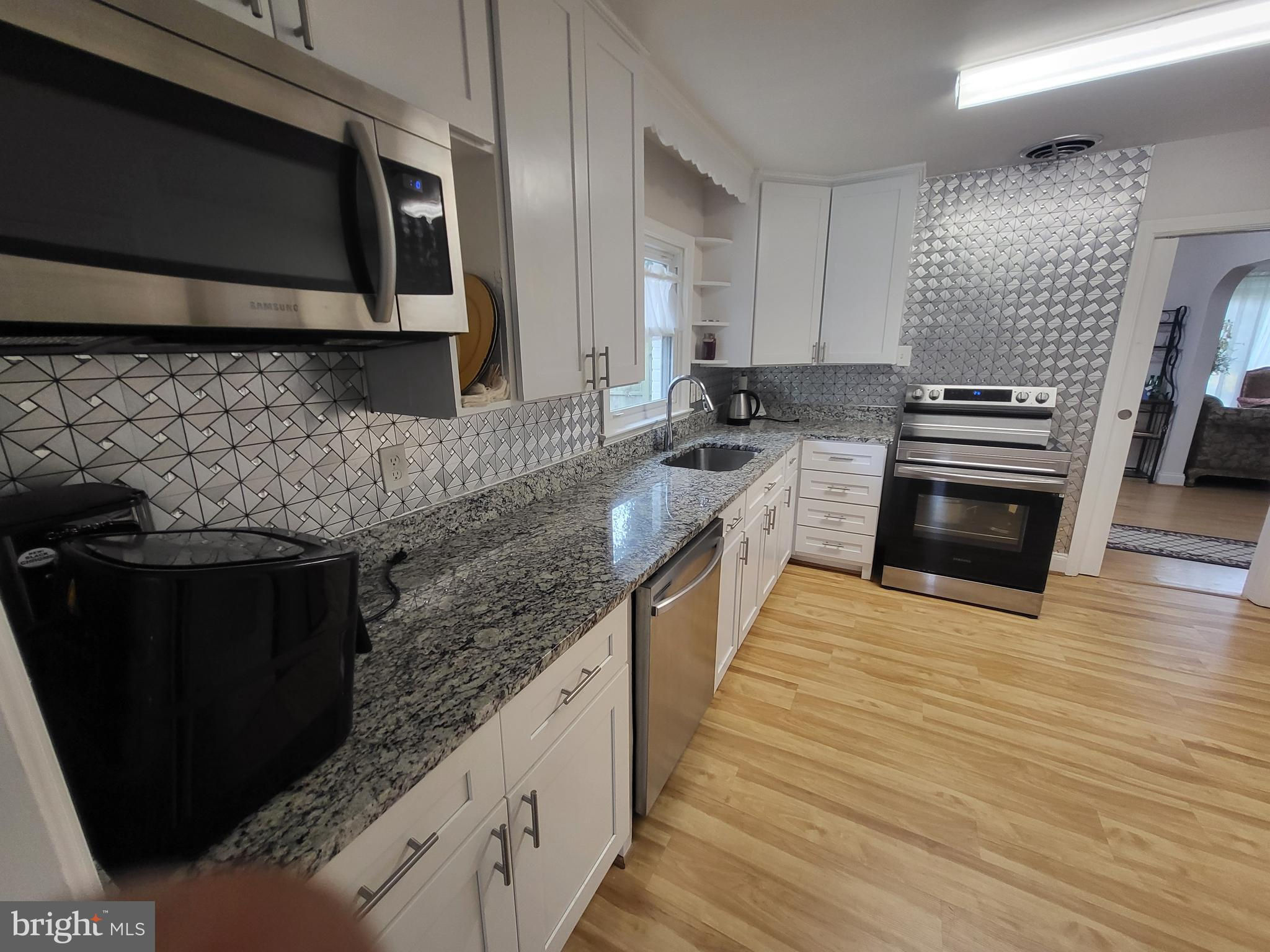 Showing: Saturday, March 16 from 2:00pm - 4:00pm Showing: Sunday, March 17 from 2:00pm - 4:00pm Half an acre lot on a quiet cul-de-sac in the heart of Alexandria, Fairfax County! Centrally and strategically located, this home combines privacy and convenience! This is an expanded brick single-family home, rambler style, with an attached large one-car garage, a long wide driveway for about 5 cars and plenty of parking in front of the house and cul-de-sac. A huge front and back yard, fully fenced in, and NO HOA! NEW roof, exterior/interior paint, kitchen cabinets and backsplash, stainless steel appliances, granite countertop, and new windows and water heater (only 2 years old). This single-family home has 4 generous size bedrooms and 2 bathrooms. Hardwood on the main level has been recently restored! Fully finished basement with tile flooring, a second wood-burning fireplace, a bathroom, an extra room with windows, and access to the garage! Almost 200 sqft of a patio and 2 storage sheds. Fairfax County schools, minutes from Landmark-Van Dorn new redevelopment and across from the main shopping and major transportation highways. ·.52 acres, 2500 sqft, 2 levels ·1 car garage ·4 bedrooms ·2 bathrooms ·new roof (2021) ·new kitchen cabinets (2021) ·new granite countertop ·newer windows ·hardwood flooring ·newer water heater ·newly painted ·2 fireplaces ·2 sheds ·No HOA & great school district