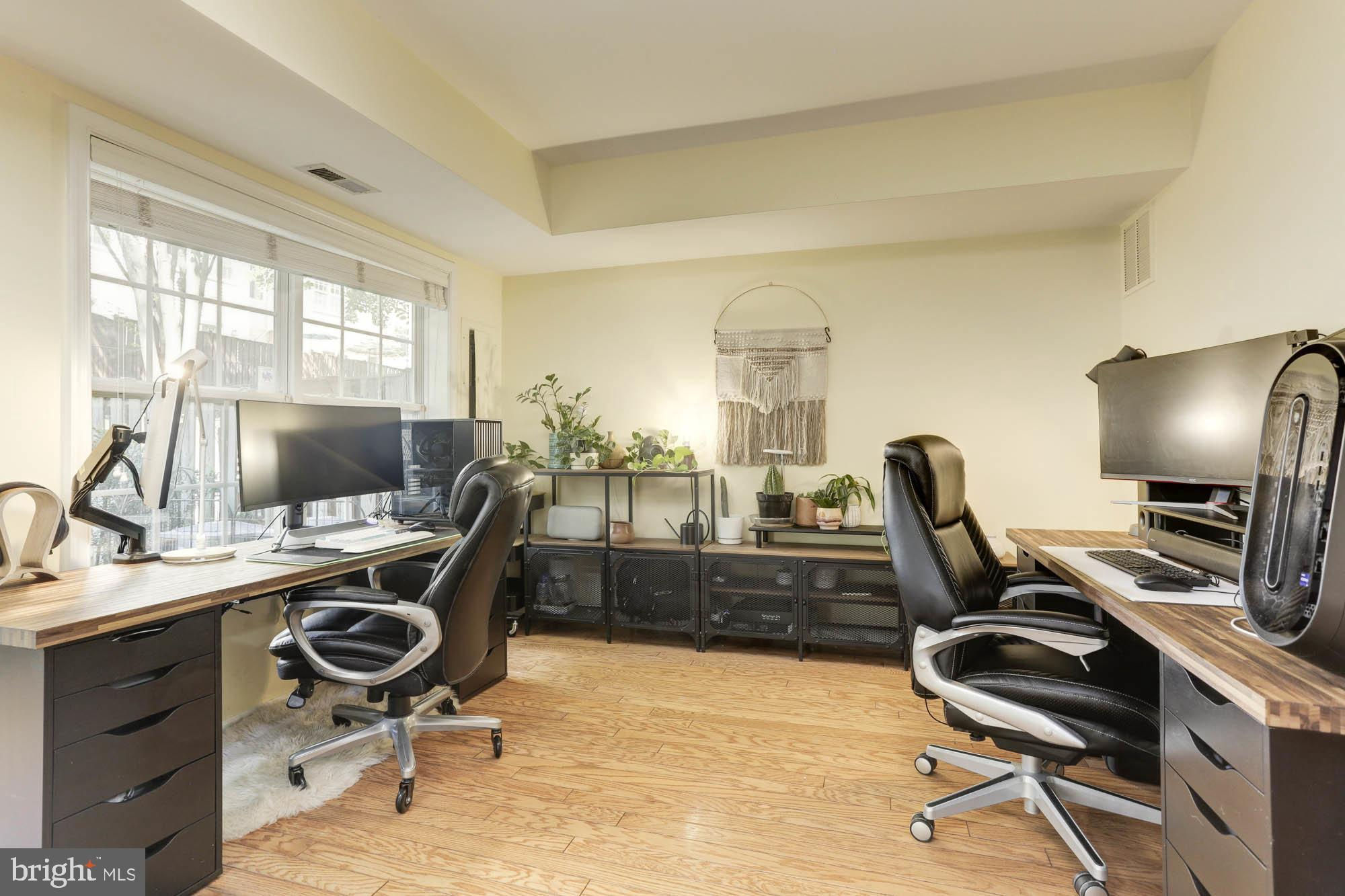 Move right into your beautiful brick-front 3 BR 3.5 BA luxury townhome with a 2 car garage in the Stonegate Historical Awarded Townhouse Community near the Pentagon/Shirlington/Amazon HQ2/Old Town Alexandria/DC. This meticulously maintained gem blends timeless elegance & modern design with high ceilings, an array of oversized windows for natural light, a contemporary open floor plan, windowed bump outs on all 3 levels for additional space, gleaming hardwood floors on all 3 floors & stairs. Roof was newly replaced in 2020, Newly replaced stainless steel refrigerator (2023) & dishwasher (2022)! Retreat to your private fenced backyard outdoor oasis perfect for hosting a barbeque or enjoying a morning cup of coffee. Your entire backside view is of a park-like common area with a walking path & beautiful mature trees/landscaping. Entertain in your open floor plan with a fabulous flow as your: Your spacious living room ideal for everyday living OPENS to -> your elegant formal dining room that seamlessly FLOWS into -> your gourmet kitchen with upgraded granite counters, breakfast bar island and eat-in space, stainless steel appliances (newly replaced refrigerator 2023, newly replaced dishwasher 2022), luxurious 42" cabinets that OPENS to -> your family room with spacious windowed bump outs for additional living or dining space, gas fireplace, & infused with natural light from 3 walls of windows galore. Relax in your oversized primary suite with an additional sitting area, 2 walls of windows for natural light, 2 generous walk-in closets, vaulted extra high ceilings that adds an airy grandeur, ceiling fan, & your ensuite bath with double vanities, water closet, separate shower, separate tub. The upper level features 3 generously sized bedrooms & 2 full baths. Retreat to your light-infused walk-out level lower level with natural light pouring in via 3 walls of oversized windows & sliding door, ideal for an in-home gym, secondary office space, or entertainment room. The lower level also features an additional full bath with shower. The property features an oversized 2 car garage & washer/dryer. Stonegate features many amenities, including a community pool, playground/tot lot, walking paths, Capital Bikeshare accessible, tennis courts, Metro & Dash bus accessible with express service to the Pentagon and Metro, & a short stroll to Fort Ward Park. Close to three shopping centers, gyms, restaurants, entertainment, library. Bike/Walk to W&OD Trail. Near Pentagon, Shirlington, Old Town Alexandria, Amazon HQ2, Downtown DC, and much more!