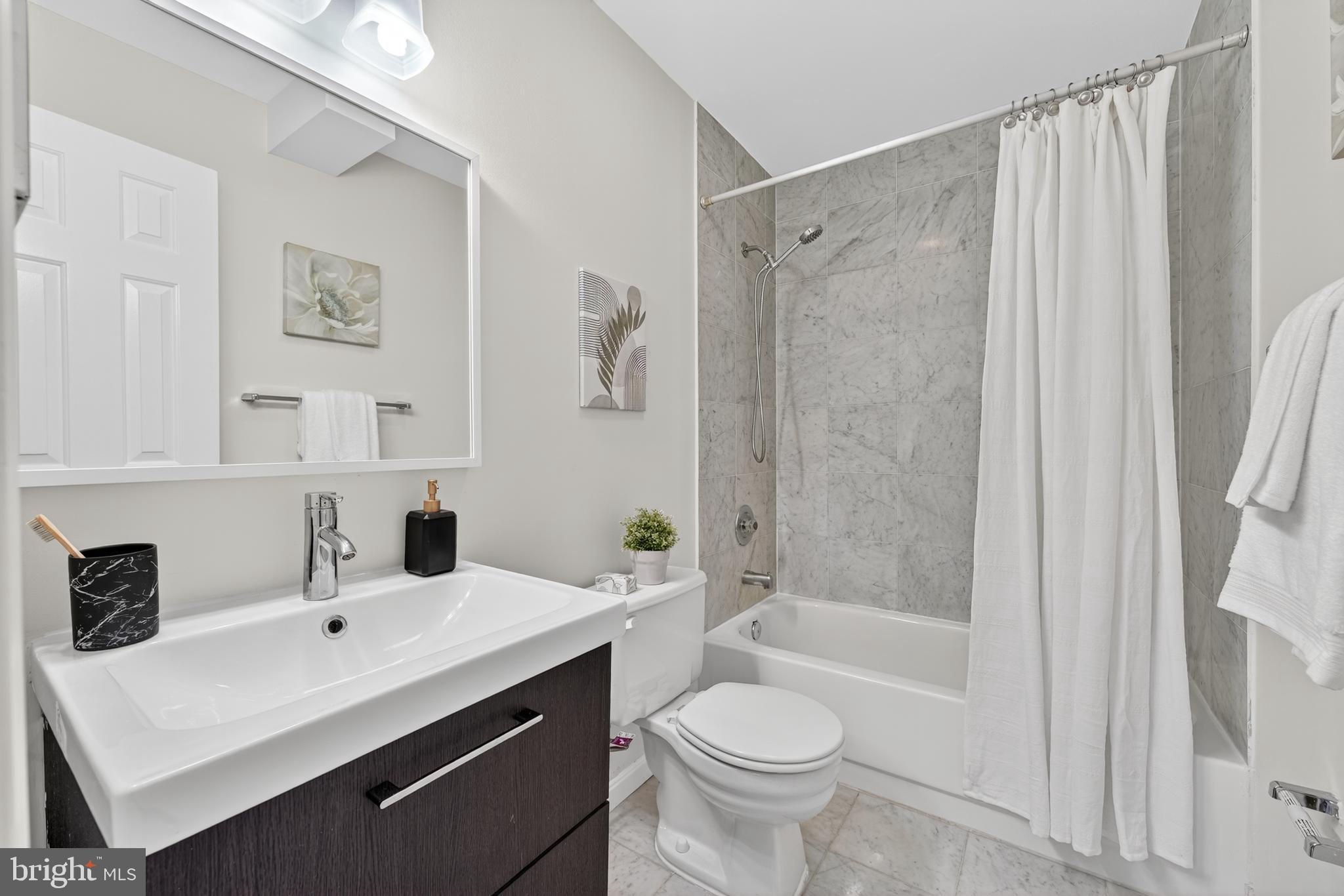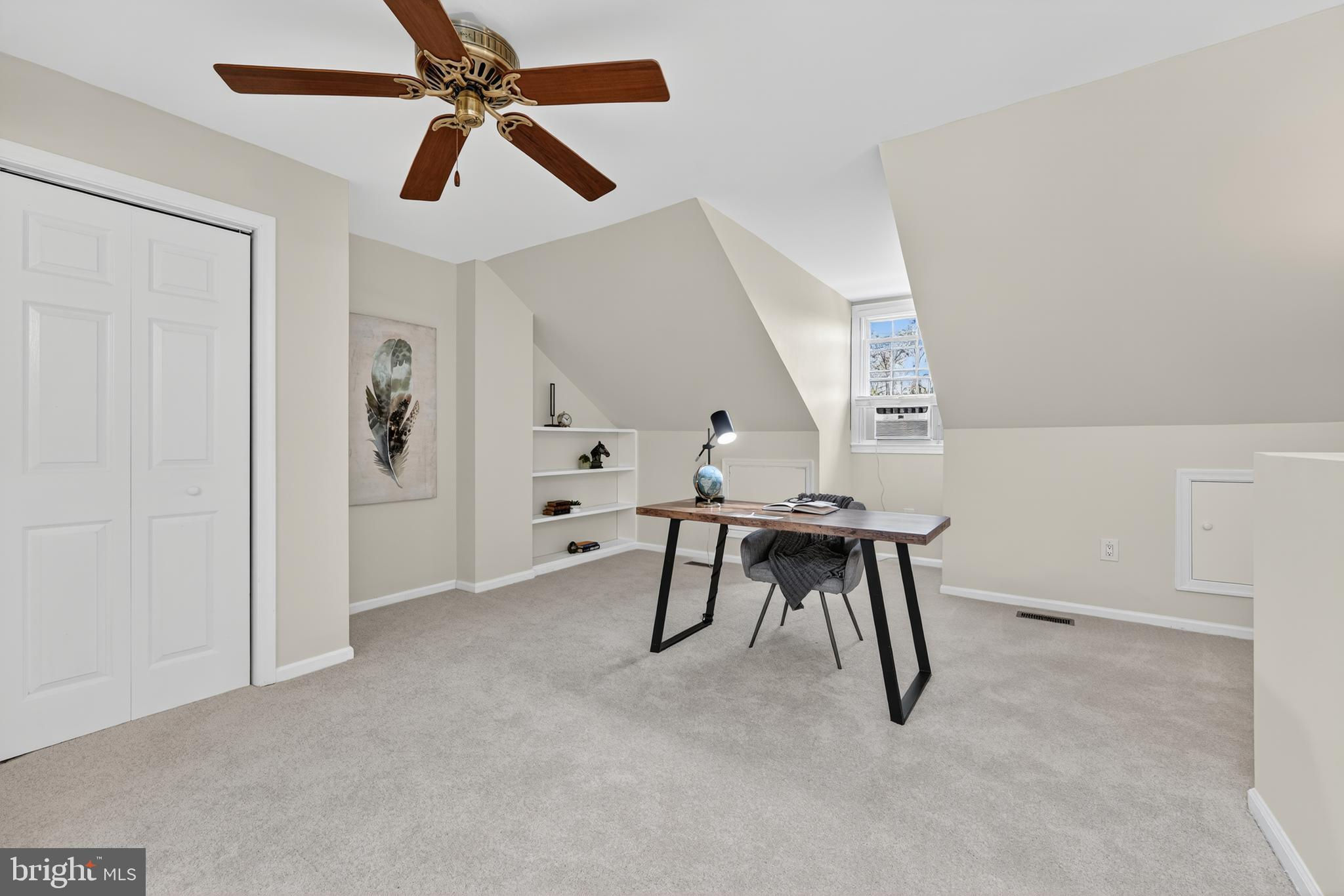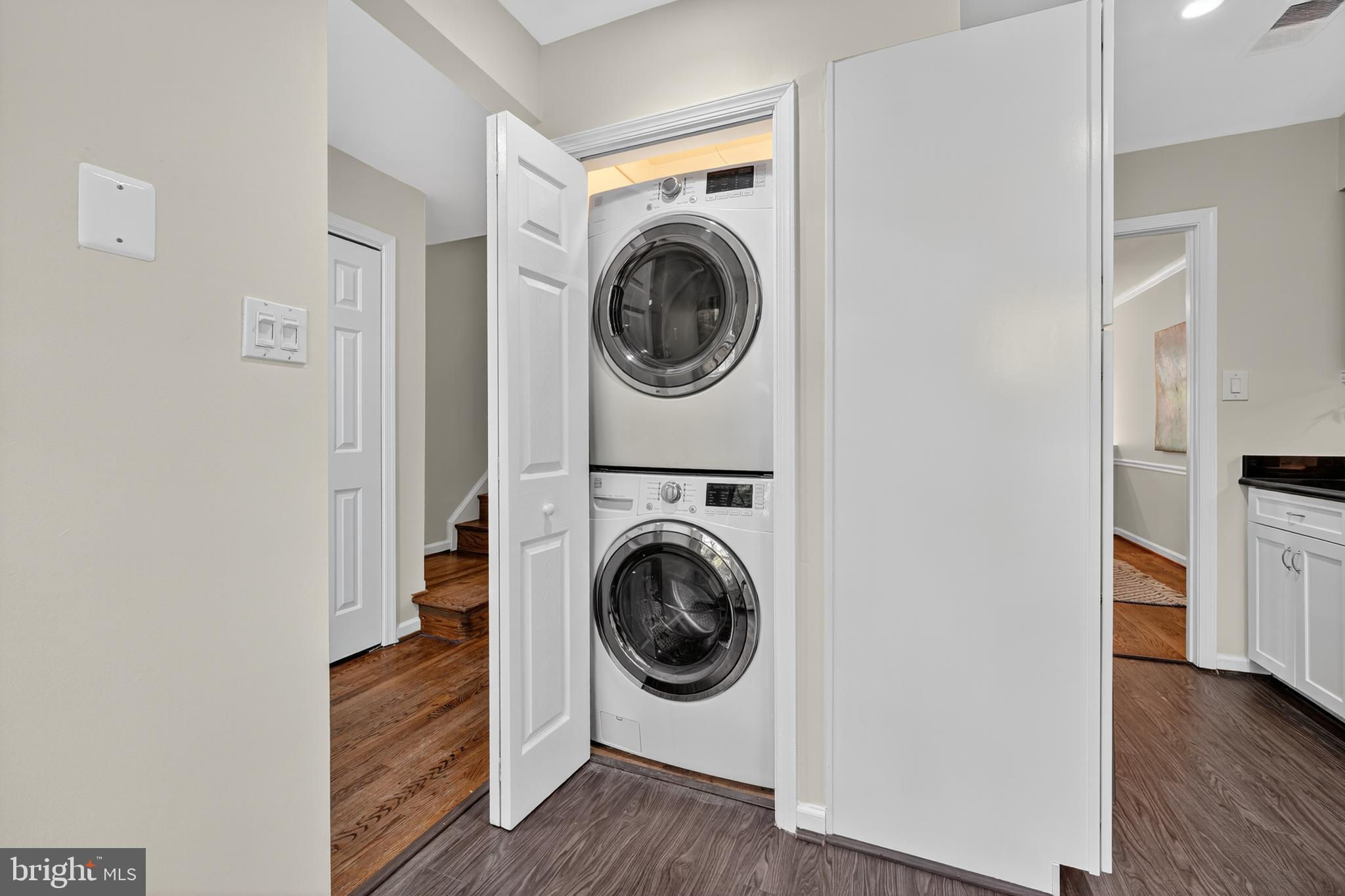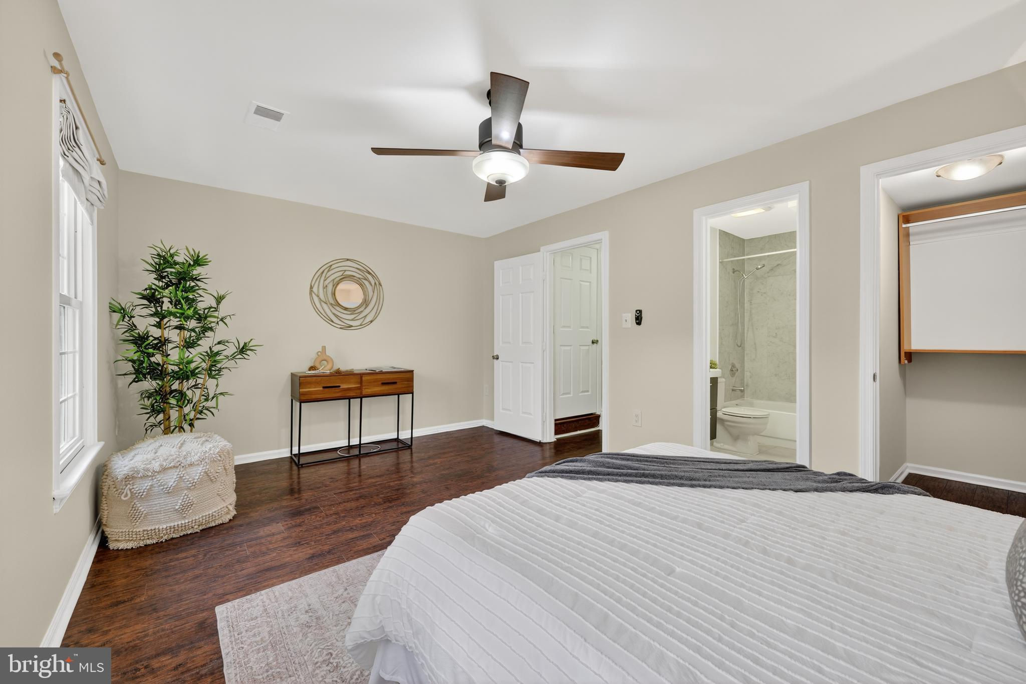 Nestled in the charming Beverly Hills Manor community, this delightful 3-bedroom, 3.5-bath townhome offers a thoughtfully designed and beautifully updated living space. Step inside to a light-filled main level featuring gleaming hardwood floors and recessed lighting. The kitchen is a true culinary delight with white cabinetry, stainless steel appliances, including a KitchenAid dishwasher and Samsung French door fridge (2022), granite countertops, and a cozy breakfast area framed by large windows overlooking the peaceful front common green space. The warm and inviting living room, paired with an adjacent formal dining area accented by an updated light fixture, serves as the heart of the home. A beautiful wood-burning fireplace, floating shelves, and French doors leading to the rear patio create a seamless blend of indoor comfort and outdoor enjoyment. A stylish powder room and a laundry closet with stacked washer and dryer complete this level. Upstairs, you’ll find two spacious bedroom suites, each featuring ceiling fans, customized walk-in closets, and private en-suite baths with tiled tub/shower combinations and contemporary vanities. The top level offers versatility as a home office or third bedroom, complete with plush carpeting, two skylights that can open for fresh air during the cooler seasons, ample closet space, and an en-suite bath with custom tile and a tub/shower combo. Step outside to your private patio, a perfect spot for morning coffee or evening gatherings under the stars. The newly fenced (2020) low-maintenance backyard with stone patio and retaining wall provides a peaceful outdoor oasis. Thoughtful updates include HVAC (2023), water heater (2023), roof (2018), Ecobee thermostat (2025), and crawlspace insulation (2020). Parking is a breeze with an assigned off-street space, plus 3 additional parking passes that convey. Ideally located within a mile of the legendary Birchmere and Del Ray’s charming shops and restaurants, and just minutes to Old Town Alexandria, multiple Metro stations, and the Four Mile Run Trail connecting directly to the W&OD Trail—this home truly has it all. Don’t miss it!