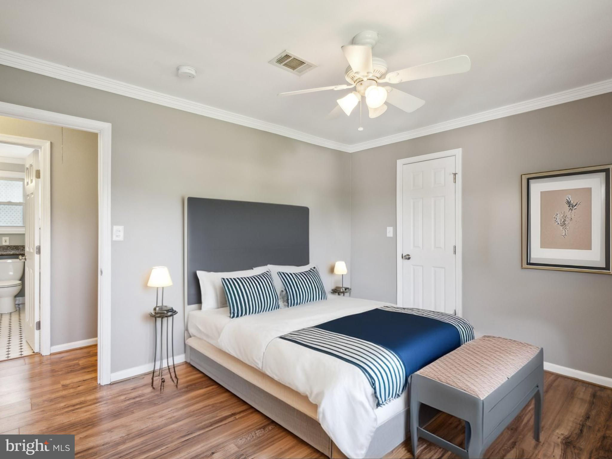 Welcome to 4815 Upland Dr, Alexandria, VA 22310. This single-level home, built in 1957, features a two-space driveway at the front. Upon entering through the front door, you'll find a spacious living room on the left, complete with a fireplace. Adjacent to the living room is the kitchen, equipped with a built-in microwave, stove, oven, refrigerator with an ice maker, sink with a disposer, and ample cabinet space. The kitchen also includes a wine shelf, a hidden washer and dryer, and a sliding door that leads to the back patio, backyard, and pool. Next to the kitchen is a versatile room that can serve as an office space/dining area. The home offers three bedrooms and two bathrooms, including a master bedroom with a bathroom featuring a separate shower, soaking tub, and dual sinks. The master bedroom also includes a walk-in closet and a sliding door that opens to the front yard. The property is surrounded by a private fence, with a garden, pool, shed, and storage areas.