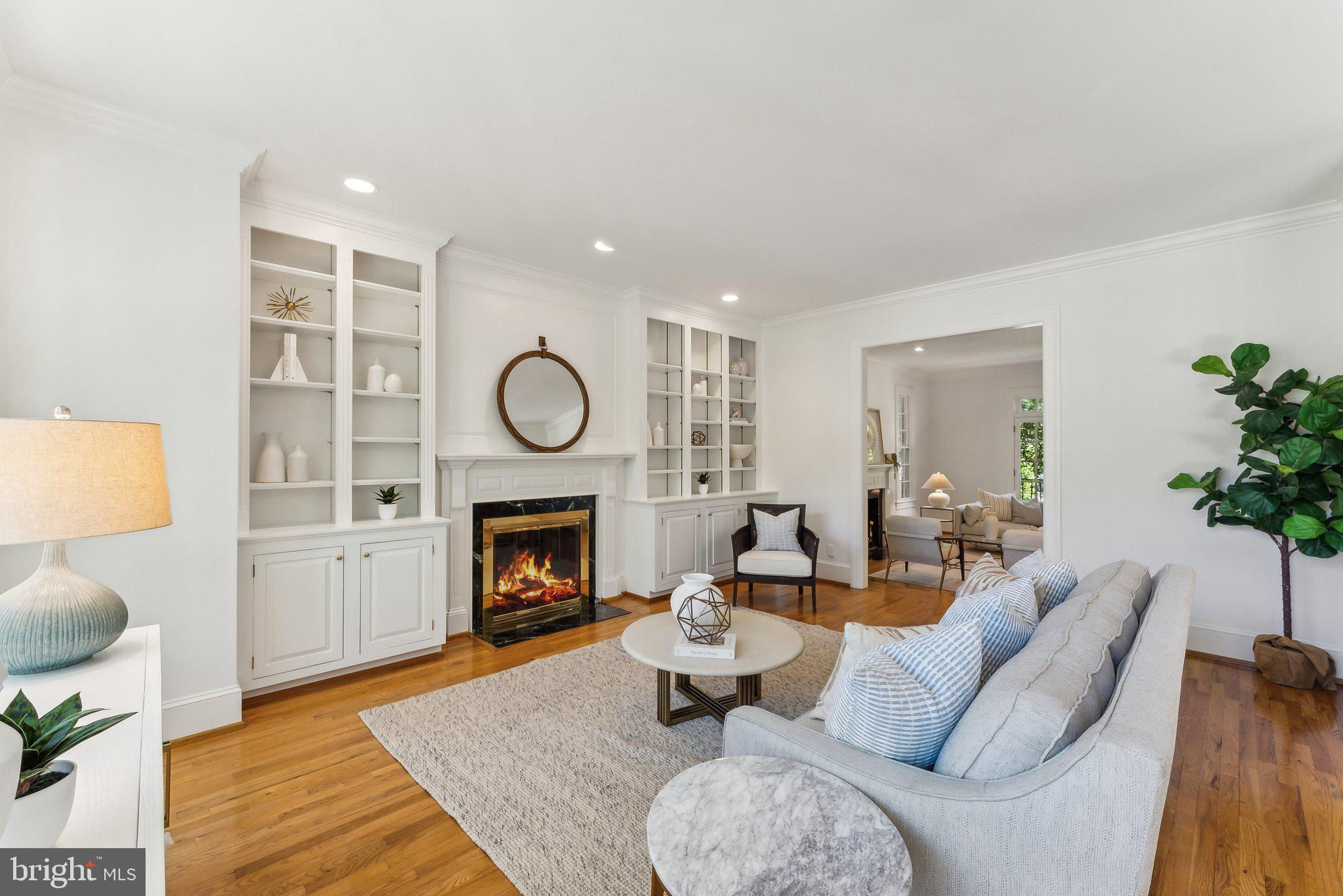 NEW PRICE - Reduced $100K. Tucked away in the distinguished enclave of Battery Kemble Place, once part of the estate of former New York Governor and U.S. Vice President Nelson Rockefeller, this elegant home blends classic style with modern comfort. A dramatic foyer with lofty ceilings sets the stage upon entry, offering a grand welcome and effortless flow into the home’s many inviting spaces. The formal living room features high ceilings, a wood-burning fireplace, and a Juliet balcony. Across the hall, the formal dining room mirrors these details and connects seamlessly to the butler’s pantry and well-appointed chef’s kitchen. Outfitted with classic white cabinetry, granite countertops, and an island with seating, the kitchen opens to a bright breakfast area and an expansive family room with built-in cabinetry and a gas fireplace. From here, step onto the generous two-level deck, complete with pergola and mechanized awning, surrounded by mature trees that create a serene and private outdoor retreat. Upstairs, the sun-filled primary suite offers a peaceful escape, with dual walk-in closets and a luxurious en-suite bath featuring dual vanities, a soaking tub, walk-in shower, and private water closet. Three additional bedrooms provide ample comfort, one with an en-suite bath, and two sharing a spacious bath. The finished lower level offers versatility with a private guest suite and full bath, laundry area, and a spacious recreation room with French doors that open to a flagstone patio. This level also provides access to the attached two-car garage. The home’s refined character is matched by the charm and privacy of Battery Kemble Place, a community known for its tranquility, elegance, and understated prestige.
