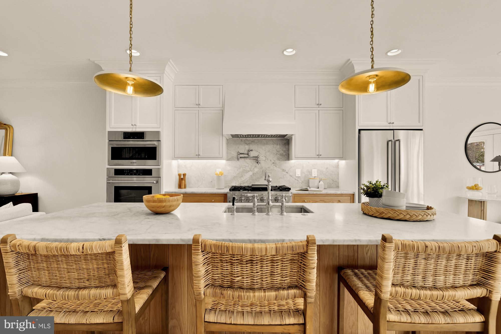 Welcome to 4830 8th St NW, an Urban Restoration masterpiece, situated on a leafy, tree-lined street with sidewalks in vibrant Columbia Heights! This LARGE home boasts 4 bedroom, 3.5 bathroom and approximately 2,550 SF on 3 fully-finished levels and features only the finest materials and custom everything, plus incredible curb appeal! As you approach the home, you'll notice the beautiful stone wall, with steps leading the welcoming front porch, perfect for sitting and enjoying a refreshing drink! As you step inside, you'll notice the open floor plan, perfect for entertaining, the stunning white oak hardwood floors, the tall ceilings, and the abundant natural light that filters through the new Windows and LowE Therma-Tru doors. The gourmet kitchen features custom inset cabinets, marble countertops, large kitchen island wrapped in white oak, and polished nickel fixtures. High-end professional appliances include a dual fuel range, a wall oven, and 2 built-in microwaves! Just beyond the kitchen is the dining area featuring a dry bar with wine fridge and extra storage, and direct access to the large deck, providing a perfect flow for entertaining! The deck overlooks a grassy area and a private, secure 2-car parking pad with garage door! Finishing off the main level is a convenient powder room, perfect for guests! Upstairs, the large primary suite features TALL ceilings, a HUGE walk-in closet and a spa-like en-suite bath featuring a frameless glass shower door and a double vanity. There are 2 additional bedrooms upstairs, each of good size and with ample storage, and a full-size W/D finish off the upper level. The fully finished English basement with front and rear entrances features a bedroom, full bath plus W/D hook-up! GREAT LOCATION! Situated in Petworth, you're two blocks to Sherman Circle, and just a bit further from Rock Creek Park (including the Carter Barron Soccer Fields and Fitzgerald Tennis Center). You're just moments to the shops and eateries along Georgia Ave NW, and you're just a bit further to Columbia Heights, Adams Morgan, and Downtown DC! EZ Commute with the bus stop about 3 blocks away and near major commuter routes, too! Don't miss your opportunity to own this truly stunning home in a most enviable location. Welcome Home!