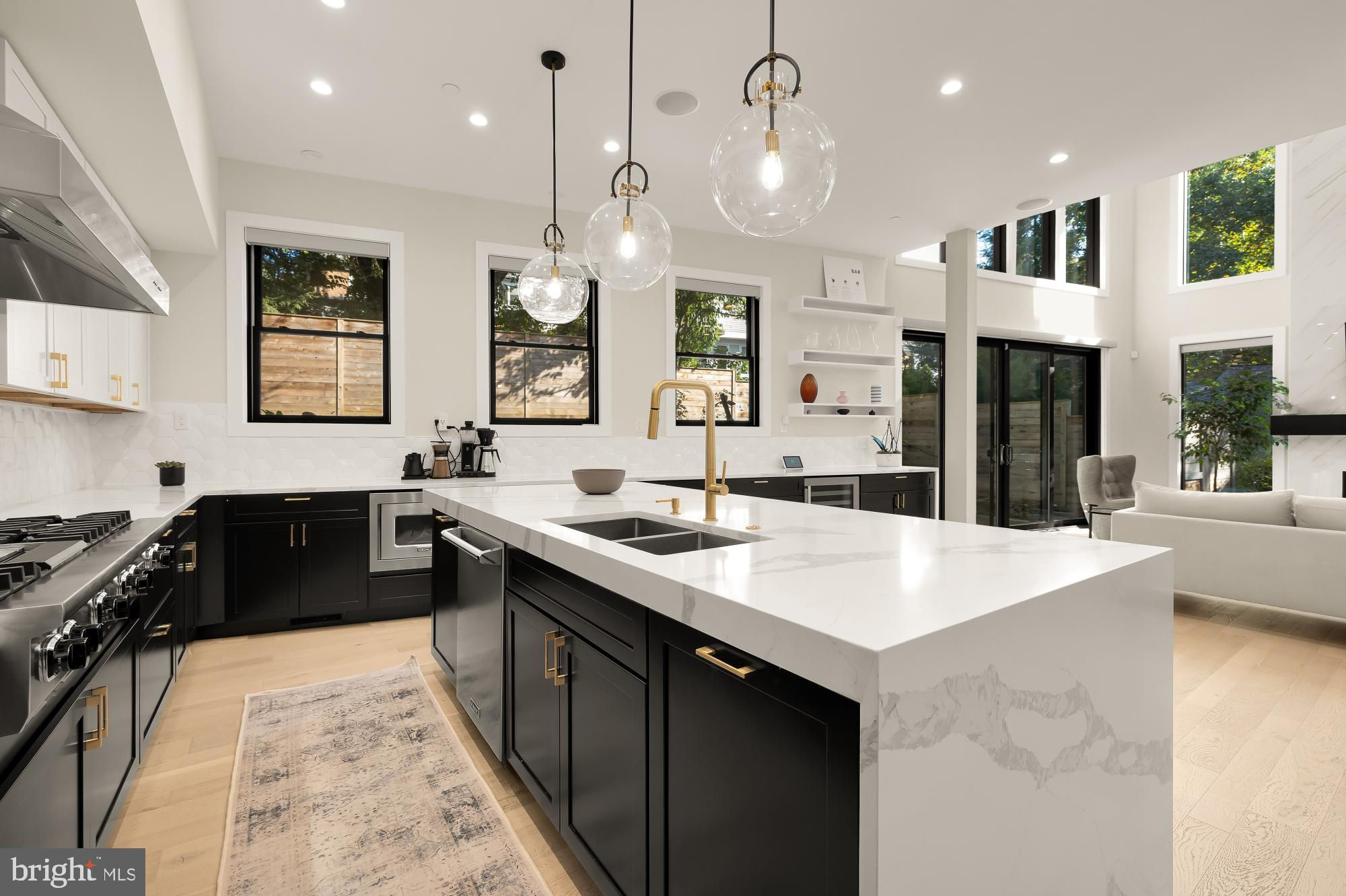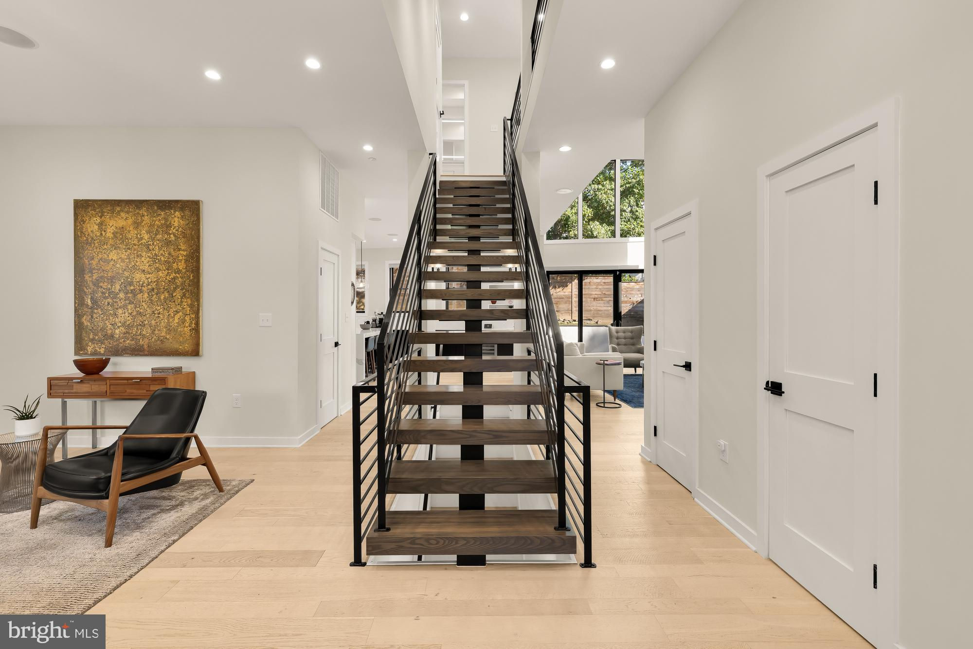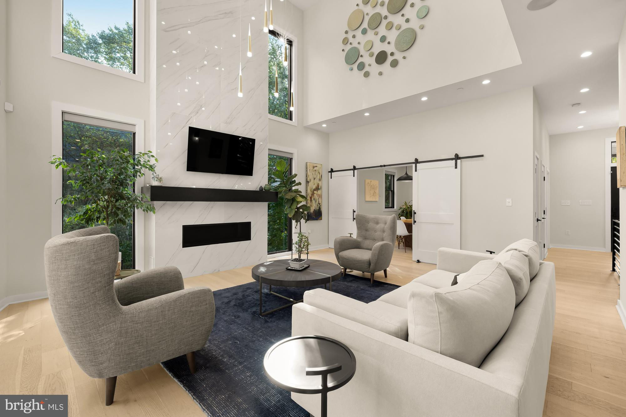 Welcome to this exquisite newer construction with an elevator in the sought-after Palisades. The home is filled with upgrades, abundant natural light, fantastic location, seamlessly blending modern design with elegant features. From the gracious front porch with a sun screen for added comfort and privacy, relax on the swing and enjoy serene neighborhood views, or ascend to the unique rooftop deck to admire breathtaking winter vistas of the Potomac River. Designed for entertaining, this showpiece features a dramatic open floor plan, striking "floating" stairs, and soaring 22-foot ceilings. A custom, two-story fireplace and 12-foot glass doors open to your private patio. Culinary enthusiasts will adore the oversized professional Chef's Kitchen, featuring cascading quartz countertops, commercial-grade Viking appliances, two wall ovens, 6 burner gas cooktop with griddle, ample counter space, and a large pantry. The main level also includes a versatile office/dining room with chic white barn doors, a formal sitting room, a powder room, and elevator access to all four levels. Step outside to your private, fully fenced low maintenance backyard with a patio, ideal for BBQs and al fresco dining. The primary suite is the epitome of luxury, with a spacious bedroom and spa-like bathroom featuring stunning finishes. Indulge in the oversized dual-head shower, rain showerhead, double sink vanity, soaking tub, and a convenient extra vanity. A private balcony and an incredible walk-in closet with a coffee bar, beverage fridge, custom pulldown hanging bars, and two movable islands complete this magnificent suite. This level also offers another full bathroom, a versatile bedroom/office with a closet, and a second washer/dryer. Ascend to the rooftop deck for sunset views. On the second level, discover 4 generous bedrooms, 2 of which are en-suite, and 3 custom bathrooms, plus a convenient laundry room. The lower level presents a full wet bar with an island, a full-size fridge, a custom bar with a wine fridge and storage, a rec/media room (with Stewart Filmscreen Perforado Acoustic screen, Epson Home Cinema Projector, and Dolby Atmos surround system with subwoofer), custom closets for extra storage, and an exercise room. The large garage includes a Tesla Universal EV Charger and mudroom cubbies with ample storage space. Other updates include Seven Sonos amplifiers powering the whole-home sound system, Motorized sun screen added to the front porch, the Coastal Source landscape lighting, automated blinds throughout the home, Swan S Pro toilets installed in all ensuite bathrooms, zoned systems, and much more. Prime location, just steps from Palisades Park/Rec Center/Playground, Key ES, great restaurants (such as Et Voila!, Lupo Verde, Kappo, Black Salt), groceries, shops, library, and the Sunday Farmers Market. The community buzzes with events, including the 4th of July Parade and festive holiday celebrations. Quick access to downtown DC, Clara Barton Parkway, Capital Crescent Trail and Palisades Park, Sibley Hospital, American & Georgetown Universities, and major routes such as the C&O Canal, Whitehurst Freeway, Key Bridge, Chain Bridge, I-495, and Reagan National Airport. This luxurious home offers an unparalleled living experience.