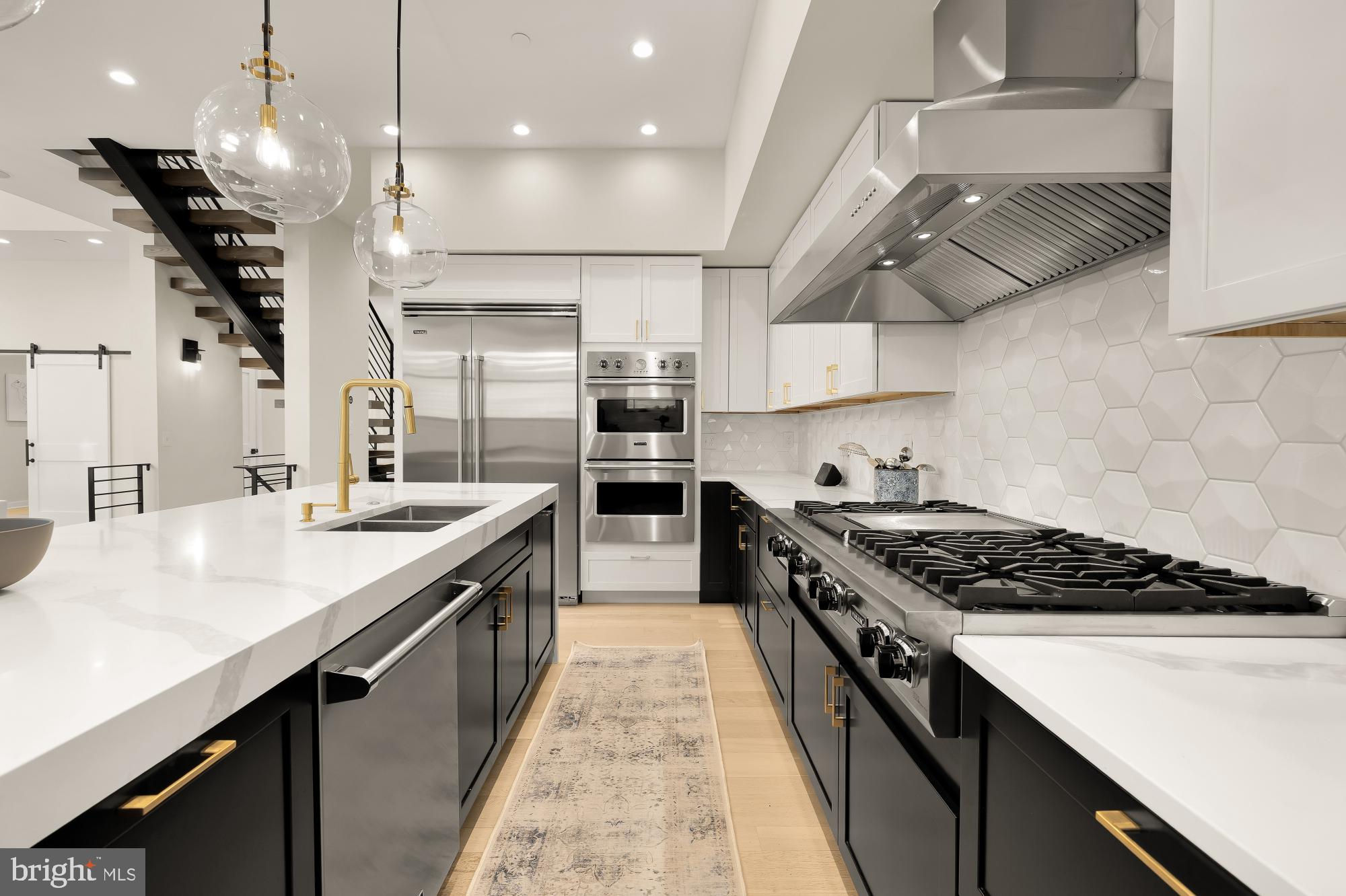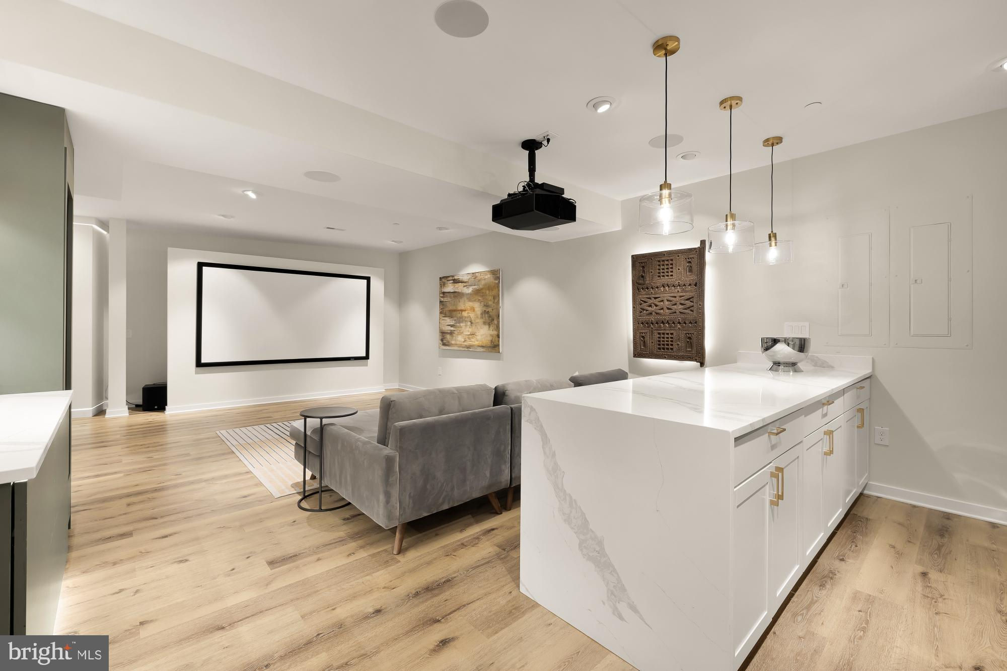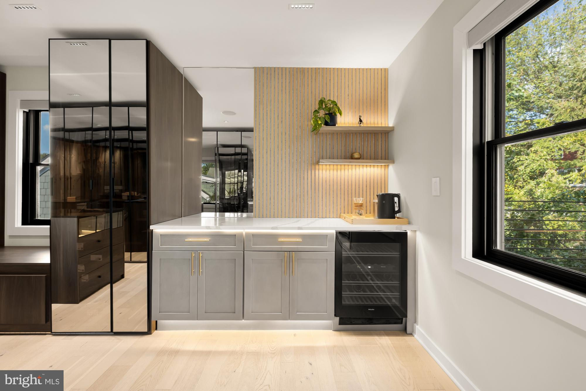 Welcome to this exquisite newer construction with an elevator in the sought-after Palisades. The home is filled with upgrades, abundant natural light, fantastic location, seamlessly blending modern design with elegant features. From the gracious front porch with a sun screen for added comfort and privacy, relax on the swing and enjoy serene neighborhood views, or ascend to the unique rooftop deck to admire breathtaking winter vistas of the Potomac River. Designed for entertaining, this showpiece features a dramatic open floor plan, striking "floating" stairs, and soaring 22-foot ceilings. A custom, two-story fireplace and 12-foot glass doors open to your private patio. Culinary enthusiasts will adore the oversized professional Chef's Kitchen, featuring cascading quartz countertops, commercial-grade Viking appliances, two wall ovens, 6 burner gas cooktop with griddle, ample counter space, and a large pantry. The main level also includes a versatile office/dining room with chic white barn doors, a formal sitting room, a powder room, and elevator access to all four levels. Step outside to your private, fully fenced low maintenance backyard with a patio, ideal for BBQs and al fresco dining. The primary suite is the epitome of luxury, with a spacious bedroom and spa-like bathroom featuring stunning finishes. Indulge in the oversized dual-head shower, rain showerhead, double sink vanity, soaking tub, and a convenient extra vanity. A private balcony and an incredible walk-in closet with a coffee bar, beverage fridge, custom pulldown hanging bars, and two movable islands complete this magnificent suite. This level also offers another full bathroom, a versatile bedroom/office with a closet, and a second washer/dryer. Ascend to the rooftop deck for sunset views. On the second level, discover 4 generous bedrooms, 2 of which are en-suite, and 3 custom bathrooms, plus a convenient laundry room. The lower level presents a full wet bar with an island, a full-size fridge, a custom bar with a wine fridge and storage, a rec/media room (with Stewart Filmscreen Perforado Acoustic screen, Epson Home Cinema Projector, and Dolby Atmos surround system with subwoofer), custom closets for extra storage, and an exercise room. The large garage includes a Tesla Universal EV Charger and mudroom cubbies with ample storage space. Other updates include Seven Sonos amplifiers powering the whole-home sound system, Motorized sun screen added to the front porch, the Coastal Source landscape lighting, automated blinds throughout the home, Swan S Pro toilets installed in all ensuite bathrooms, zoned systems, and much more. Prime location, just steps from Palisades Park/Rec Center/Playground, Key ES, great restaurants (such as Et Voila!, Lupo Verde, Kappo, Black Salt), groceries, shops, library, and the Sunday Farmers Market. The community buzzes with events, including the 4th of July Parade and festive holiday celebrations. Quick access to downtown DC, Clara Barton Parkway, Capital Crescent Trail and Palisades Park, Sibley Hospital, American & Georgetown Universities, and major routes such as the C&O Canal, Whitehurst Freeway, Key Bridge, Chain Bridge, I-495, and Reagan National Airport. This luxurious home offers an unparalleled living experience.