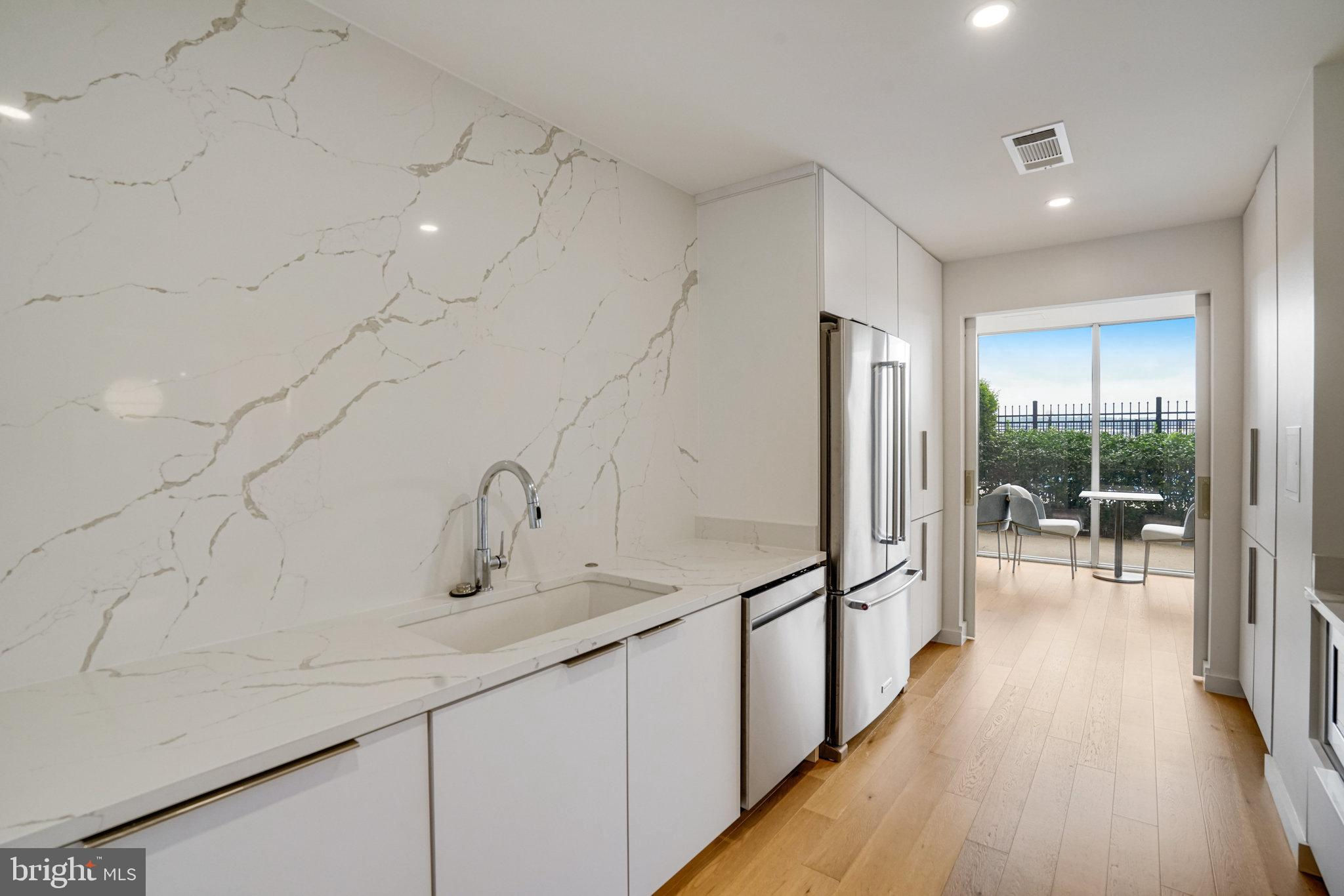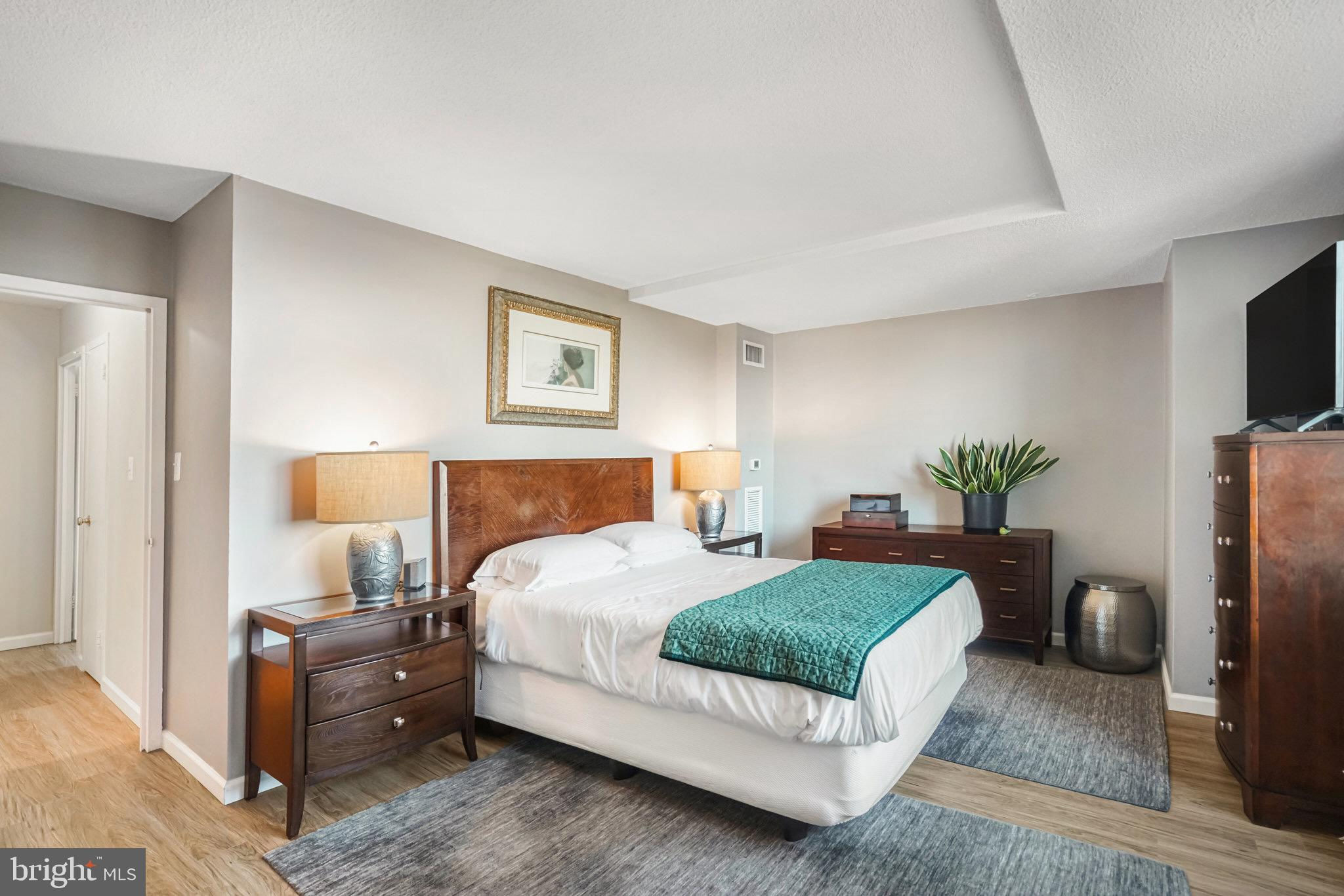 Bathe in Sunlight in your updated two bedroom, two bath condo. The kitchen has 42” maple cabinetry, to help you cook with ease. Luxury vinyl plank flooring, neutral colors, and replacement sliding doors and windows, give this unit a fresh look and quieter atmosphere. From your balcony there’s a partial view of the Potomac River, the Masonic temple, breathtaking sunrises and sunsets, and front-row seats to the transformation of the power plant into a vibrant mixed-use community. Marina Towers is professionally managed with a front desk concierge and maintenance staff. All utilities except internet are included in your condo fee. Amenities include a convenience store; riverside pool, tiki bar and grills; dog park; community garden; gym; library; sauna; and community room. There is free parking on the surface lot. An active social committee frequently hosts coffee hours and special events. Residents volunteer to lead water aerobics, bike rides, Friday cookouts, and other fun activities. This is a smoke free building except for a few residents who were grandfathered in.