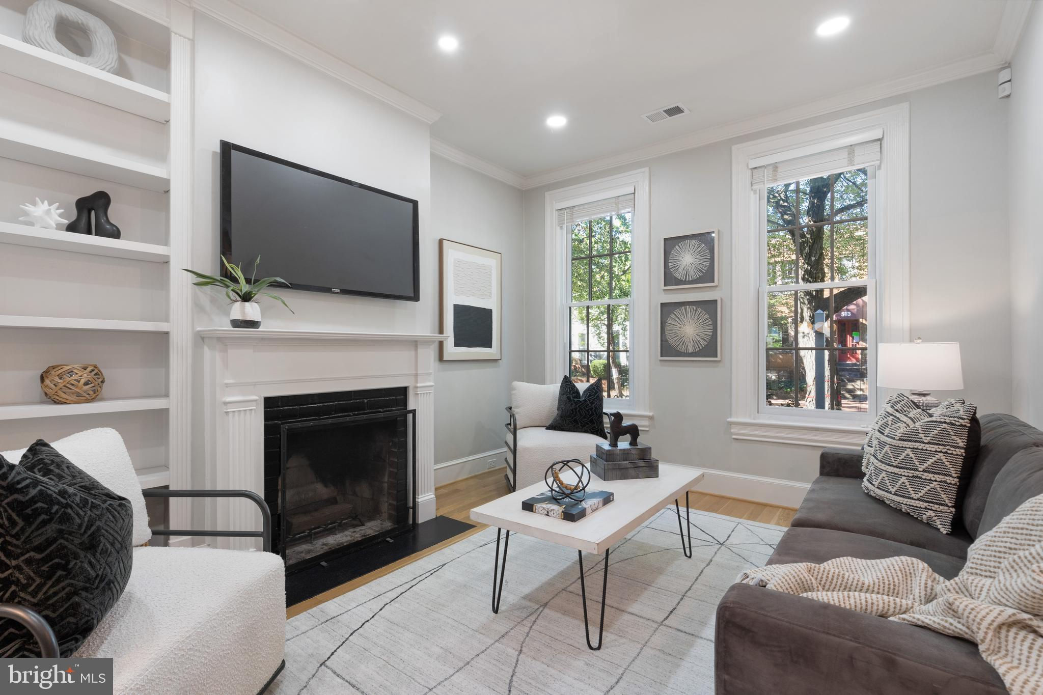 Price Improvement! This beautifully renovated Federal style townhome is located on one of Capitol Hill’s most sought-after blocks. Offering great livability and sophisticated style, the home is perfect for a truly turn-key lifestyle. Melding original details with a contemporary renovation, the home exhibits smart design and excellent use of space. The home features a spacious first floor with a foyer, coat closet and powder room. The living room is anchored by a fireplace and has floor to ceiling built in bookshelves. The gourmet kitchen is a chef’s dream, with upscale name brand stainless steel appliances. Upstairs, there are three sizable bedrooms. The master bedroom showcases a walk-in closet and ensuite bathroom. The home has beautiful hardwood floors, newer windows and a newly relined wood-burning fireplace. The backyard is a serene oasis with mature plantings and a patio entered through glass double doors. The ever-desirable parking completes the private and very livable outdoor space! The home is steps away from Barracks Row, Eastern Market, Capitol Hill Arts Workshop, and numerous metros, parks and supermarkets. With a walk score of 96, park your car in the parking space and go explore! Wonderful location and beautifully renovated home!