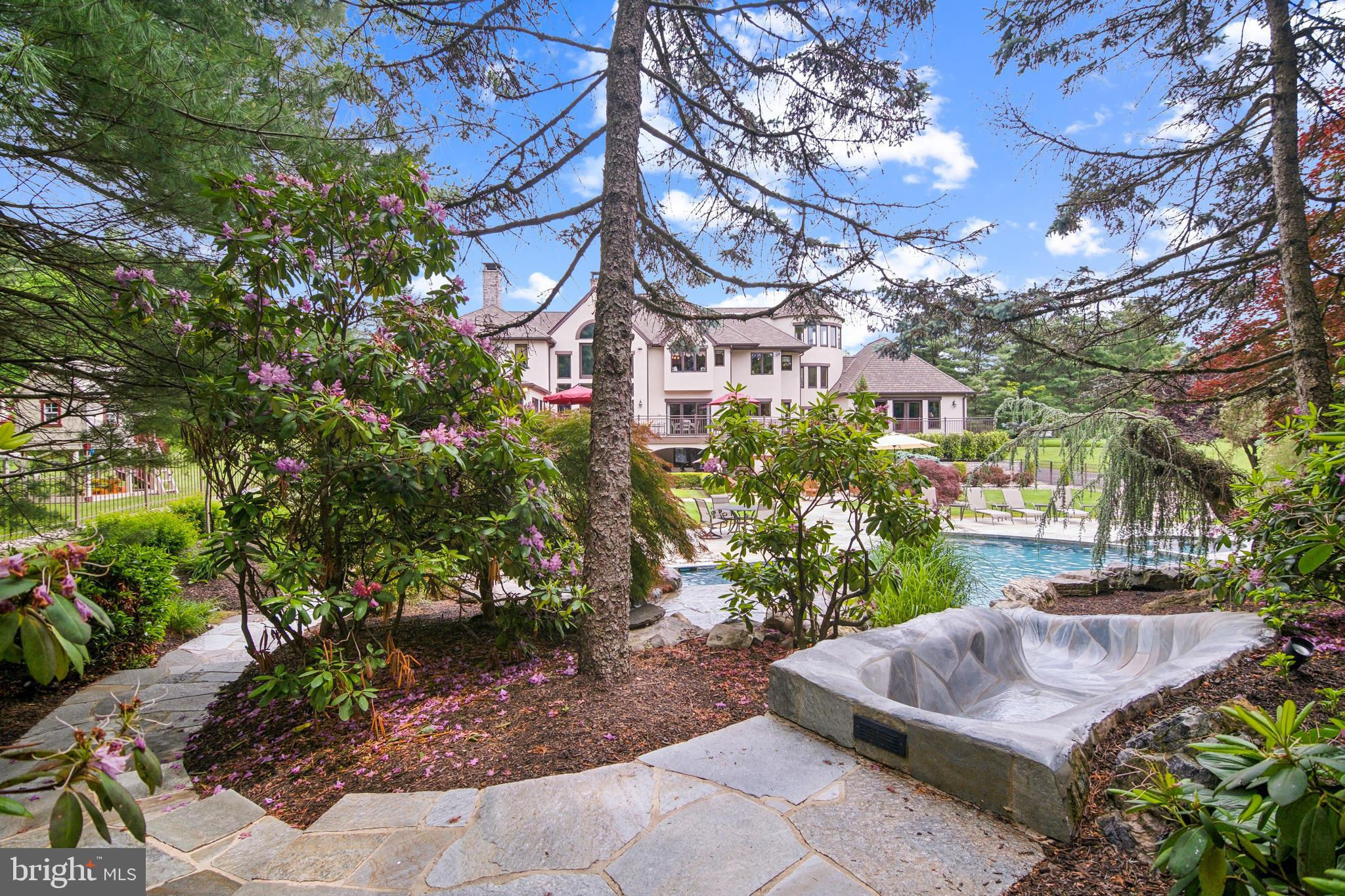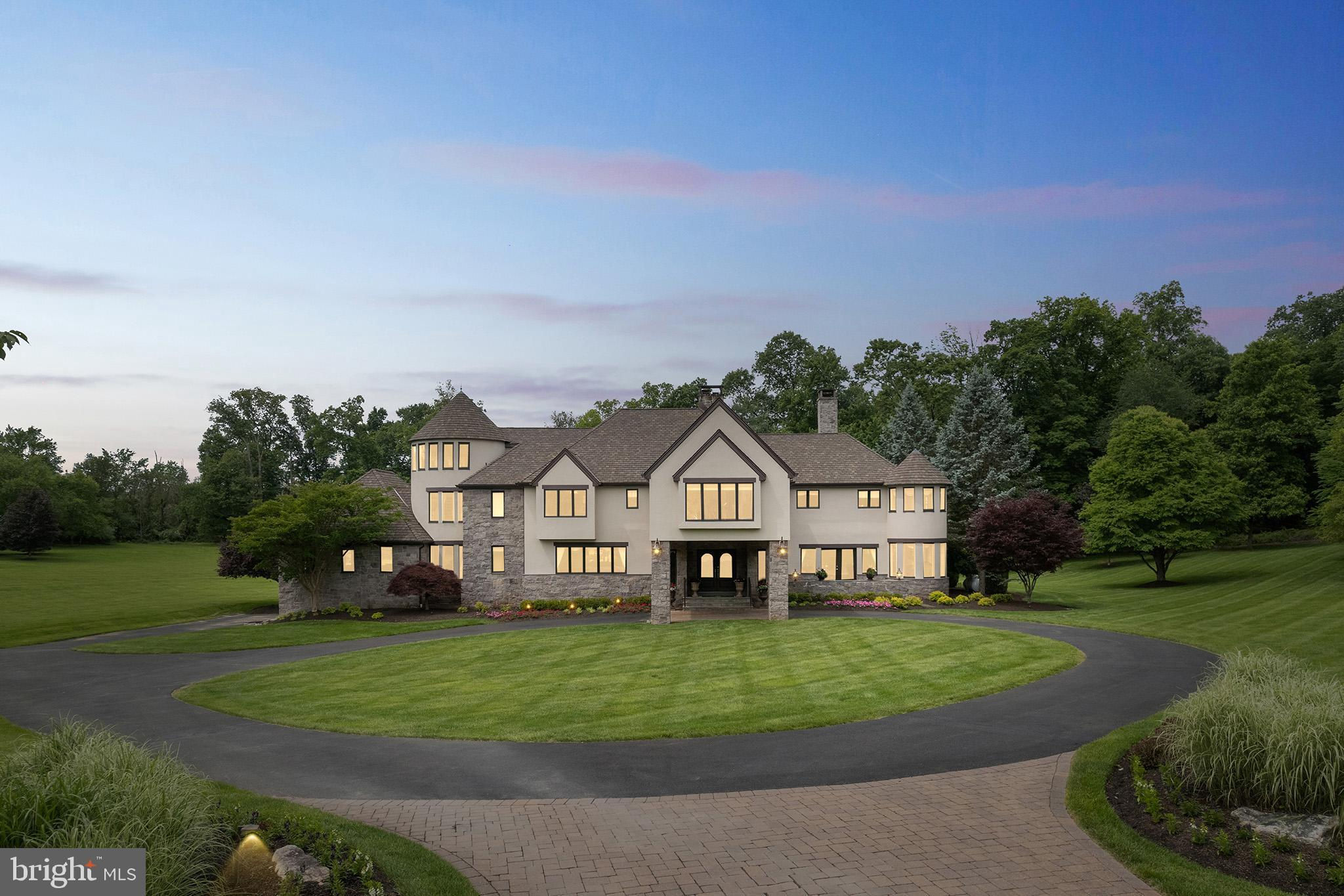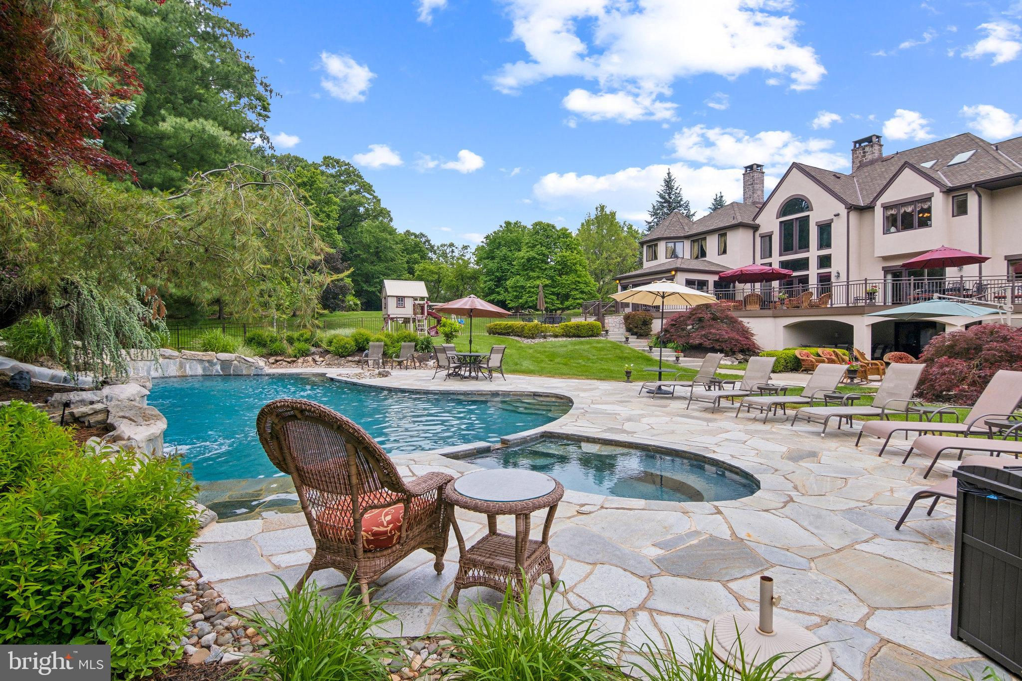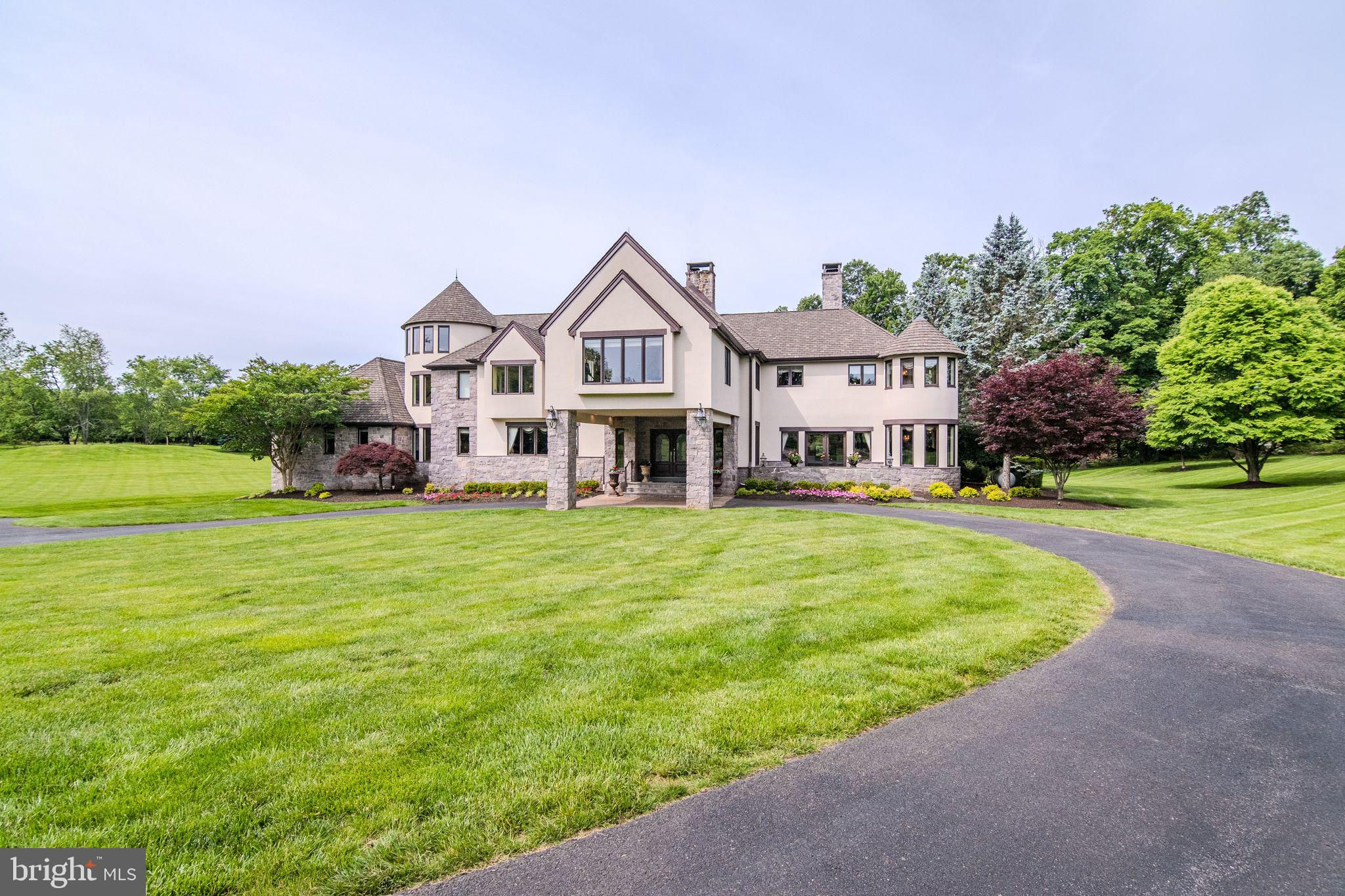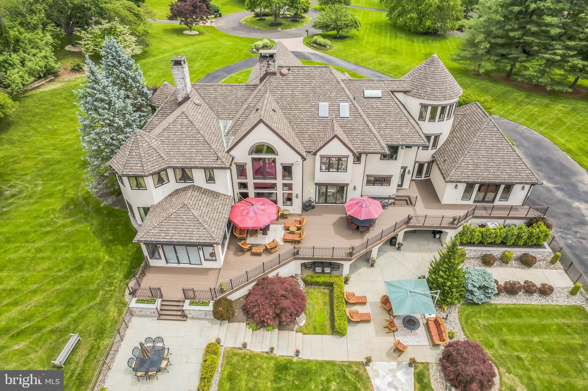Welcome to 509 Wheatfield Lane, a truly extraordinary estate tucked away on 3.32 picturesque acres in the prestigious Timber Ridge community of Upper Makefield Township. Located at the end of a quiet cul-de-sac in the award-winning Council Rock School District, this impressive home blends architectural elegance, modern luxury, and resort-style amenities. A sweeping circular Governor’s driveway leads to a stately covered stone portico, setting the tone for what awaits inside. Enter the grand two-story foyer, where limestone flooring, a floating staircase, and intricate millwork make a striking first impression. To the right, the formal living room features hardwood floors, a two-sided stone gas fireplace, and a rounded alcove—ideal for a piano or seating area. Across the foyer, the banquet-sized dining room showcases extensive moldings, hardwood flooring, and a dramatic chandelier, perfect for hosting gatherings. The recently remodeled kitchen is a chef’s dream, designed for both beauty and function. Custom cabinetry with smart storage, a two-level center island, built-in espresso station, Wolf double ovens, upgraded cooktop, two cabinet-fronted Miele dishwashers, and two Sub-Zero refrigerator/freezers are complemented by limestone flooring, which extends into the dining area. An informal dining area with built-ins opens to a newly remodeled deck. Nearby, the well-appointed main floor laundry room includes a laundry chute from upstairs. The dramatic two-story family room features a soaring stone fireplace and a wall of windows that fill the space with light. Adjacent, the game/billiards room offers a second stone fireplace and curved alcove for cards or conversation. A spa room with built-in high-end spa adds a relaxing escape. The main level also features a conservatory with vaulted ceilings and access to the deck—ideal as-is, or easily converted into a first-floor bedroom suite or in-law suite. A beautifully updated powder room completes this level. Upstairs, the primary suite is a luxurious retreat with a serene sitting area in a turret, private office/sitting room, expansive walk-in closets, and a spa-like bathroom with jetted tub set in a dramatic alcove. Three additional bedrooms each have walk-in closets; two share a Jack and Jill bath, and one enjoys a private ensuite. Also on this level is a large multipurpose room, considered the fifth bedroom, currently used as an exercise room, and offering rough-in plumbing for a full bathroom. A private third-floor suite includes a spacious bedroom with sitting area, full bath, walk-in closet, and attic access—perfect for guests, in-laws, or an au pair. The finished lower level is built for entertaining, with a custom home theater (seating included), a second game room, full bath, sauna, and walk-out to the backyard. There’s also ample unfinished storage space in basement area. Step outside to your private resort: a heated in-ground pool with a winding rock "creek," thrilling water slide, and hidden cave. A separate spa area, multiple patios, and a covered outdoor lounge complete this outdoor oasis. Every inch of this remarkable property reflects luxury, quality, and thoughtful design. If you've been searching for an Upper Makefield estate offering privacy, prestige, and unparalleled lifestyle amenities—this is the one.