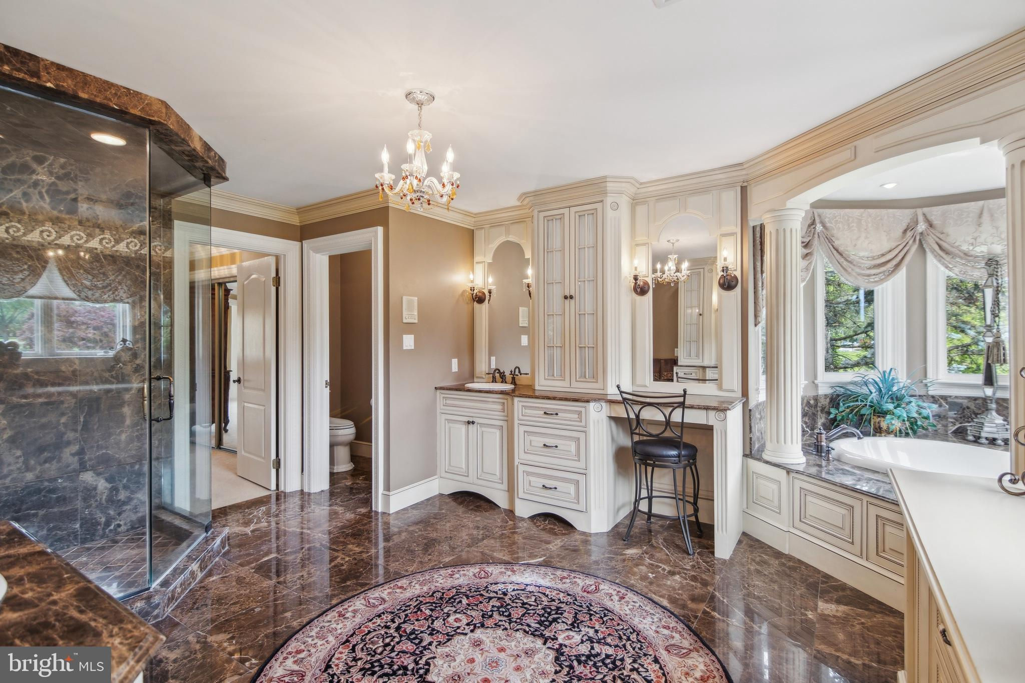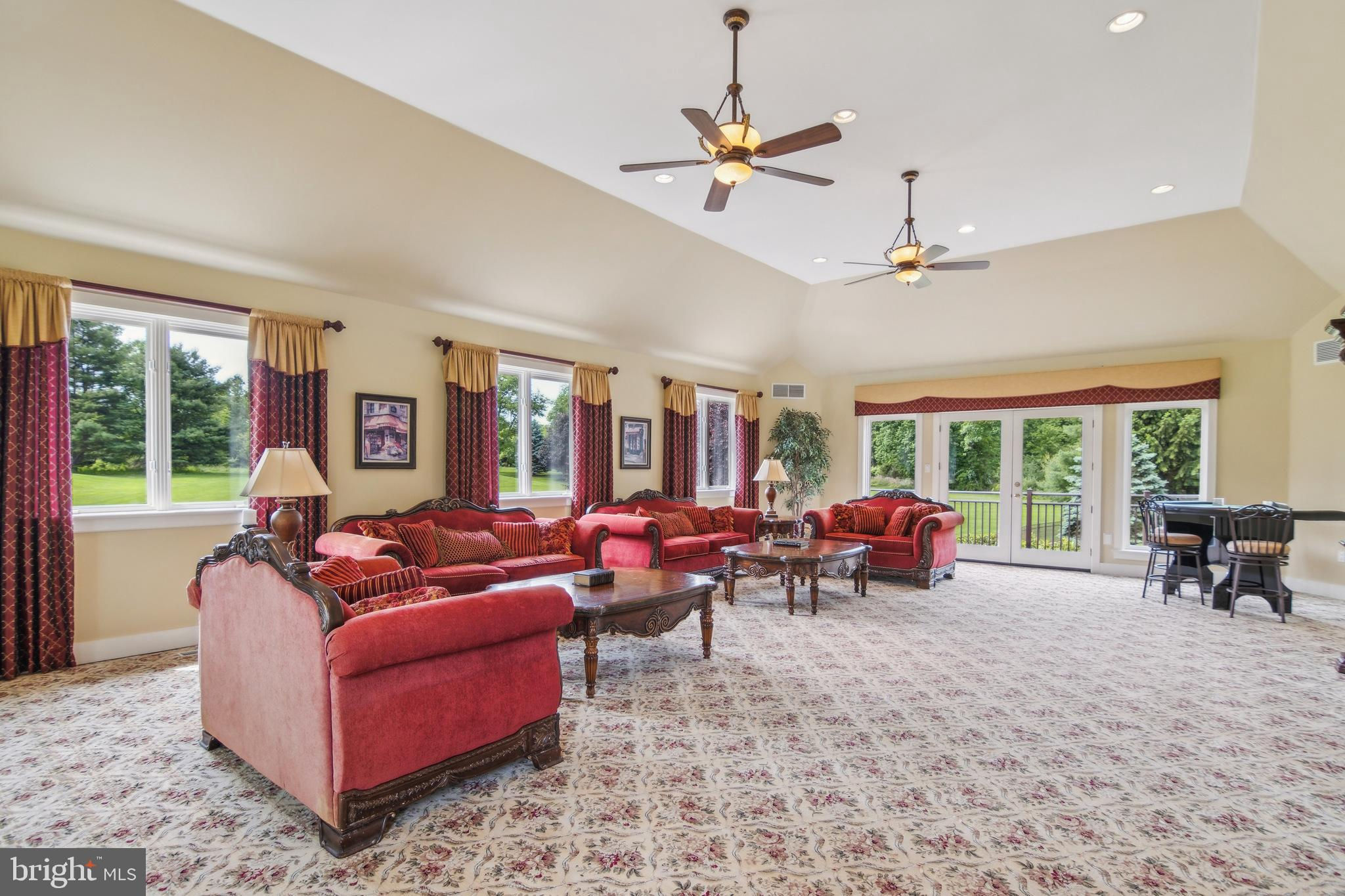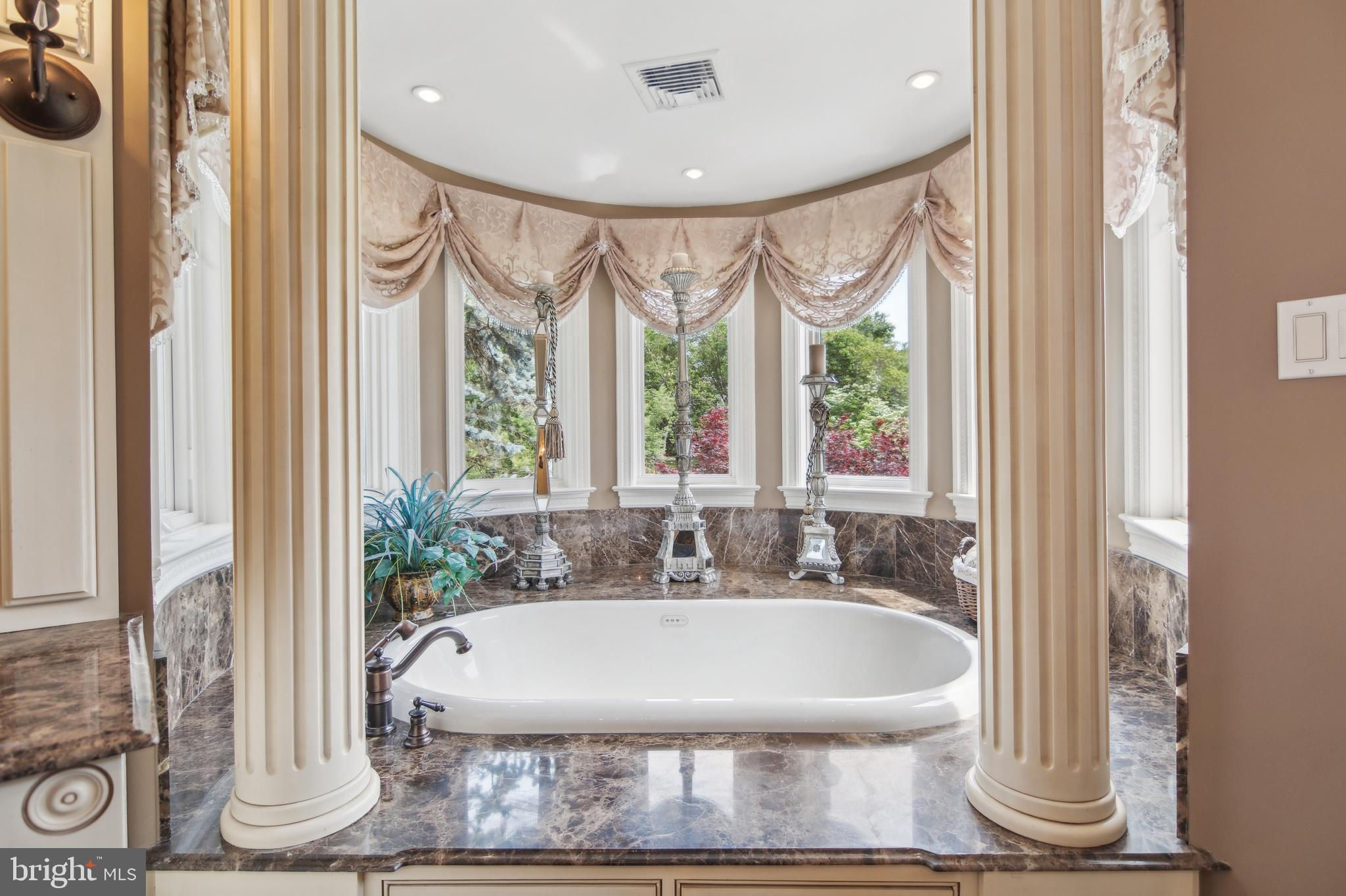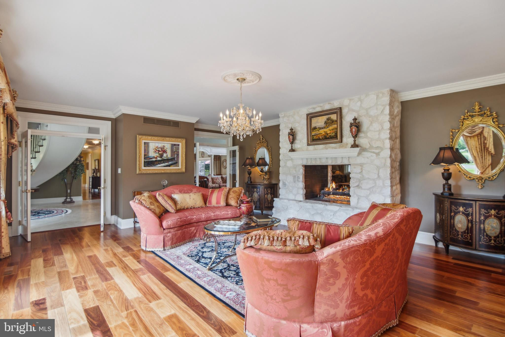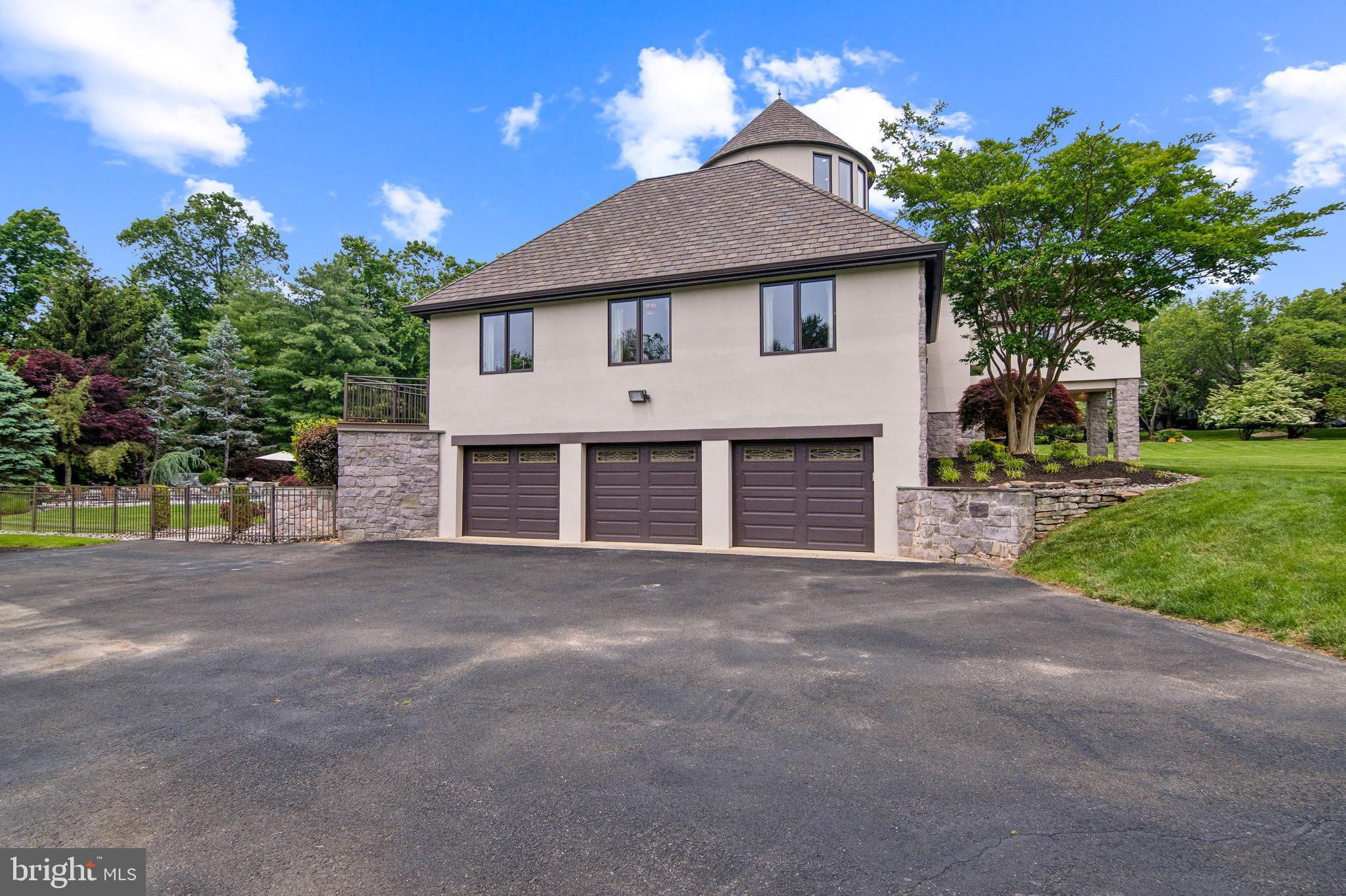 Welcome to 509 Wheatfield Lane, a truly extraordinary estate tucked away on 3.32 picturesque acres in the prestigious Timber Ridge community of Upper Makefield Township. Located at the end of a quiet cul-de-sac in the award-winning Council Rock School District, this impressive home blends architectural elegance, modern luxury, and resort-style amenities. A sweeping circular Governor’s driveway leads to a stately covered stone portico, setting the tone for what awaits inside. Enter the grand two-story foyer, where limestone flooring, a floating staircase, and intricate millwork make a striking first impression. To the right, the formal living room features hardwood floors, a two-sided stone gas fireplace, and a rounded alcove—ideal for a piano or seating area. Across the foyer, the banquet-sized dining room showcases extensive moldings, hardwood flooring, and a dramatic chandelier, perfect for hosting gatherings. The recently remodeled kitchen is a chef’s dream, designed for both beauty and function. Custom cabinetry with smart storage, a two-level center island, built-in espresso station, Wolf double ovens, upgraded cooktop, two cabinet-fronted Miele dishwashers, and two Sub-Zero refrigerator/freezers are complemented by limestone flooring, which extends into the dining area. An informal dining area with built-ins opens to a newly remodeled deck. Nearby, the well-appointed main floor laundry room includes a laundry chute from upstairs. The dramatic two-story family room features a soaring stone fireplace and a wall of windows that fill the space with light. Adjacent, the game/billiards room offers a second stone fireplace and curved alcove for cards or conversation. A spa room with built-in high-end spa adds a relaxing escape. The main level also features a conservatory with vaulted ceilings and access to the deck—ideal as-is, or easily converted into a first-floor bedroom suite or in-law suite. A beautifully updated powder room completes this level. Upstairs, the primary suite is a luxurious retreat with a serene sitting area in a turret, private office/sitting room, expansive walk-in closets, and a spa-like bathroom with jetted tub set in a dramatic alcove. Three additional bedrooms each have walk-in closets; two share a Jack and Jill bath, and one enjoys a private ensuite. Also on this level is a large multipurpose room, considered the fifth bedroom, currently used as an exercise room, and offering rough-in plumbing for a full bathroom. A private third-floor suite includes a spacious bedroom with sitting area, full bath, walk-in closet, and attic access—perfect for guests, in-laws, or an au pair. The finished lower level is built for entertaining, with a custom home theater (seating included), a second game room, full bath, sauna, and walk-out to the backyard. There’s also ample unfinished storage space in basement area. Step outside to your private resort: a heated in-ground pool with a winding rock "creek," thrilling water slide, and hidden cave. A separate spa area, multiple patios, and a covered outdoor lounge complete this outdoor oasis. Every inch of this remarkable property reflects luxury, quality, and thoughtful design. If you've been searching for an Upper Makefield estate offering privacy, prestige, and unparalleled lifestyle amenities—this is the one.