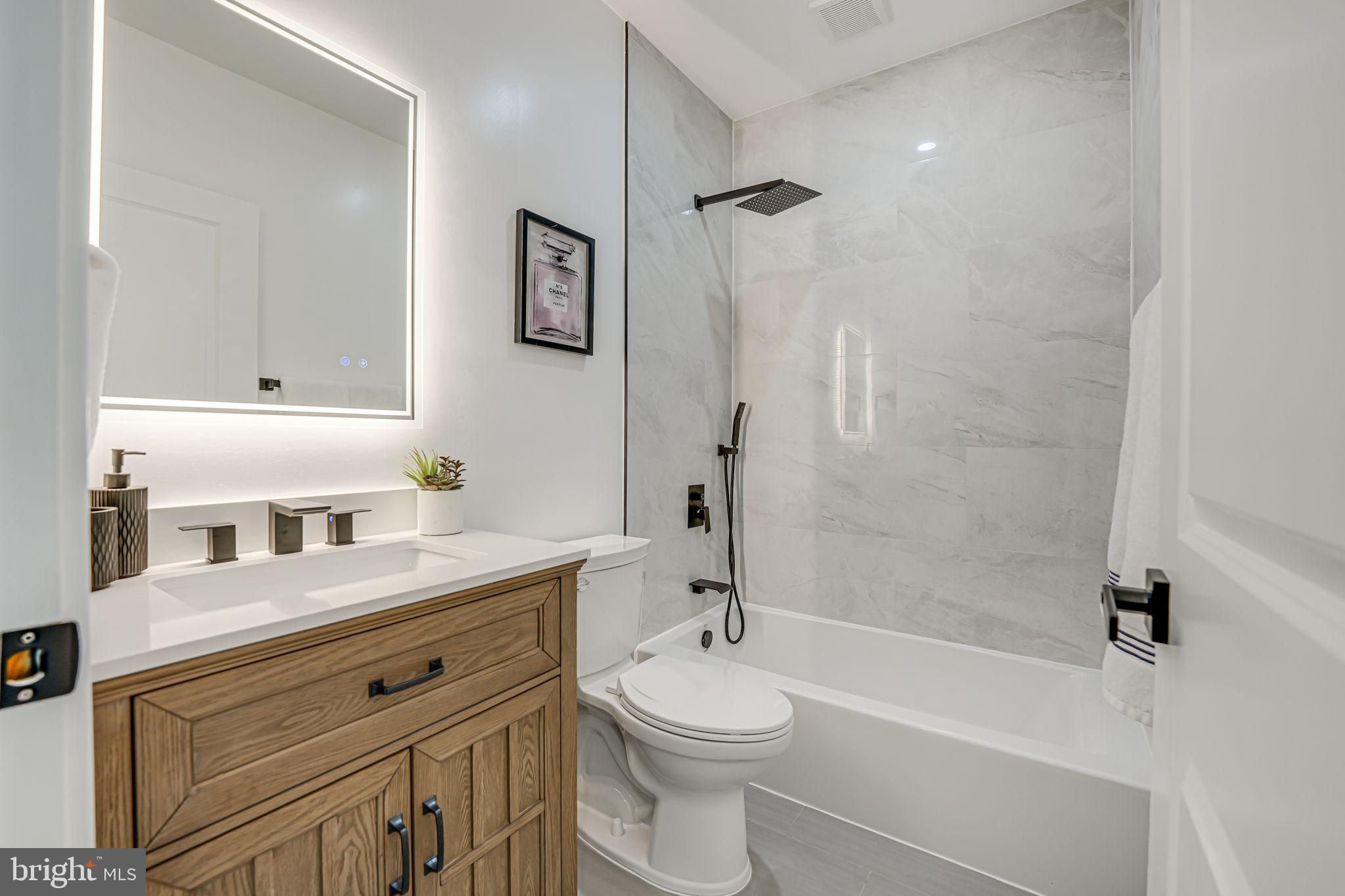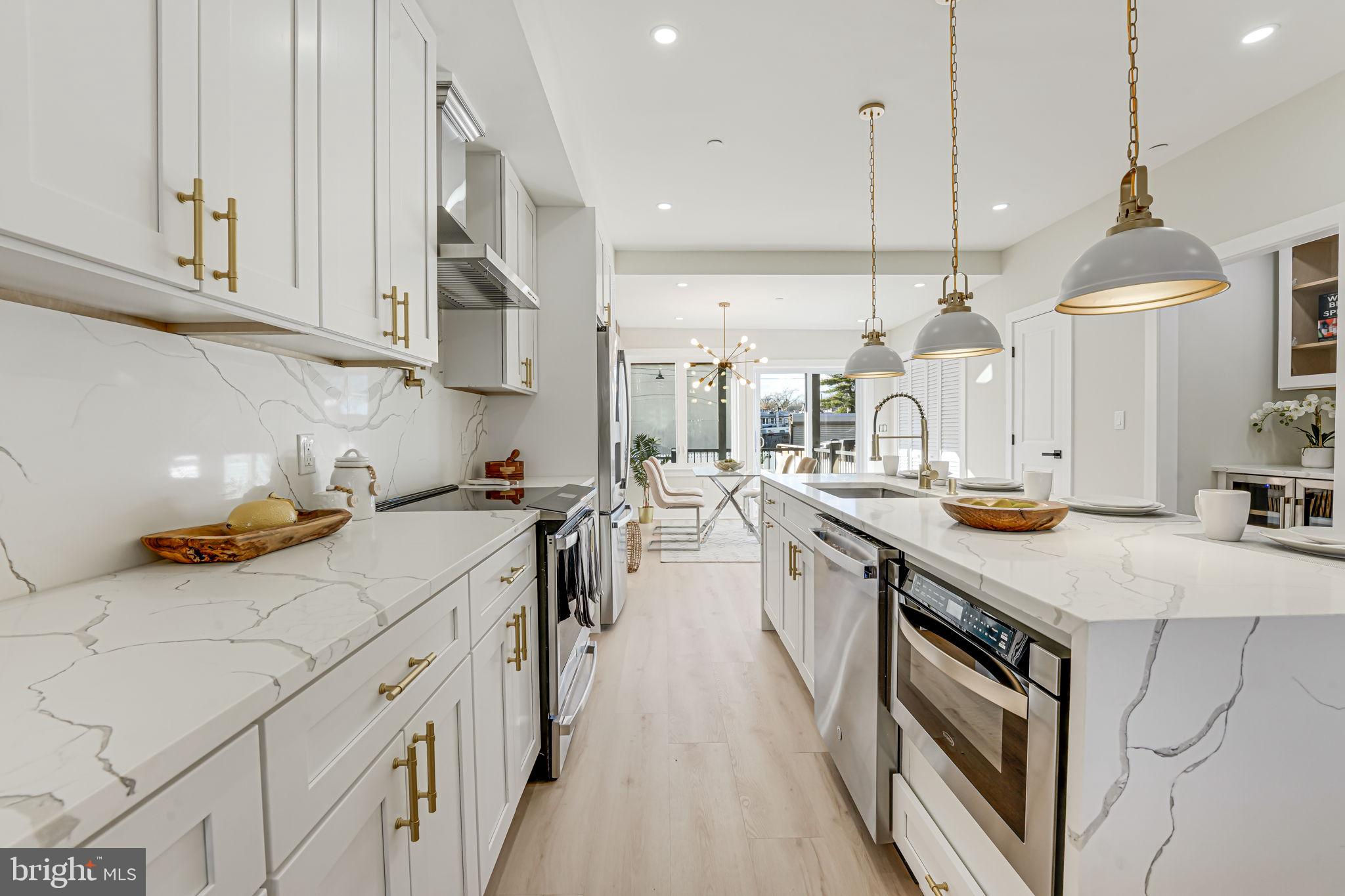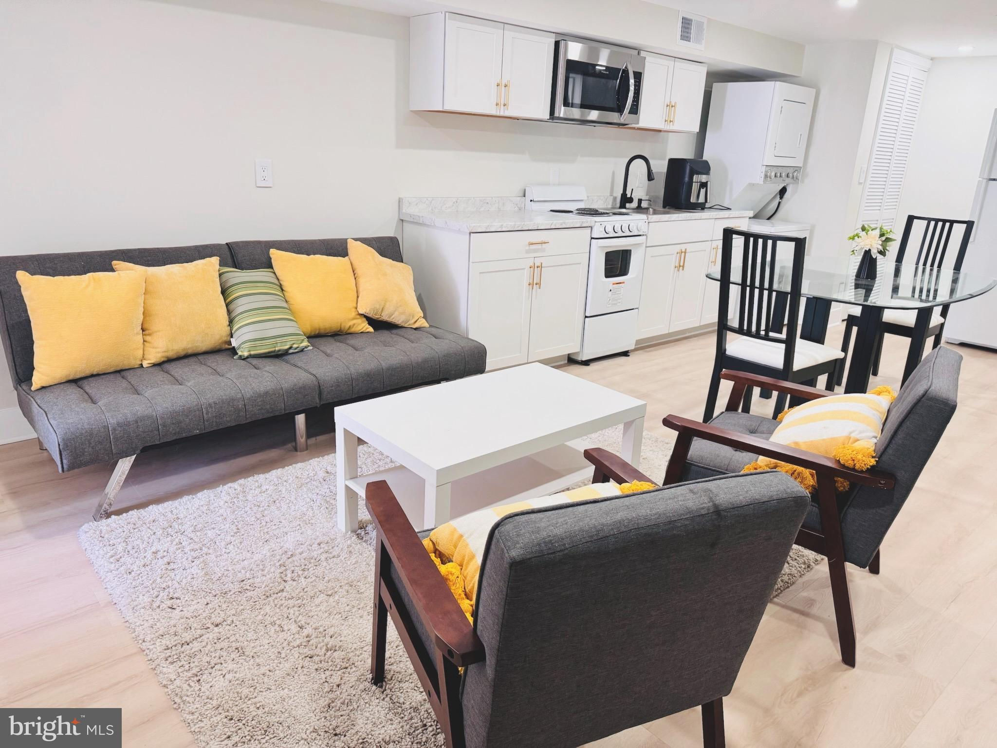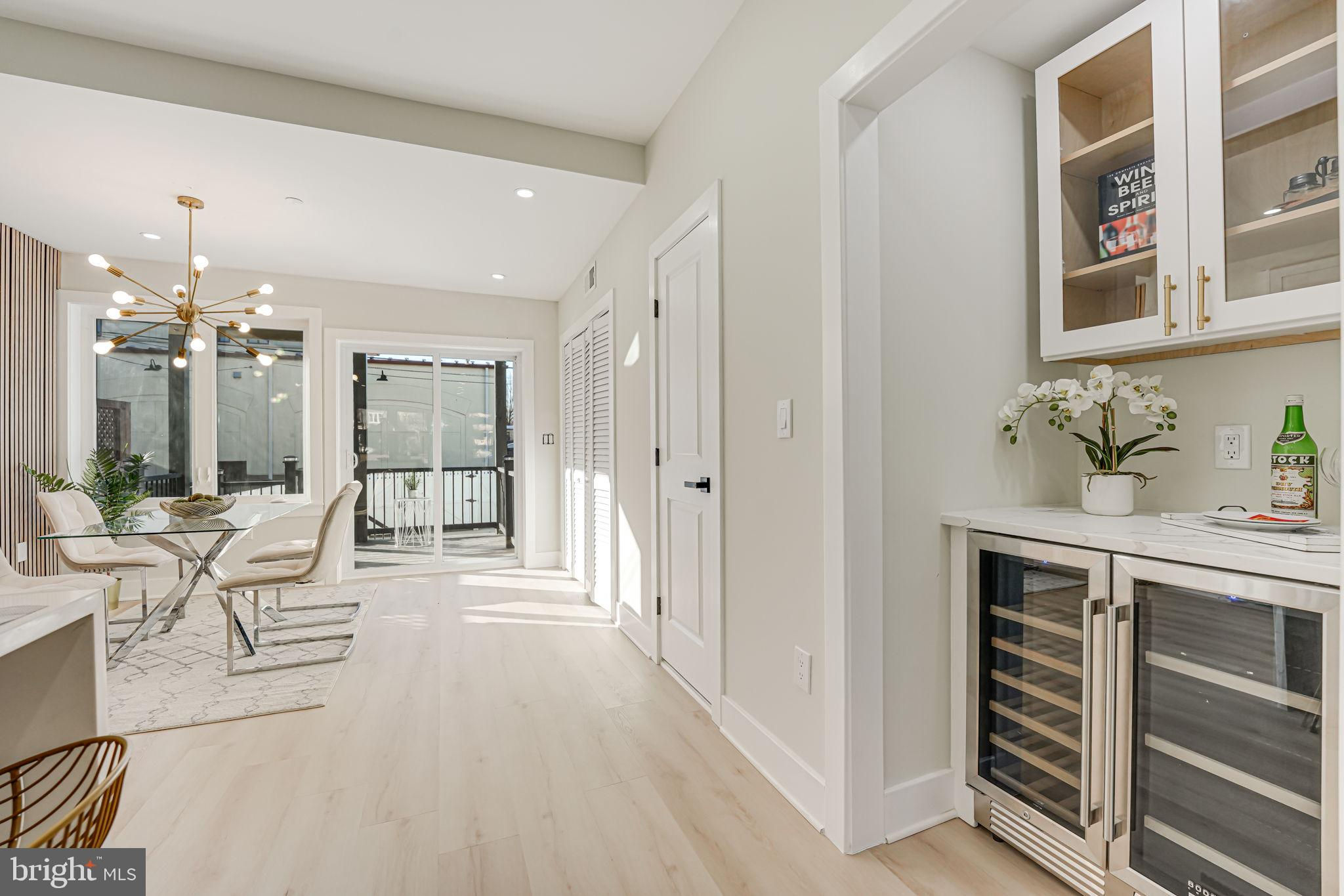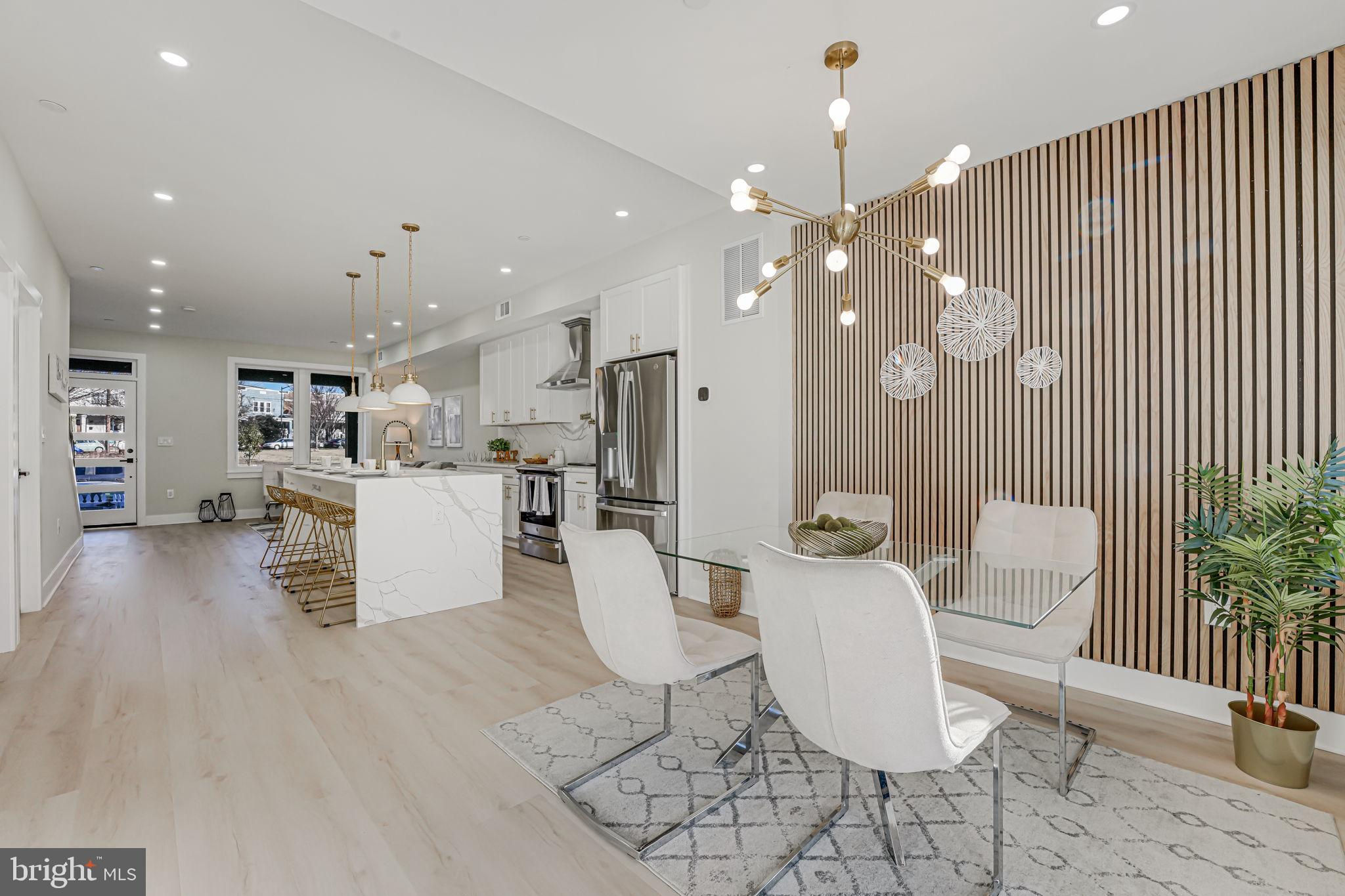 Welcome to this meticulously renovated interior row house offering the perfect blend of modern luxury and thoughtful design, ideally situated in one of DC’s most sought-after neighborhoods—right across from scenic Lorenzo Park. This stunning 4-bedroom, 3.5-bathroom home features a chef’s dream kitchen complete with sleek quartz countertops and matching backsplash, a convenient drawer microwave, and a custom wine cellar just steps away—ideal for entertaining in style. Casement windows flood the home with natural light while maintaining a comfortable indoor temperature year-round. Retreat to the luxurious primary suite, where a private deck invites quiet moments of relaxation. The spa-inspired en-suite bath is a true showstopper, showcasing a soaking tub, double vanity, walk-in shower with extra-large tiles, and energy-efficient LED mirrors—also featured in two additional bathrooms—providing optimal lighting for daily routines. Downstairs, the fully finished lower level offers endless possibilities. With a guest bedroom, full bath, second laundry set, kitchenette, and private entrance, it’s perfect as an in-law suite, guest retreat, or future rental opportunity. Step outside to enjoy your own private outdoor entertainment space, ideal for gatherings and summer evenings. With all-new plumbing, HVAC, water heater, flooring, and appliances, this home offers peace of mind and a fresh start. Don’t miss the chance to call this extraordinary property home. Opportunities like this are rare—schedule your private showing today! Agent is owner