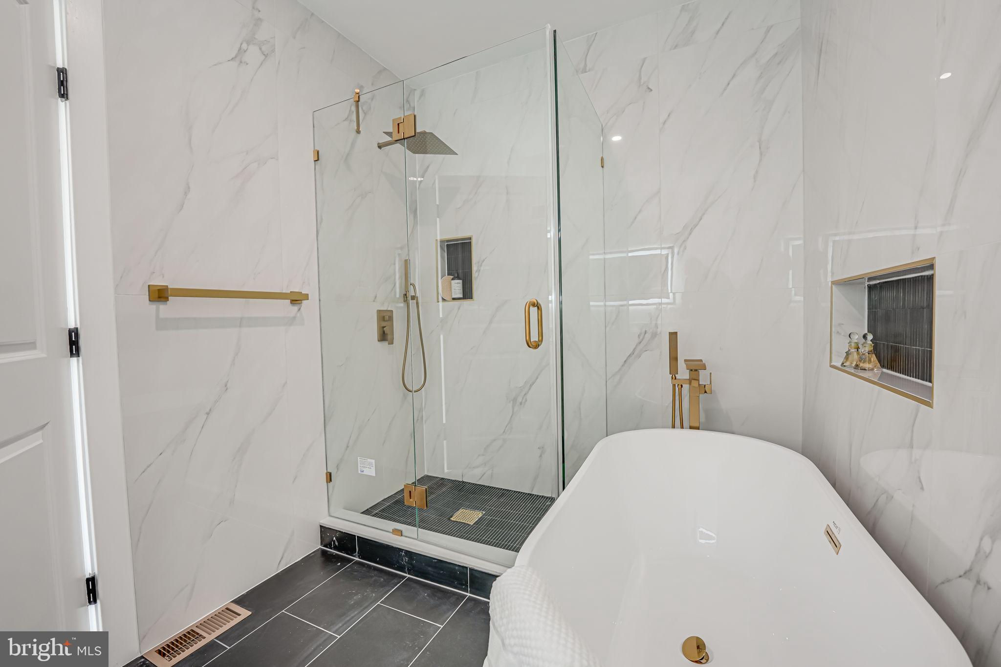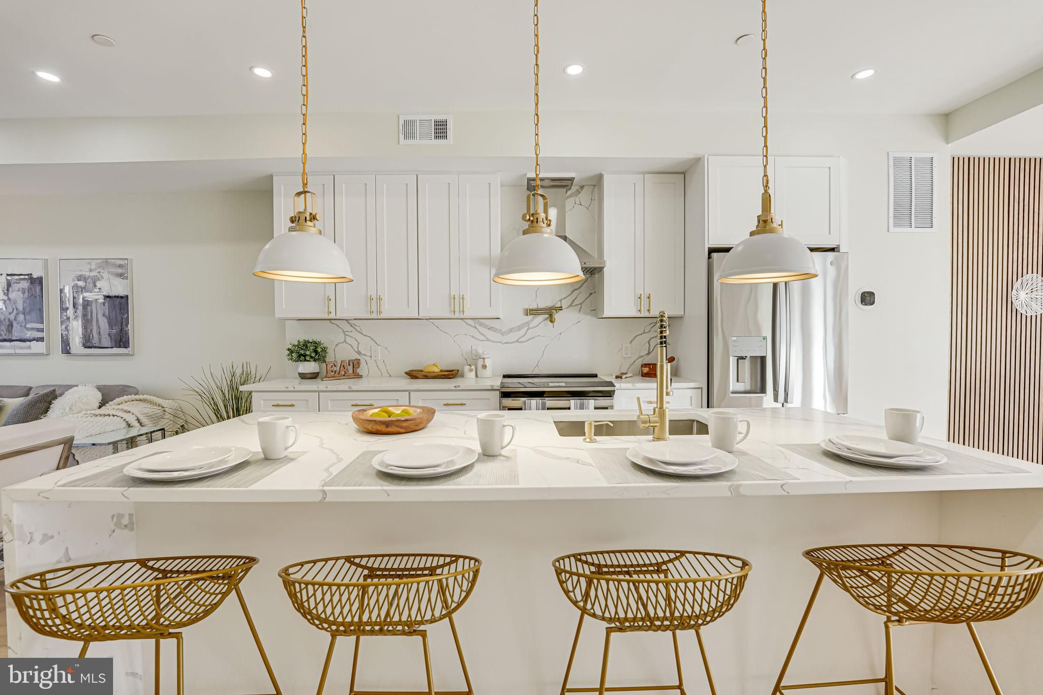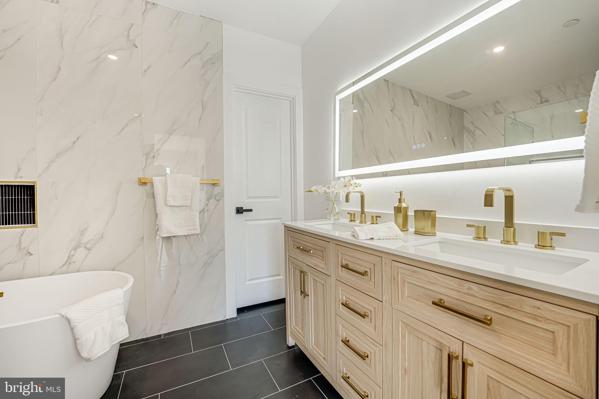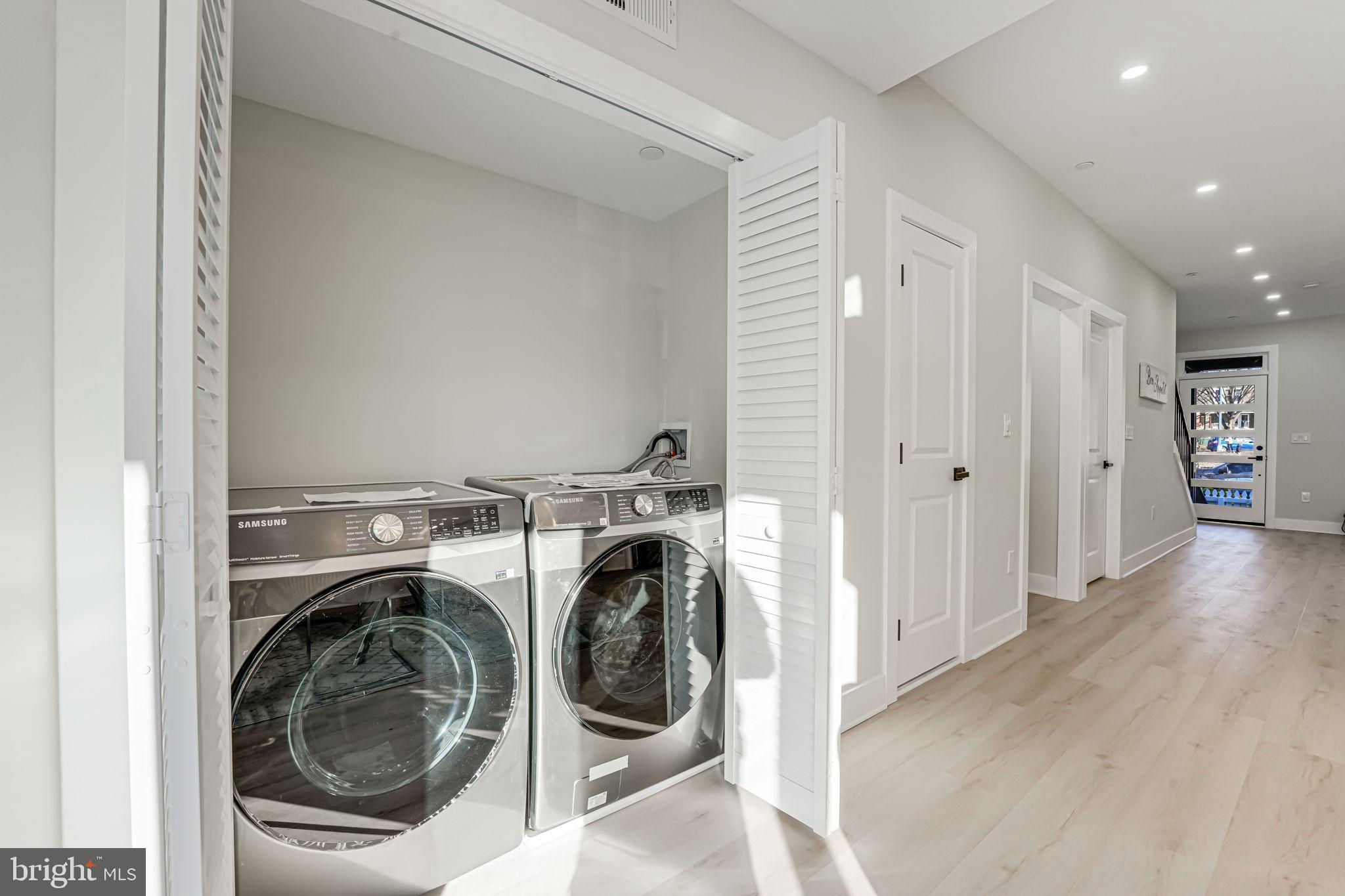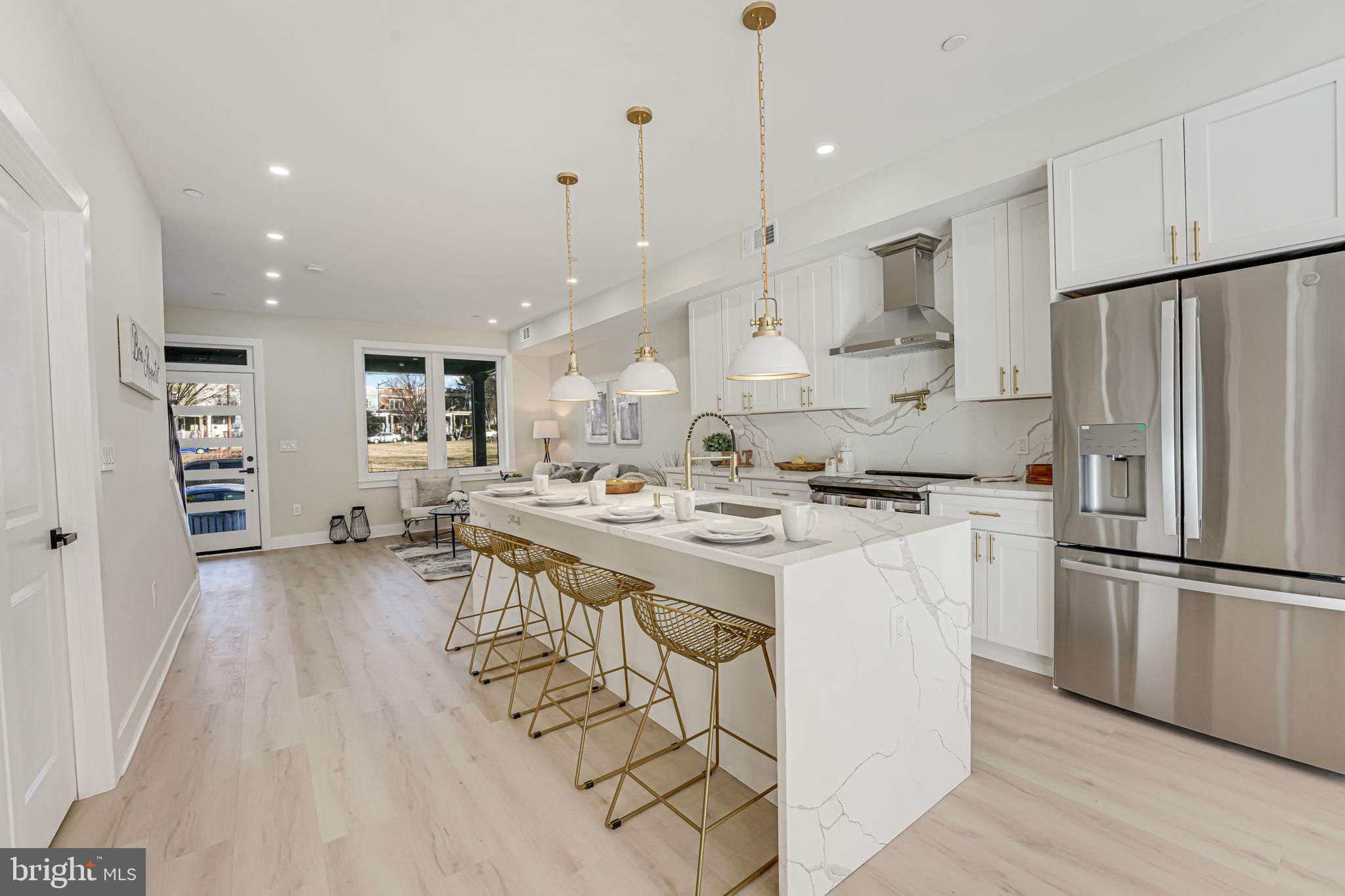 Welcome to this meticulously renovated interior row house offering the perfect blend of modern luxury and thoughtful design, ideally situated in one of DC’s most sought-after neighborhoods—right across from scenic Lorenzo Park. This stunning 4-bedroom, 3.5-bathroom home features a chef’s dream kitchen complete with sleek quartz countertops and matching backsplash, a convenient drawer microwave, and a custom wine cellar just steps away—ideal for entertaining in style. Casement windows flood the home with natural light while maintaining a comfortable indoor temperature year-round. Retreat to the luxurious primary suite, where a private deck invites quiet moments of relaxation. The spa-inspired en-suite bath is a true showstopper, showcasing a soaking tub, double vanity, walk-in shower with extra-large tiles, and energy-efficient LED mirrors—also featured in two additional bathrooms—providing optimal lighting for daily routines. Downstairs, the fully finished lower level offers endless possibilities. With a guest bedroom, full bath, second laundry set, kitchenette, and private entrance, it’s perfect as an in-law suite, guest retreat, or future rental opportunity. Step outside to enjoy your own private outdoor entertainment space, ideal for gatherings and summer evenings. With all-new plumbing, HVAC, water heater, flooring, and appliances, this home offers peace of mind and a fresh start. Don’t miss the chance to call this extraordinary property home. Opportunities like this are rare—schedule your private showing today! Agent is owner