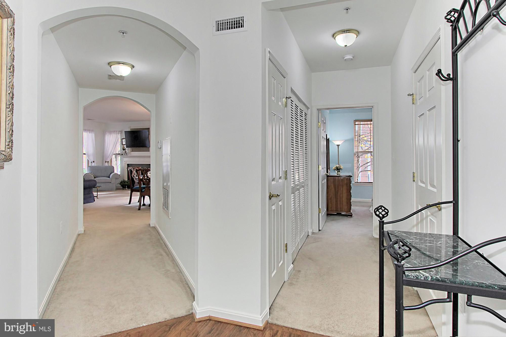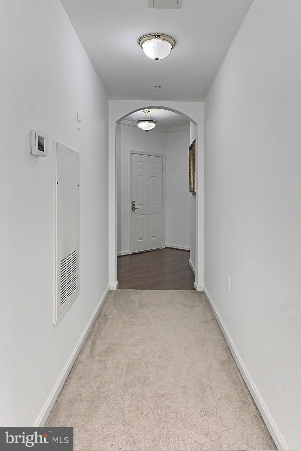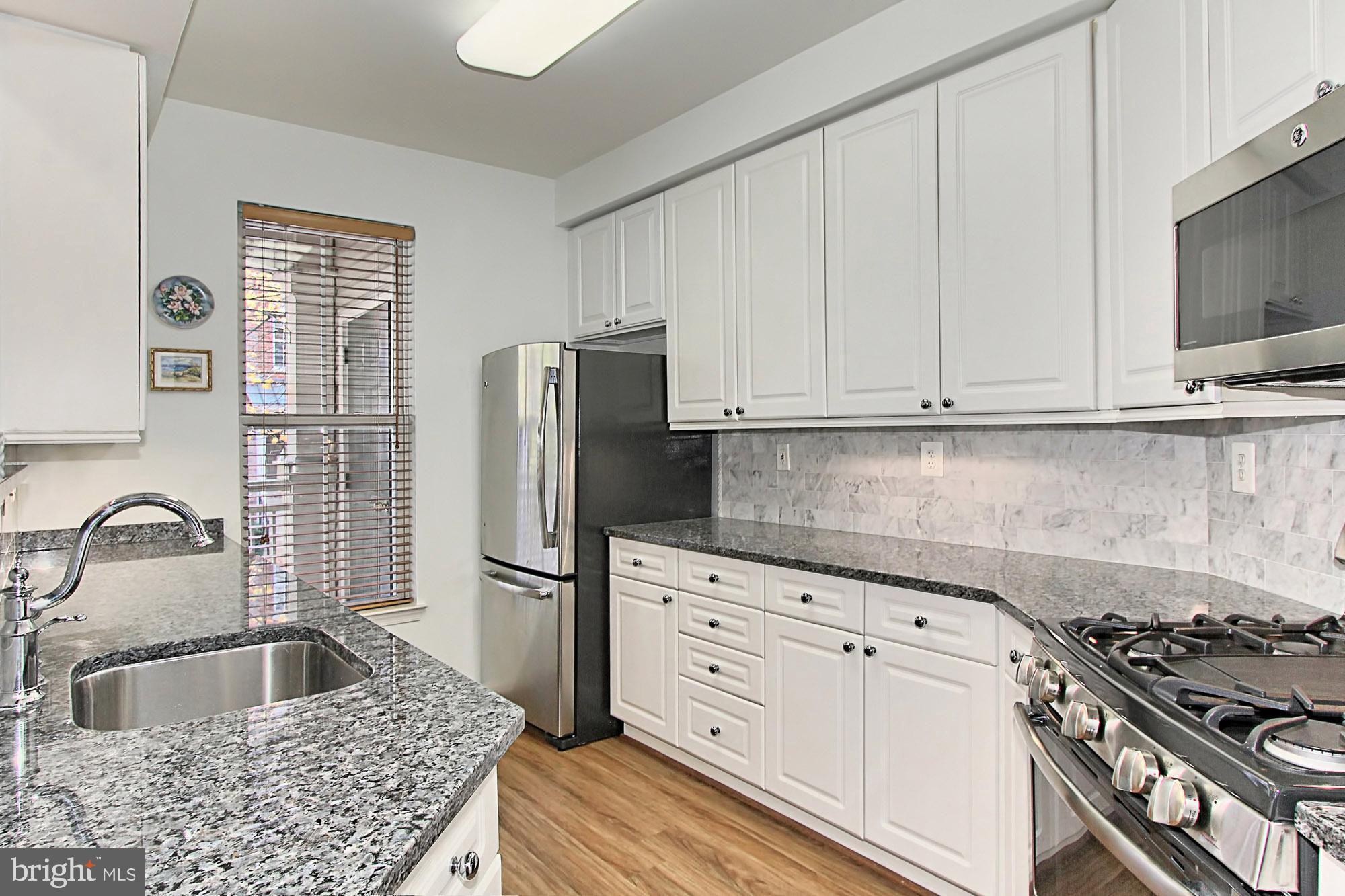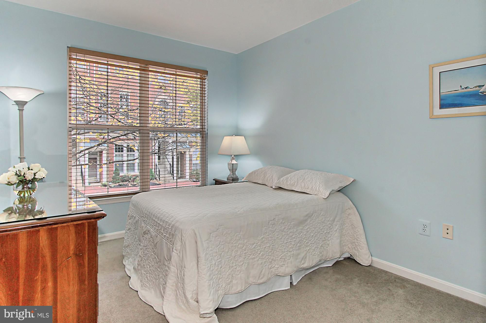 Popular corner unit Willard model. The property features 2 bedrooms and 2 full baths, upgraded kitchen with granite countertops and stainless steel appliances. Spacious primary bedroom with 2 walk in closets and bath. Balcony off living room, gas fireplace. Lots of extra windows for maximum light. One underground garage parking space #28 and plenty additional parking for Carlton Place residents. Located on the first floor of a small condo building. Only 8 units on each floor, you dont need to use an elevator to get in. While it`s the first floor, the unit is located high enough from the ground. Enjoy all amenities of Cameron Station!