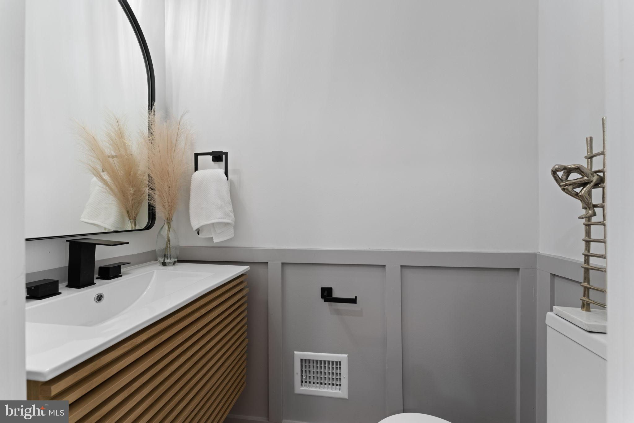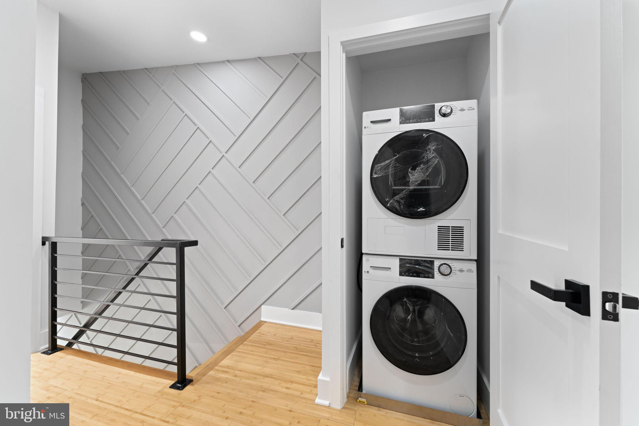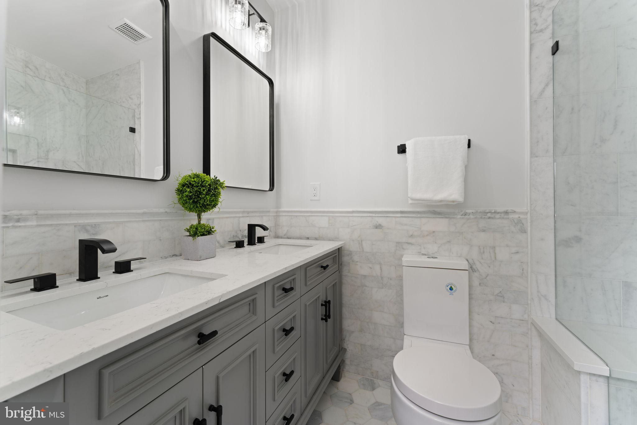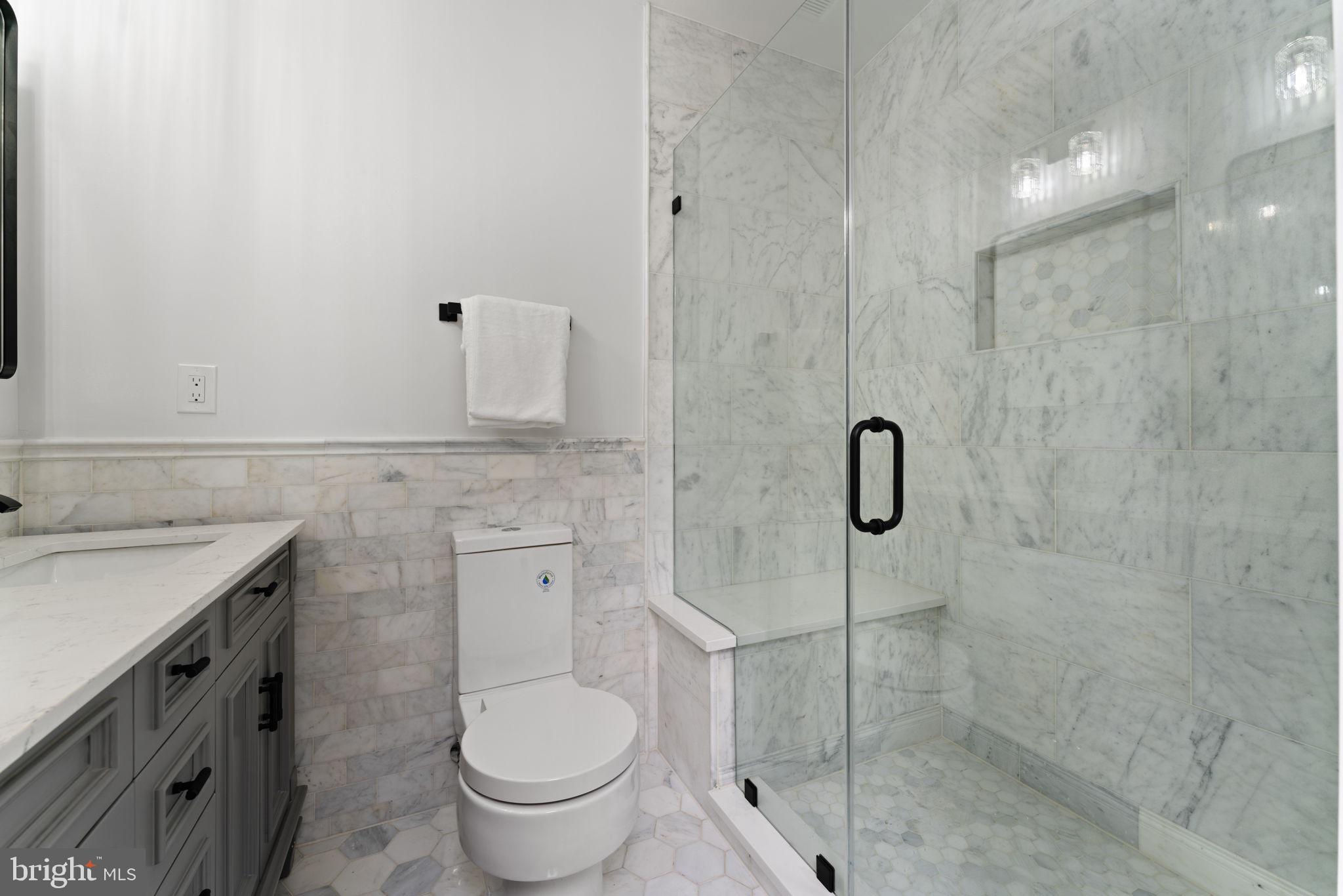 Welcome to 5123 8th St NW, a fully renovated rowhome in the heart of Petworth. This thoughtfully redesigned home spans three levels of elevated living, featuring high-end finishes, refined custom details, and a fully finished lower-level suite with its own entrance—ideal for guests, extended family, or rental income. Just reduced by $50,000, this is a rare opportunity to own a designer home with premium finishes and built-in rental potential at a significantly improved value. The main level boasts an open-concept layout flooded with natural light, wide-plank hardwood floors, and striking custom millwork that runs across all three levels of the home. The kitchen is a true showpiece with Calacatta quartz countertops, a dramatic waterfall island with built-in microwave, two-tone cabinetry featuring wood base cabinets, and a sleek pot filler over the gas range. Matte black hardware and designer lighting add style and contrast, while the accordion doors open to a private deck and fenced backyard with secure off-street parking. Upstairs, you'll find two spacious bedrooms, two full bathrooms, and a versatile den that makes for the perfect home office or nursery. The primary suite features a spa-inspired en suite bathroom with dual vanities, backlit mirrors, and a rainfall shower wrapped in elegant marble tile. The convenience of laundry on the upper level adds to the home's modern functionality. The fully finished lower level—with a separate entrance—includes one large bedroom, a full bathroom, a second laundry area, and generous living and dining space. In Petworth, one-bedroom lower-level suites like this can earn $1,900–$2,200/month on Furnished Finder, $1,850–$2,100/month on long-term leases, or up to $100–$140/night on Airbnb—making this an excellent opportunity to offset your mortgage or generate passive income. Every detail of this home was carefully selected—from the designer powder room on the main level to the layered lighting, sleek matte black fixtures, and premium finishes throughout. Perfectly located near Metro, bus lines, parks, and the dining and shopping on Georgia Avenue, this home offers sophisticated city living with unmatched flexibility. Whether you're looking for a forever home or a smart investment, 5123 8th St NW delivers—and now at an even better price.