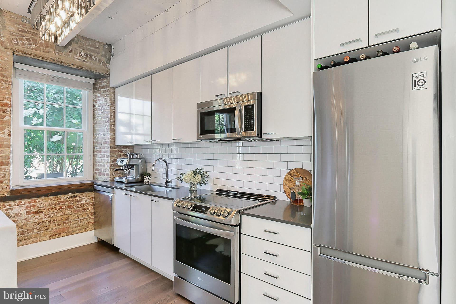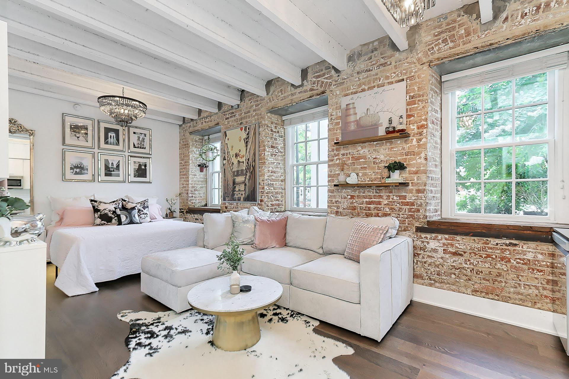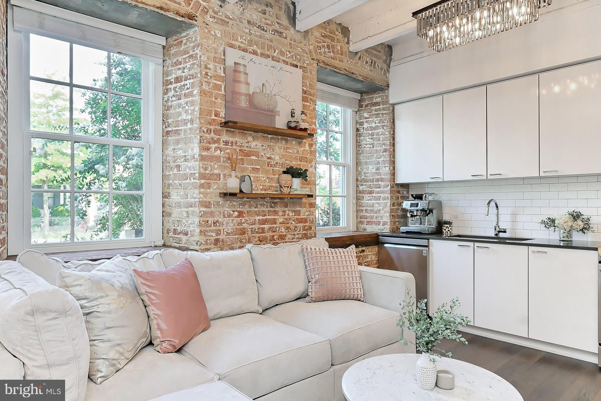 Welcome to this stunning, historic, exceptionally renovated building in the heart of Old Town Alexandria. This glorious building now known as 'The Mill', once operated as the cotton factory of Mount Vernon. It has stood the test of time, and was artfully renovated in 2021 into 25 chic loft-style condos. Charming, original exposed brick, and lofty 12 ft ceilings command your gaze upwards towards the dramatic steel I-beams. The impressive oversized windows illuminate the space with tons of natural light, while wide plank flooring completes the canvas for the daily amenities showcased, seamlessly blending old with new. A wonderful contemporary kitchen with stainless steel appliances, custom backsplash and beautiful countertops, in-unit washer and dryer, custom walk-in-closet system, and a beautiful bathroom with a spa-like step-in shower and floating vanity makes this space so efficient and pleasing to the eye. Building amenities include an elevator that services the exclusive owner's club room on the 5th floor, complete with kitchen, powder room, and a delightful balcony where one can enjoy the stunning views of the Potomac River beyond, or enjoy the superbly landscaped private park to the side of the building, where grilling is a fun option. Water and trash are included in the condo fees. The location of this building is impeccable, with a convenient bus stop, easy access to 2 metro stations, and only one stop from DCA. Trader Joes is a half block away, while an inordinate amount of fine dining, shopping and entertainment options are within minutes of this condo. Welcome Home!