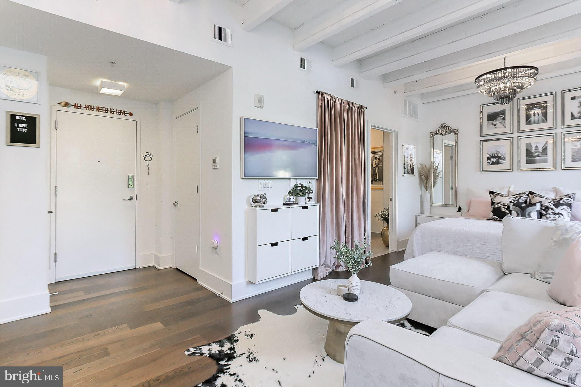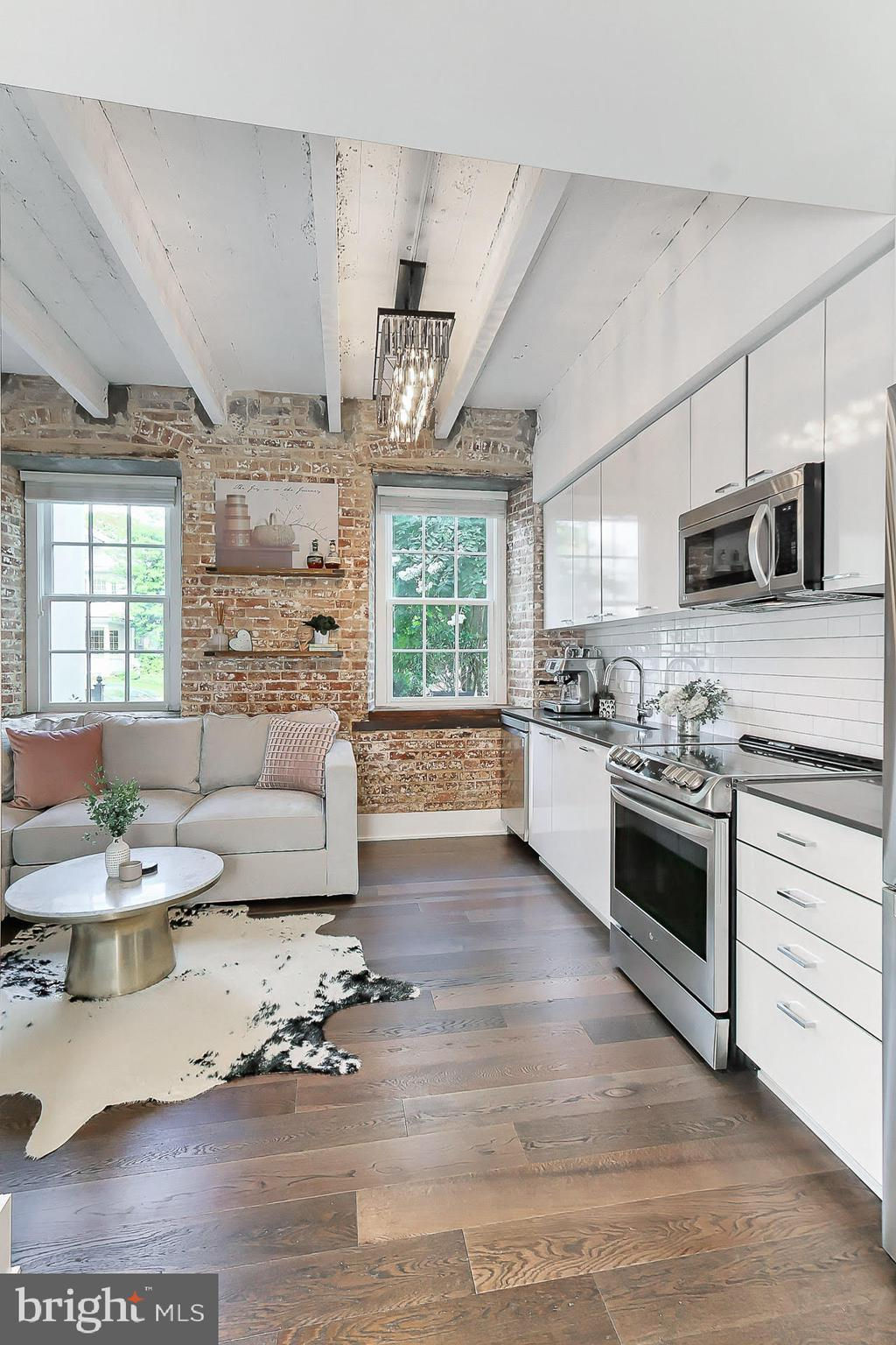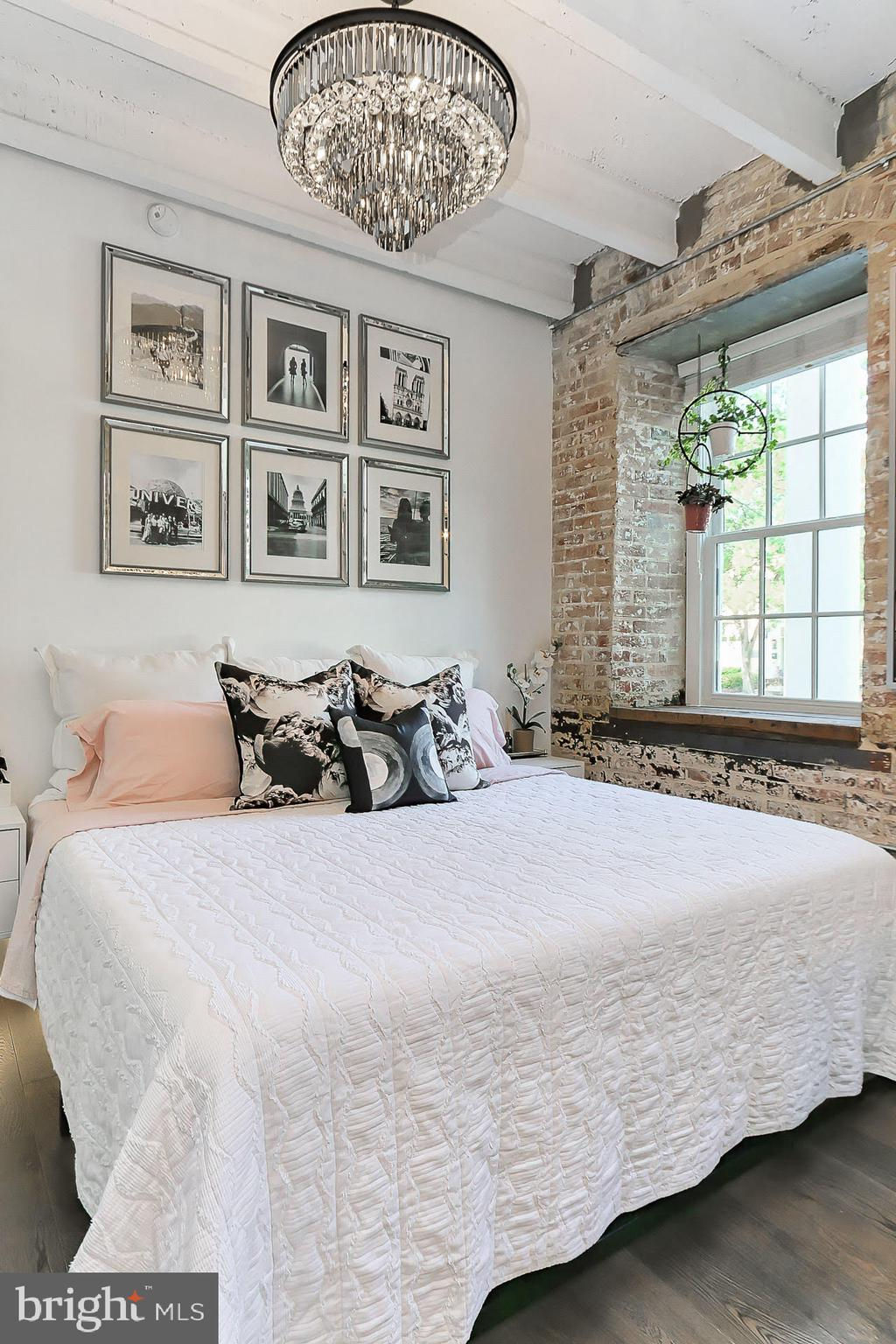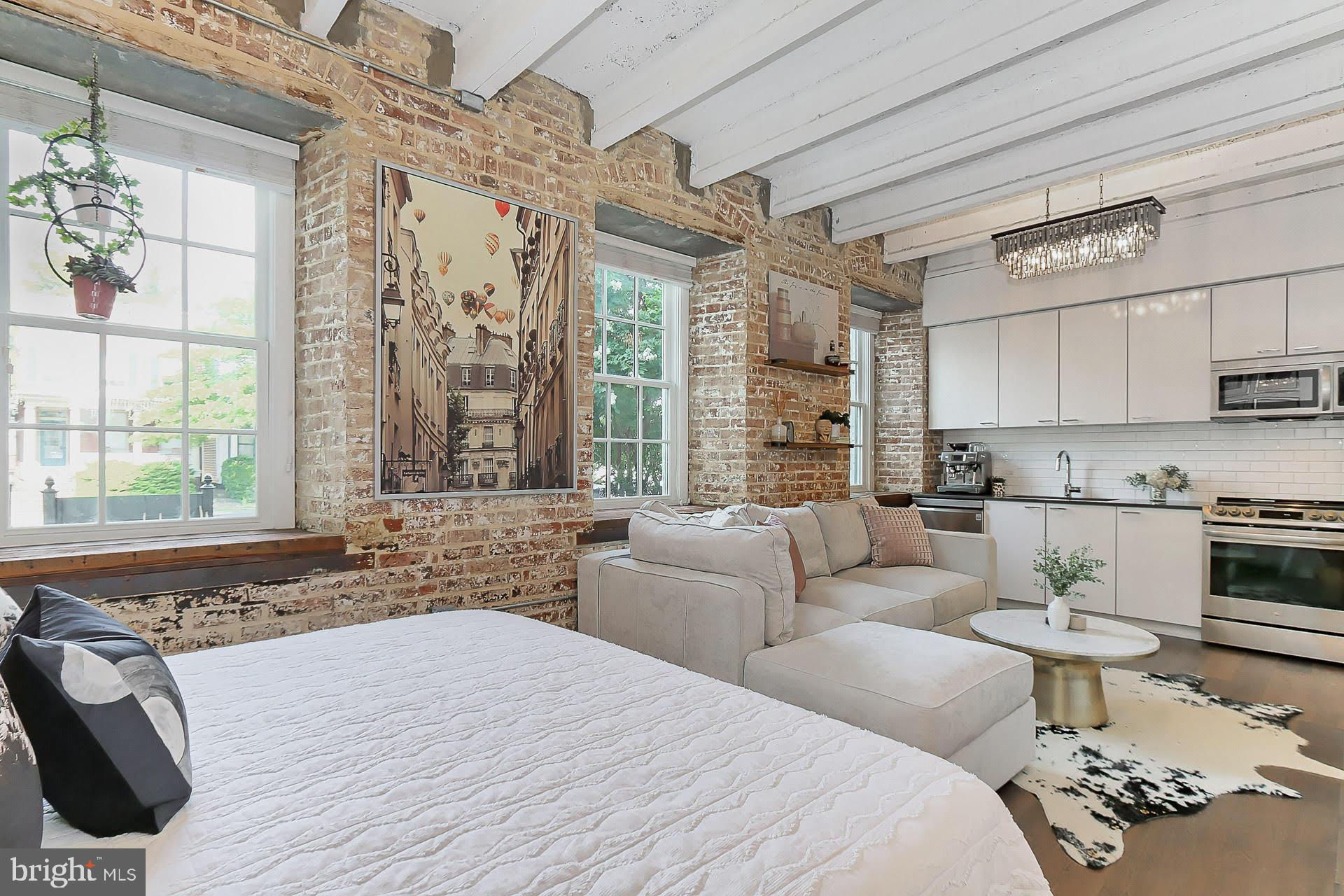 Welcome to this stunning, historic, exceptionally renovated building in the heart of Old Town Alexandria. This glorious building now known as 'The Mill', once operated as the cotton factory of Mount Vernon. It has stood the test of time, and was artfully renovated in 2021 into 25 chic loft-style condos. Charming, original exposed brick, and lofty 12 ft ceilings command your gaze upwards towards the dramatic steel I-beams. The impressive oversized windows illuminate the space with tons of natural light, while wide plank flooring completes the canvas for the daily amenities showcased, seamlessly blending old with new. A wonderful contemporary kitchen with stainless steel appliances, custom backsplash and beautiful countertops, in-unit washer and dryer, custom walk-in-closet system, and a beautiful bathroom with a spa-like step-in shower and floating vanity makes this space so efficient and pleasing to the eye. Building amenities include an elevator that services the exclusive owner's club room on the 5th floor, complete with kitchen, powder room, and a delightful balcony where one can enjoy the stunning views of the Potomac River beyond, or enjoy the superbly landscaped private park to the side of the building, where grilling is a fun option. Water and trash are included in the condo fees. The location of this building is impeccable, with a convenient bus stop, easy access to 2 metro stations, and only one stop from DCA. Trader Joes is a half block away, while an inordinate amount of fine dining, shopping and entertainment options are within minutes of this condo. Welcome Home!