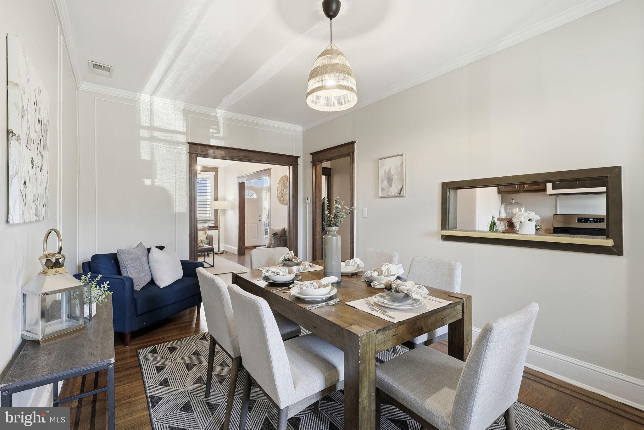 This traditional D.C. rowhome offers a total of 2,208 square feet across all three levels, combining timeless character with versatile living spaces. From the moment you arrive, you’re greeted by a welcoming front porch—a classic feature that sets the tone for what’s inside. Step through the front door and you’ll immediately notice the home’s original details, including beautiful woodwork, real hardwood floors throughout, detailed wood framing, and elegant wood banisters. The living room features a charming fireplace and flows seamlessly into the spacious dining room, perfect for hosting and entertaining. The kitchen leads to a bright sunroom, ideal as a flex space, home office, or creative nook. Upstairs, you’ll find a full bathroom and three bedrooms, including a generous primary suite that features its own sunroom—another flexible space for reading, working, or relaxing. The second bedroom is also spacious, while the third bedroom makes a perfect nursery or office. The fully finished basement offers endless possibilities. With its separate entrance, full bedroom, full bath, and kitchen, it can serve as a private guest suite, rental unit, or in-law space. In the rear, you’ll find valuable off-street parking, a sought-after amenity in this area. Located just behind the home is the Park Morton Redevelopment Project, one of the most transformative developments currently happening in Northwest D.C. This large-scale, city-backed project is revitalizing the area with new housing, modern apartments, retail spaces, and green public areas, all designed to bring more life and energy to the Georgia Avenue corridor and the Park View neighborhood. In addition to this, 518 Park road NW is located just steps away from all your favorite amenities- 0.4 miles to the metro, coffee shops, restaurants, bars, event venues, gyms & yoga studios and so much more. WELCOME HOME!