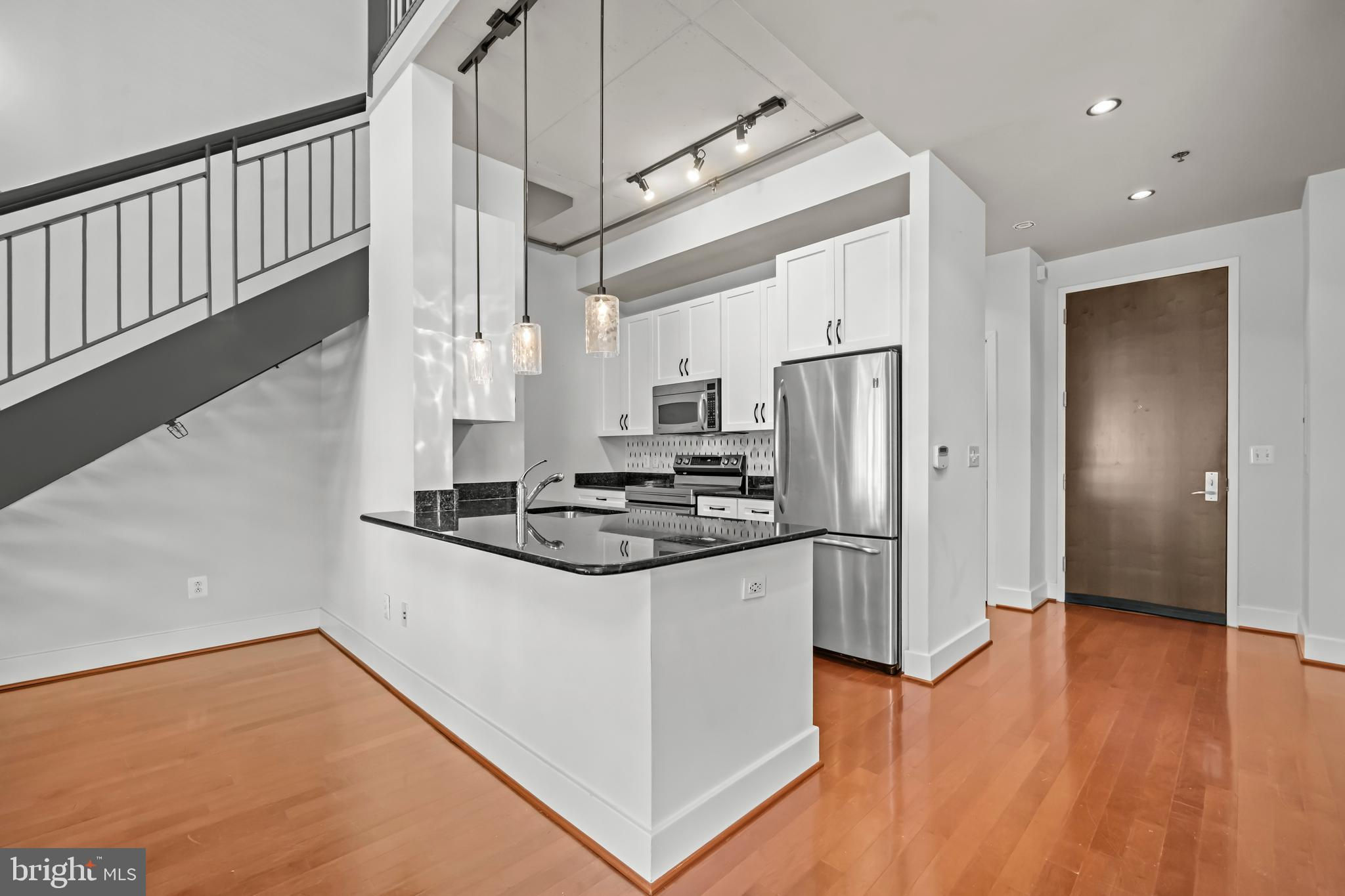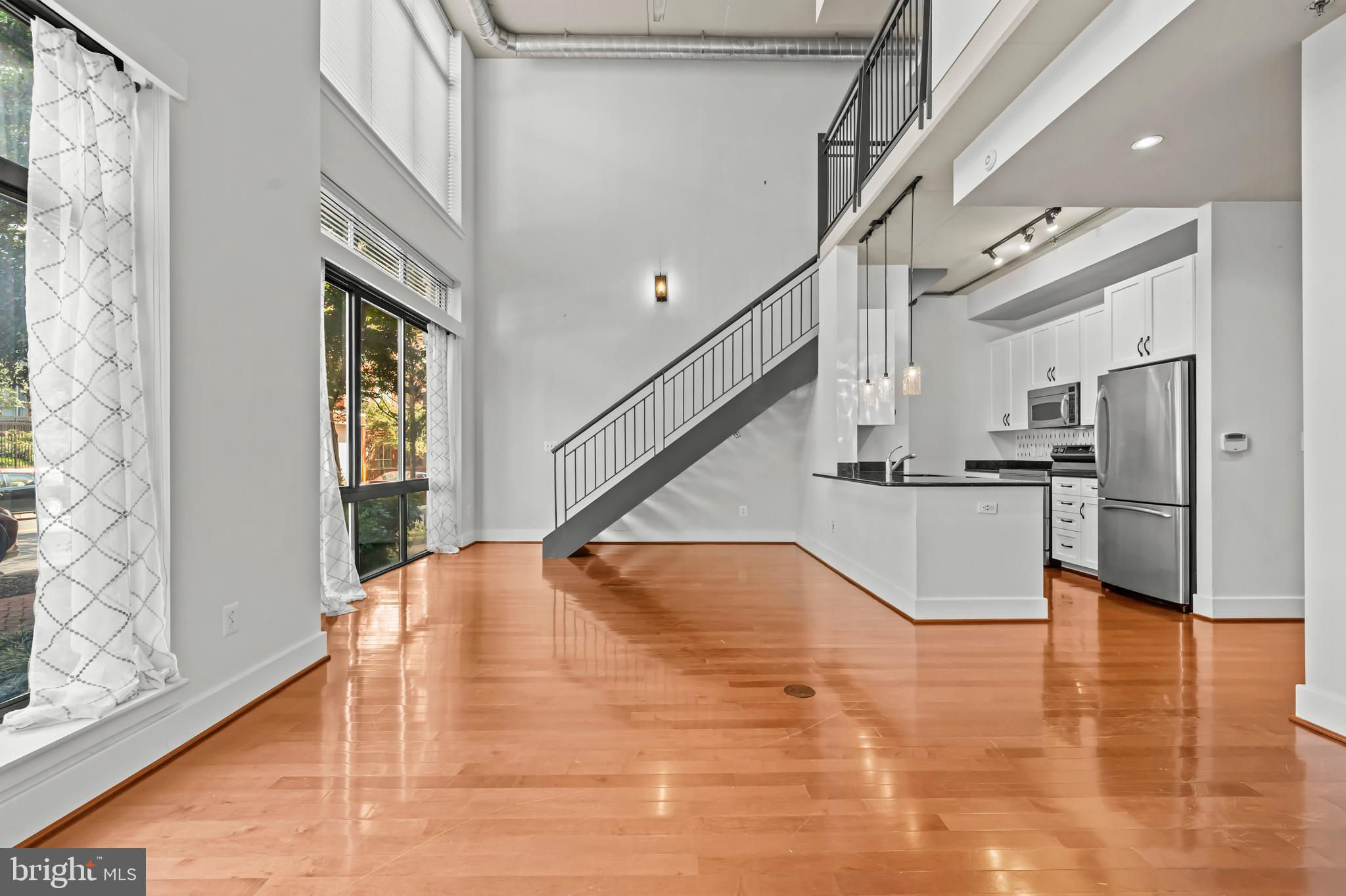 Possible assumption of VA loan at 4.625%. Welcome to Carlyle Square. Near the PTO and Metro accessible from King Street metro this condominium is perfectly located. All the best of Old Town is just outside your door. With a two story loft this unit is spacious. With a half bath on the main and a full bath on the top-level bedroom suite this home is a perfect example of modern luxury. Washer and dryer in unit on bedroom level. Two story floor to ceiling windows provide abundant natural light and an enormous open air feel. The gourmet kitchen has stainless steel appliances, a breakfast bar, pantry storage, and plenty of cabinets. Easy access into the secured building from the Ballenger Street side gate. This breezeway leads to a wonderful interior courtyard for the owner's private use. Tables with umbrellas, mature plantings and a fountain make this space a tranquil outdoor area for owners to enjoy. One of the largest storage cages for the owner of this unit will provide plenty of storage, approximately 10x5x6. Garage parking with one deeded parking space with dedicated EV charging. Whole foods, Starbucks, Gin Ramen, shops and restaurants are just a block or so away. You don’t need a car.