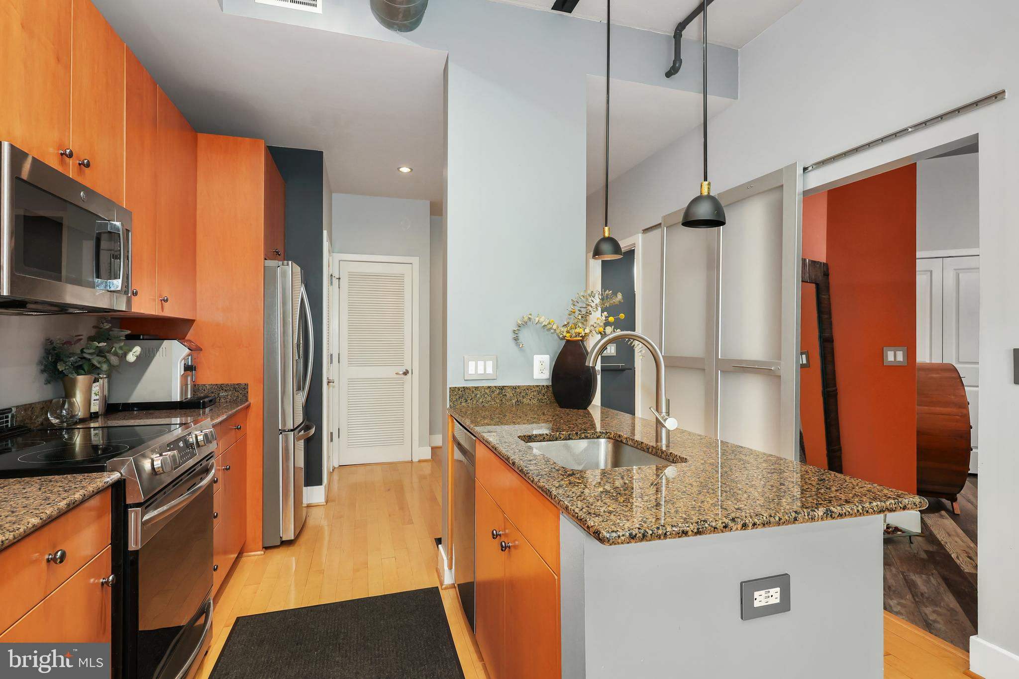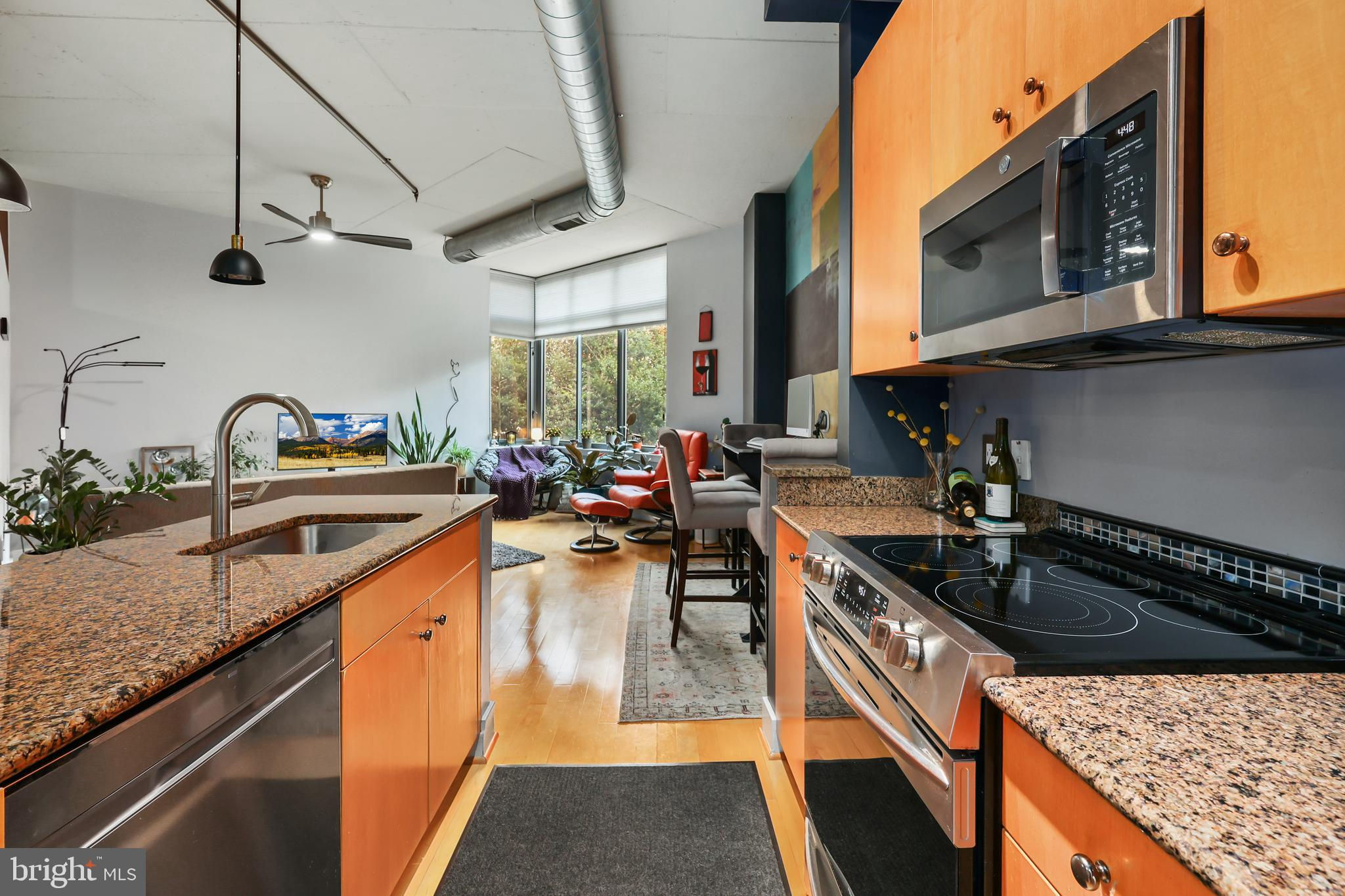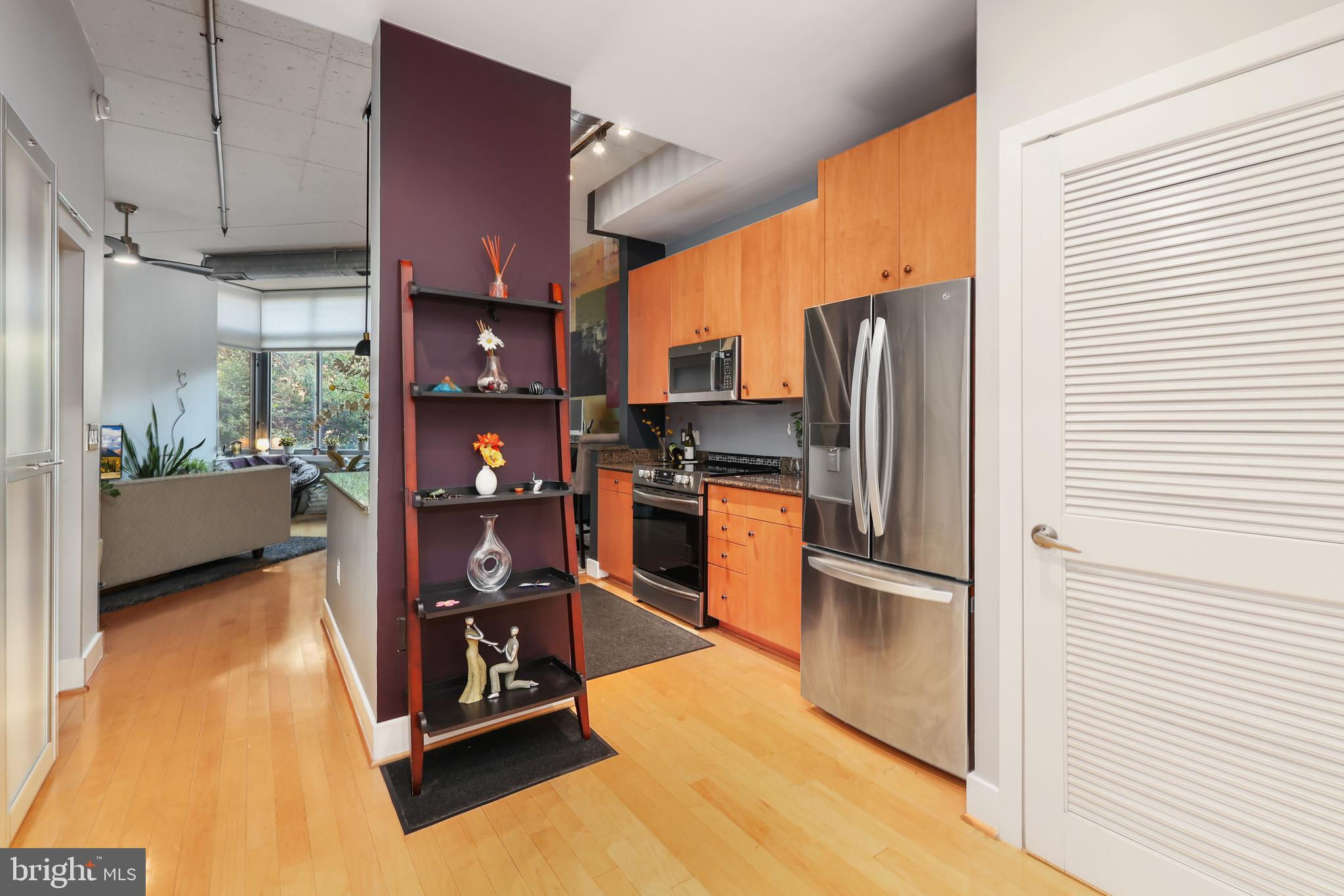 DON'T MISS OUT ON THIS CONDO! This incredible, well maintained, 760 sq. ft. 1 bedroom, 1 bath condo with soaring 9 ft. ceilings overlooks the artistically-designed courtyard yet still maintains privacy with the tall mature trees right outside your windows. A definite Pride in Ownership is evident as you walk into this beautifully decorated and pristine home with hardwood floors in the open concept living, dining and kitchen area. The galley style kitchen has granite countertops, with stainless steel appliances that have been updated – cooking range (2020), refrigerator (2021), dishwasher (2022), microwave (2022). The HVAC unit was replaced in 2022, hot water heater in 2019, and the stacked washer and dryer in 2022. Two aesthetically looking ceiling fans were installed in 2023 and receptacles have been updated to have functional USB ports. The pièce de résistance is the top to bottom fully renovated full bath in 2023. Retreat into your bedroom with luxury vinyl plank flooring installed in 2020 and two large side-by-side closets. An added bonus is the extra large 78 sq. ft. storage unit; B10 (valued at $10K in 2007) located in the garage and literally a few steps from your own assigned and deeded parking space (G2-55). The Carlyle Square condominium is strategically located just 4 minutes to Old Town's waterfront, minutes from 495 and a short distance to both the King Street Metro stop (blue and yellow lines), Amtrak and various dining (right outside your bldg.), shopping (Whole Foods and Wegmans), and entertainment options. This condo also has an option to rent for $2,950/month.