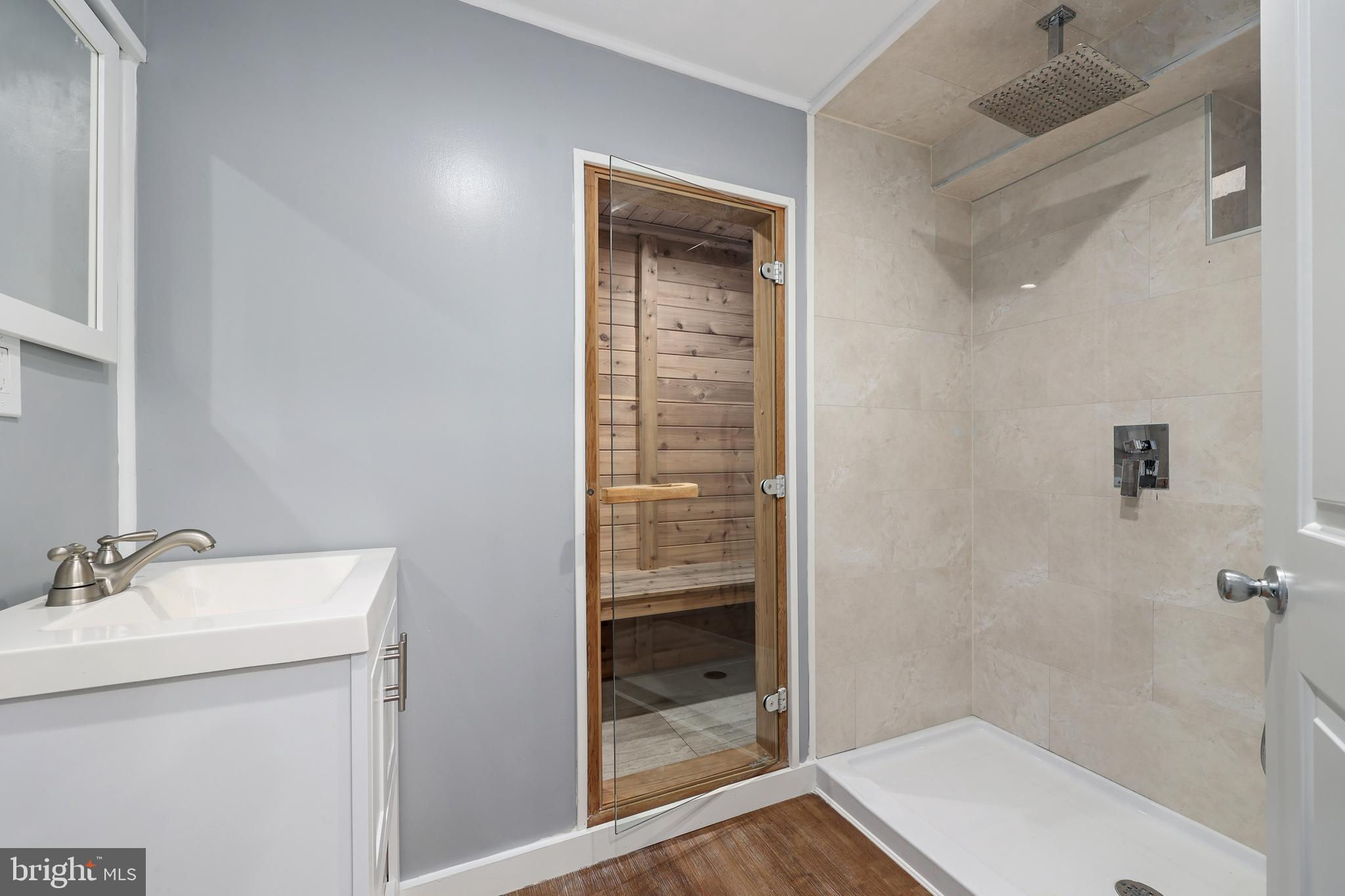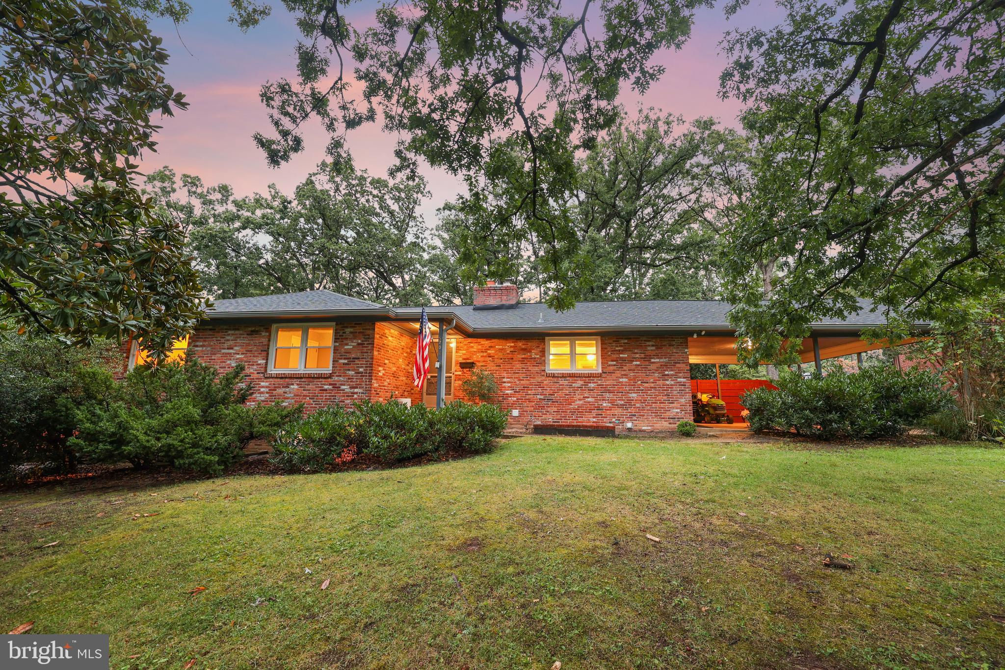 ASSUMABLE 2.75% VA LOAN. Tucked away on nearly a half-acre lot in sought-after Arden Acres, this charming 4-bed, 3.5-bath Ranch/Rambler blends timeless character with modern updates! A bright, open living room with a brick fireplace and gleaming hardwood floors flows seamlessly to the stone patio and serene backyard—perfect for relaxing or entertaining. The fully updated gourmet kitchen showcases brand-new cabinetry, stainless steel appliances, and a stunning waterfall quartz island. Retreat to the spacious primary suite with a beautifully refreshed bath (2018), while the secondary bath was also remodeled in 2018. The fabulous lower level is an entertainer’s dream with a newly installed wet bar (2023), luxury vinyl plank flooring (2024), half bath with separate shower and sauna, and a full bedroom (2023) —ideal for guests or multi-generation living. Peace-of-mind improvements include a sliding glass door and new windows (2023), roof replacement (2024), sump pump (2018), and French drain (2019) for a fully waterproofed basement. Fresh paint and recessed lighting throughout complete the move-in-ready appeal. All of this in an unbeatable location just minutes to the Metro, I-495, schools, shopping, and more.