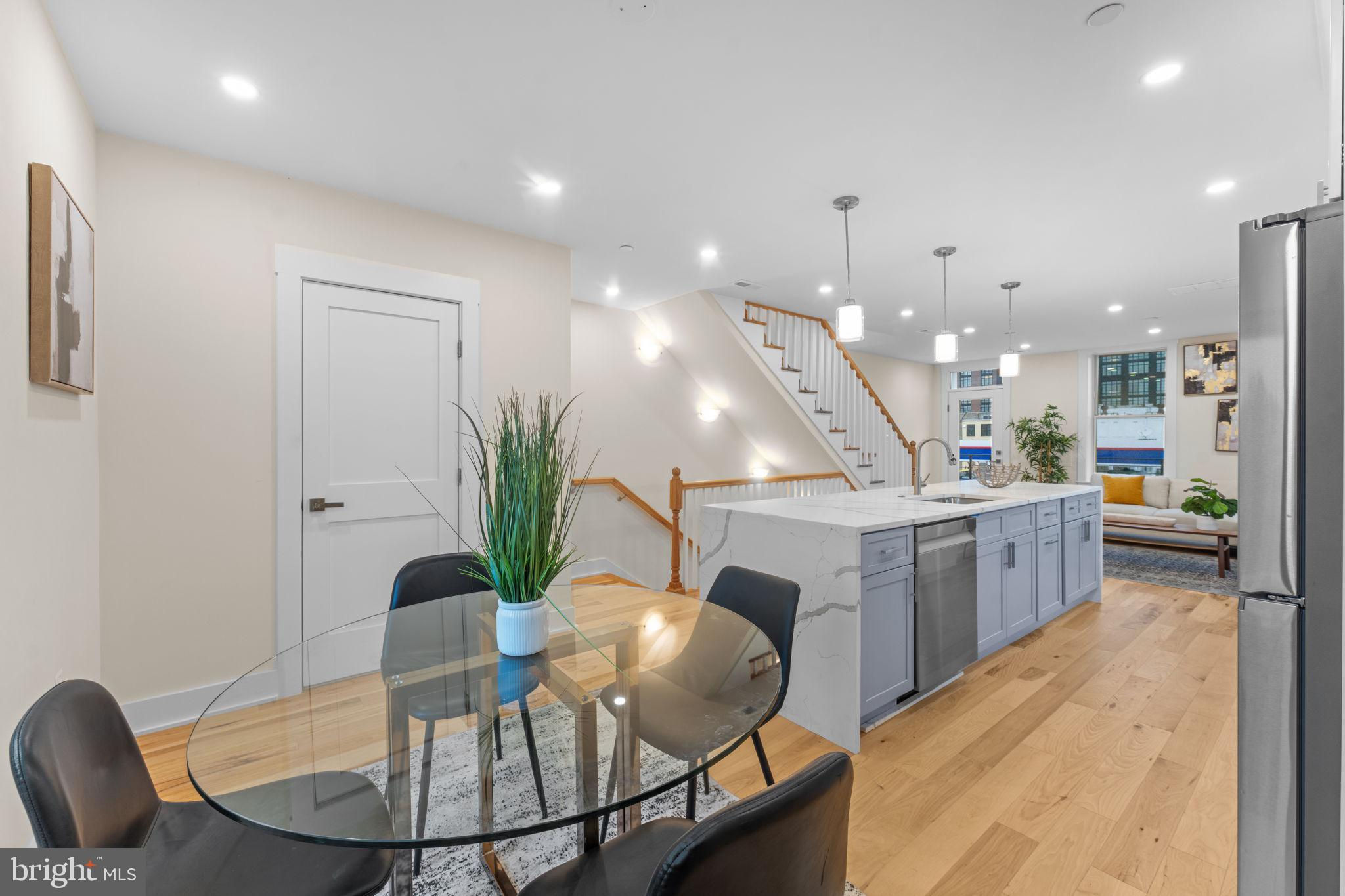 Welcome to The 521! Experience modern luxury at its finest with a PRIVATE ROOFTOP PATIO and DEDICATED PARKING INCLUDED, all in a stunning new construction condominium located directly across from Union Market, the vibrant heart of Washington, DC. This penthouse boutique residence showcases sophisticated design and thoughtful finishes throughout. The upper level features two bedrooms, including one with an en-suite bathroom, and a convenient main-level powder room—perfect for guests. Step inside to discover beautiful Brazilian hardwood floors flowing throughout the home. The gourmet kitchen provides abundant prep space for your inner chef, with an expansive granite waterfall island that offers storage, workspace, and seating with a generous overhang. Outfitted with premium stainless steel appliances and plentiful cabinetry, the kitchen blends style and function seamlessly. An extended dining area offers the perfect spot for intimate gatherings and shared meals. When it’s time to unwind, enjoy two private outdoor spaces. The living room deck overlooks Florida Avenue, while the spacious rooftop deck—complete with electrical outlets—offers breathtaking 360-degree city views, ideal for sunsets, fireworks, and entertaining. Oversized sliding glass doors beautifully connect indoor comfort with outdoor vibrance. Step outside and immerse yourself in the best of DC living. Old City blends historic charm with modern energy, and Union Market’s restaurants, boutiques, and nightlife are just steps away. With H Street only a few blocks south and downtown easily accessible by foot, bike, or Metro, this location puts you at the center of it all.
