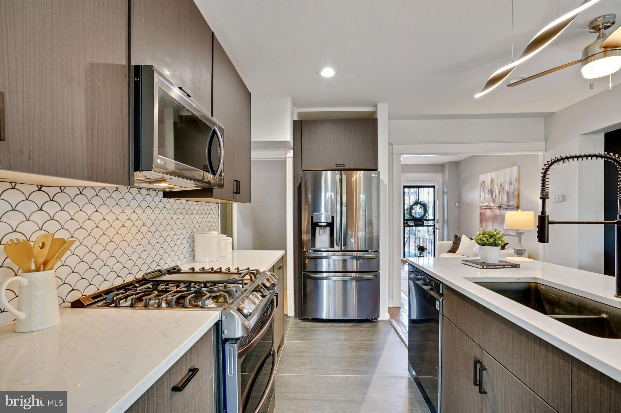 MAJOR Price Improvement! Priced less than most Petworth condos and no condo fee! Walk to Washington Latin Public Charter School and all of Petworth's offerings! 1456 total sq. ft! Sun-filled home with original hardwood floors and exposed brick throughout. 2 bedroom/2 bath with fully finished basement/Guest suite bedroom space, second full bath, space for a kitchenette, full-size washer/dryer, and walkout access to the yard. Open-concept eat-in kitchen with large center island, matte black finishes, black stainless steel WiFi-enabled LG appliances, and soft-close cabinets. Dining area fits a table for 6+ and opens to a backyard with patio, grill station, outdoor seating, and smart lighting. Spacious primary bedroom with sitting area and walk-in closet. Lovely upper-level bath. NEW HVAC! This prime location is near 3 Metro stations (Red, Green, Yellow Lines) and steps to many neighborhood favorites: Anxo Cider, Mita Café, Timber Pizza, The Parks at Walter Reed, and many more. Loan programs for this census tract as low as 5.875% with 3% down and no mortgage insurance, depending on income level! Ask about it!