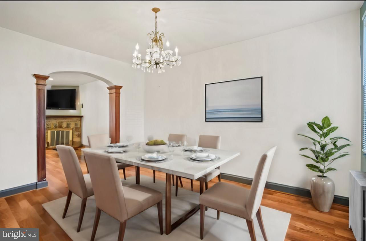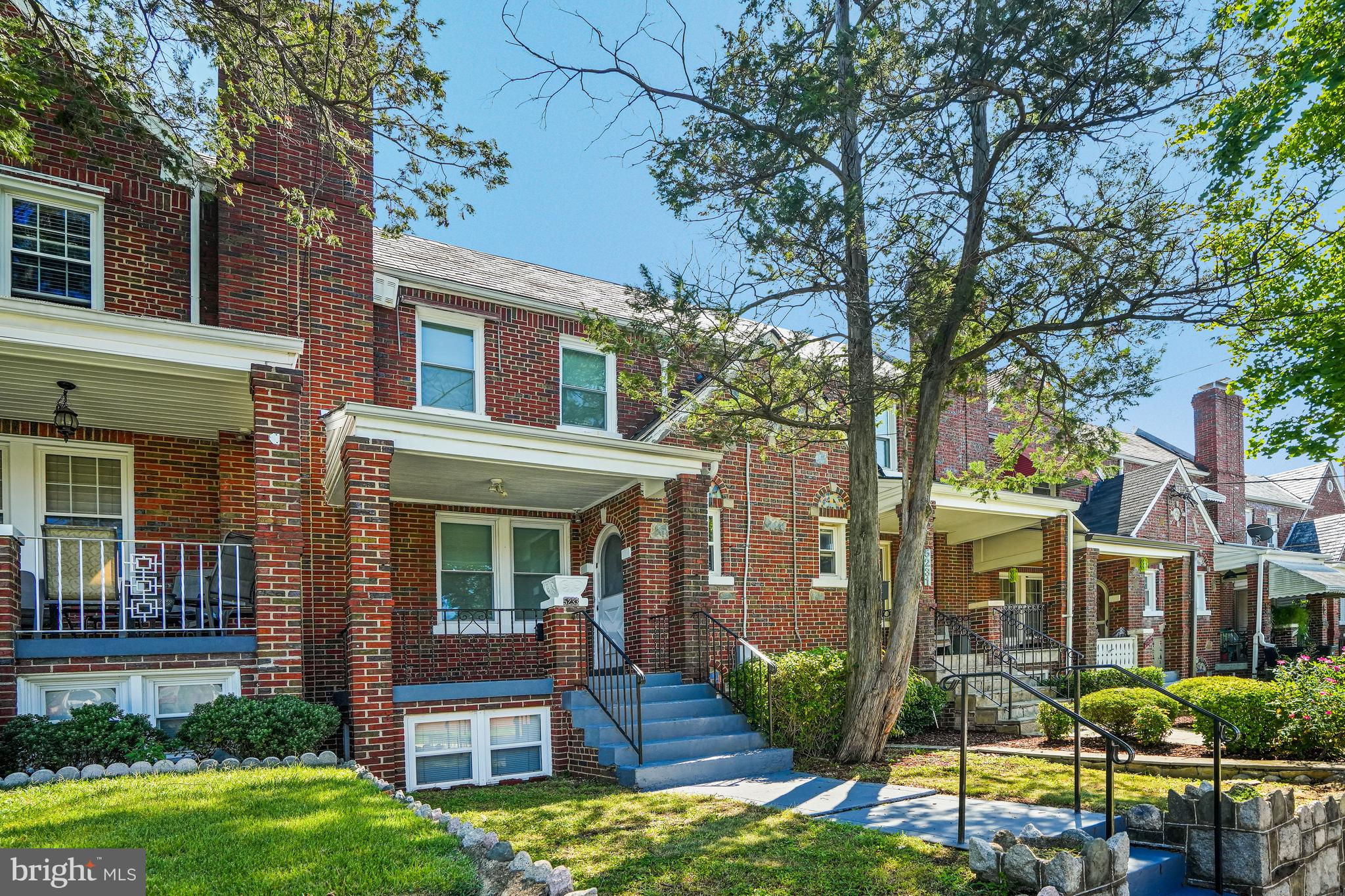 Historic charm meets contemporary sophistication! An inviting tapestry-brick, Tudor influenced row home in the heart of the desired Petworth community. As you step through the front door, you'll be captivated by the attention to detail and inviting ambiance in this three level home. This impeccably designed residence features 3 bedrooms and 2-1/2 baths. The home is spacious and boasts a welcoming front porch, living room with two front windows and a commanding stone fireplace with a mantel, beautiful original wooden archway from the living room to the formal banquet size dining room , kitchen with new luxury vinyl tile flooring and porcelain backsplash, original natural wood doors, trim and hardwood floors, all on the main level. On the upper level you will find a commodious primary bedroom, with two closets, two windows and an en suite bathroom for your enjoyment and peace of mind. There are also two other generous sized bedrooms, providing ample space for relaxation and rejuvenation. In the hallway there is an additional bathroom for your family. Both bathrooms have been recently painted and spruced up to ensure comfort and luxury. This well appointed home has an array of appealing updates and additional features including: a detached one car garage in the back of the property, an impressive backyard, updated plumbing, electrical wiring, electrical heavy-up, and windows designed for modern efficiency and style; an almost new roof on both the house and porch; and waterproofing of the basement--the basement was dug down to the joints, parged, and provided waterproofing around the entire circumference to guarantee against flooding and making it perfect for future customization; the floors and sub-floors have been replaced for that pristine look; and the interior walls are newly painted. And, as an added bonus, the basement is perfect for entertaining. This home is located in a sought after area that offers both the community feel and the ease of city life. The property is conveniently a short distance from shopping, dining, and public transportation. Live comfortably and take your time making any updates you desire. Don't miss your opportunity to own this rare find. It is a gem in the heart of the city. Call for your private showing. Welcome to your new home!!