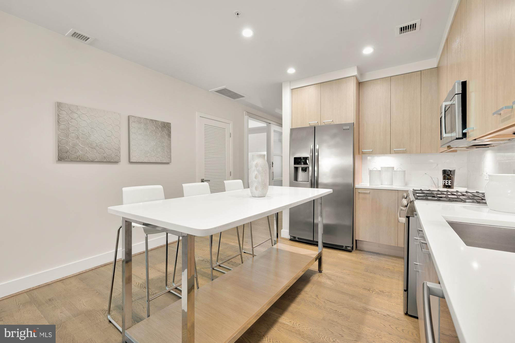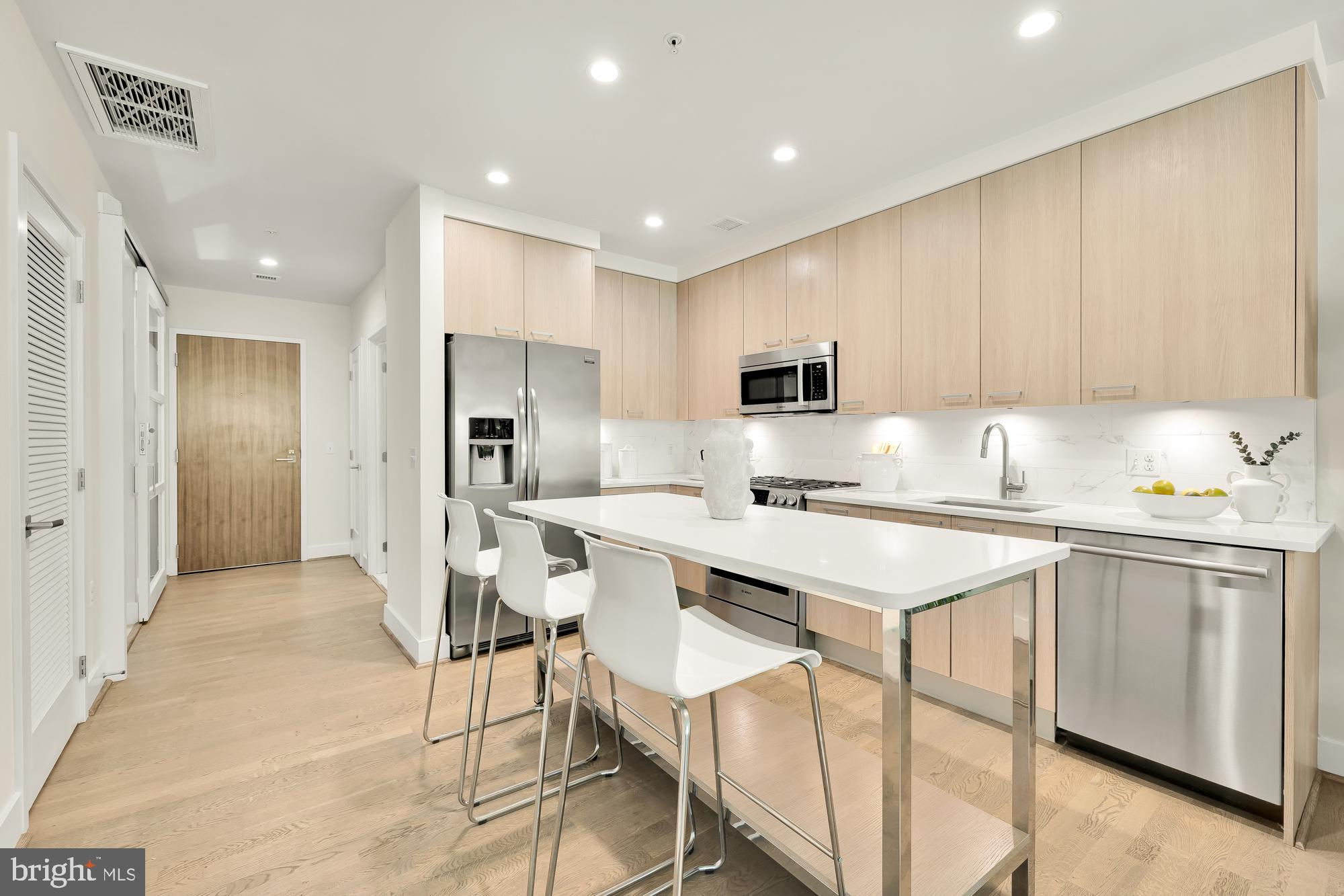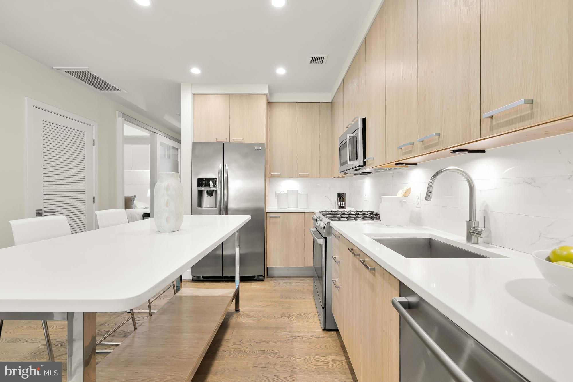 New Price! Welcome to your new home at The Wharf in Southwest Waterfront! This modern and spacious 2-bedroom, 2-bathroom condo offers 935 square feet of stylish living space. Step inside to discover an open floor plan seamlessly connecting the kitchen, dining, and living areas. The kitchen is equipped with stainless steel appliances, and the unit features elegant hardwood floors and oversized windows that flood the space with natural light. The primary suite is a bright and spacious retreat, boasting a spa-like ensuite bath and a generous walk-in closet. An additional guest bedroom, which could also be used as an office, and a second full bathroom provide versatile living options. Enjoy the outdoors on your private terrace, and take advantage of the convenience of an in-unit washer and dryer. Garage parking completes this gorgeous unit and offering. The building is pet-friendly and energy-efficient, with low energy costs of approximately $50 per month. Building amenities include a concierge, full gym, private internal park, party room, and coffee bar. Residents enjoy a quiet and relaxing environment with a walking trail next to the Potomac. Located in the quiet end of The Wharf, this condo is just two blocks from the Waterfront Metro Station and a short five-minute walk to Safeway and CVS. The neighborhood offers a variety of shops, cafes, retail options, concerts, sports venues, parks, and the beautiful waterfront with Michelin star restaurants, ensuring there's always something to do. Don't miss the opportunity to live in this stunning condo in one of DC's most sought-after neighborhoods!